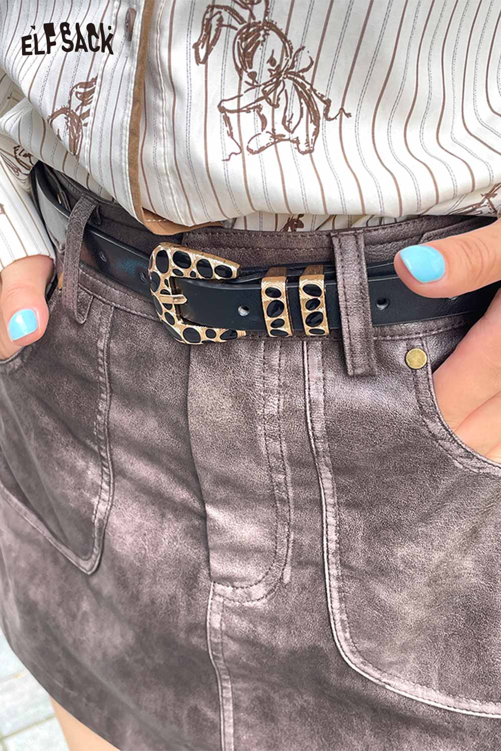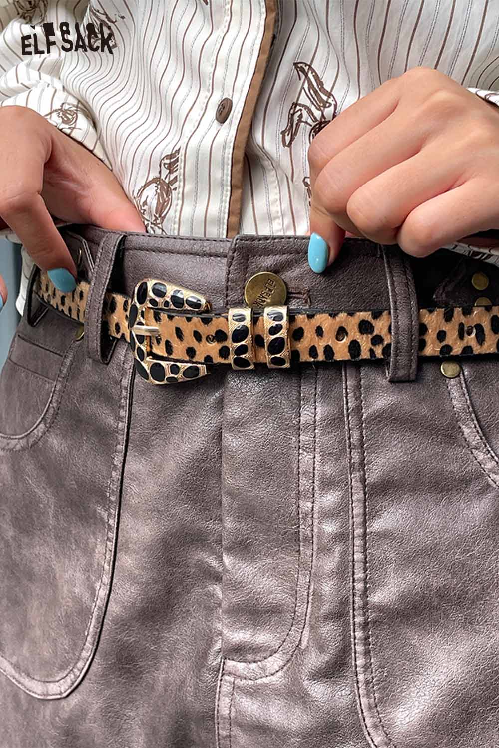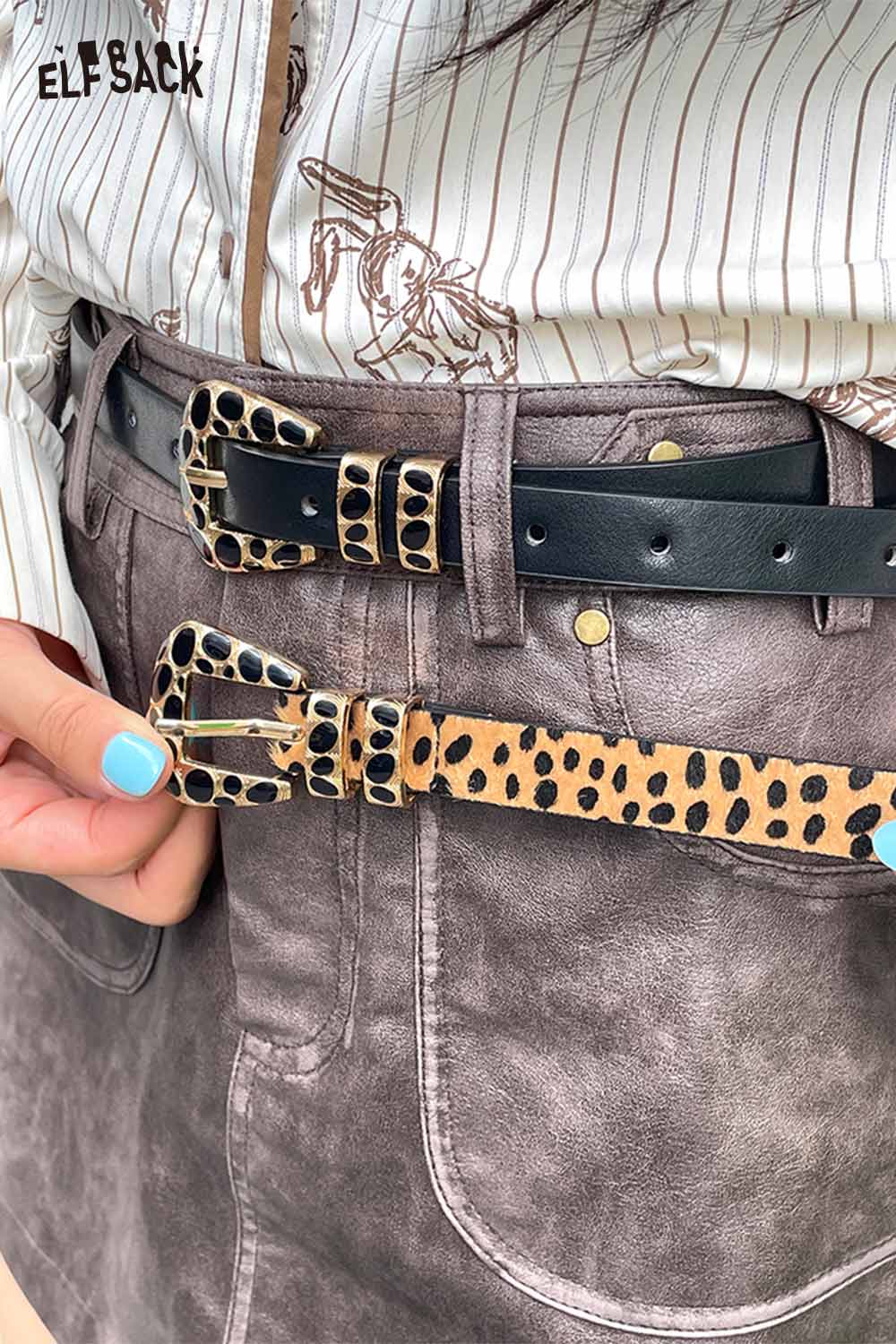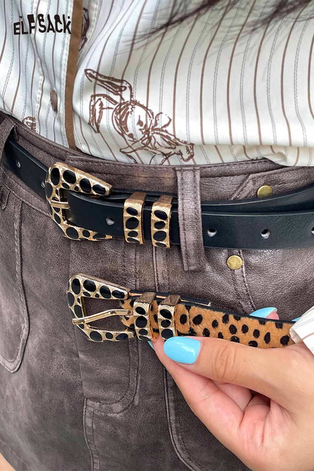 Vegan Leather Animal Print Embossed Dual Finish Buckle Belt