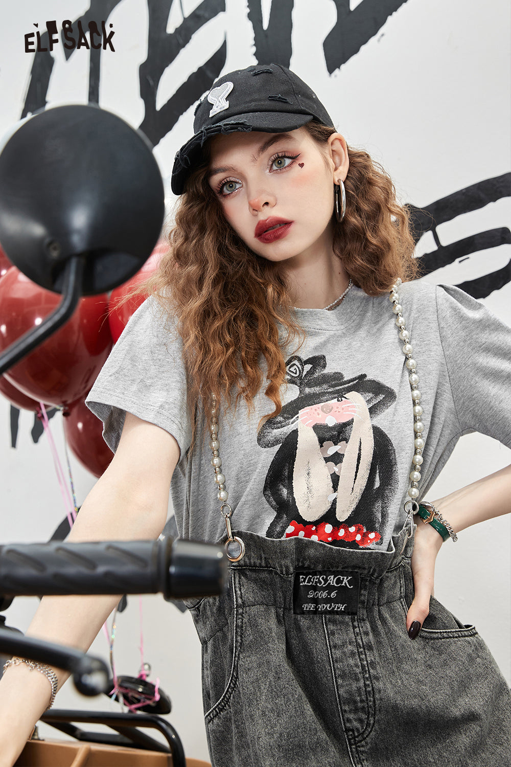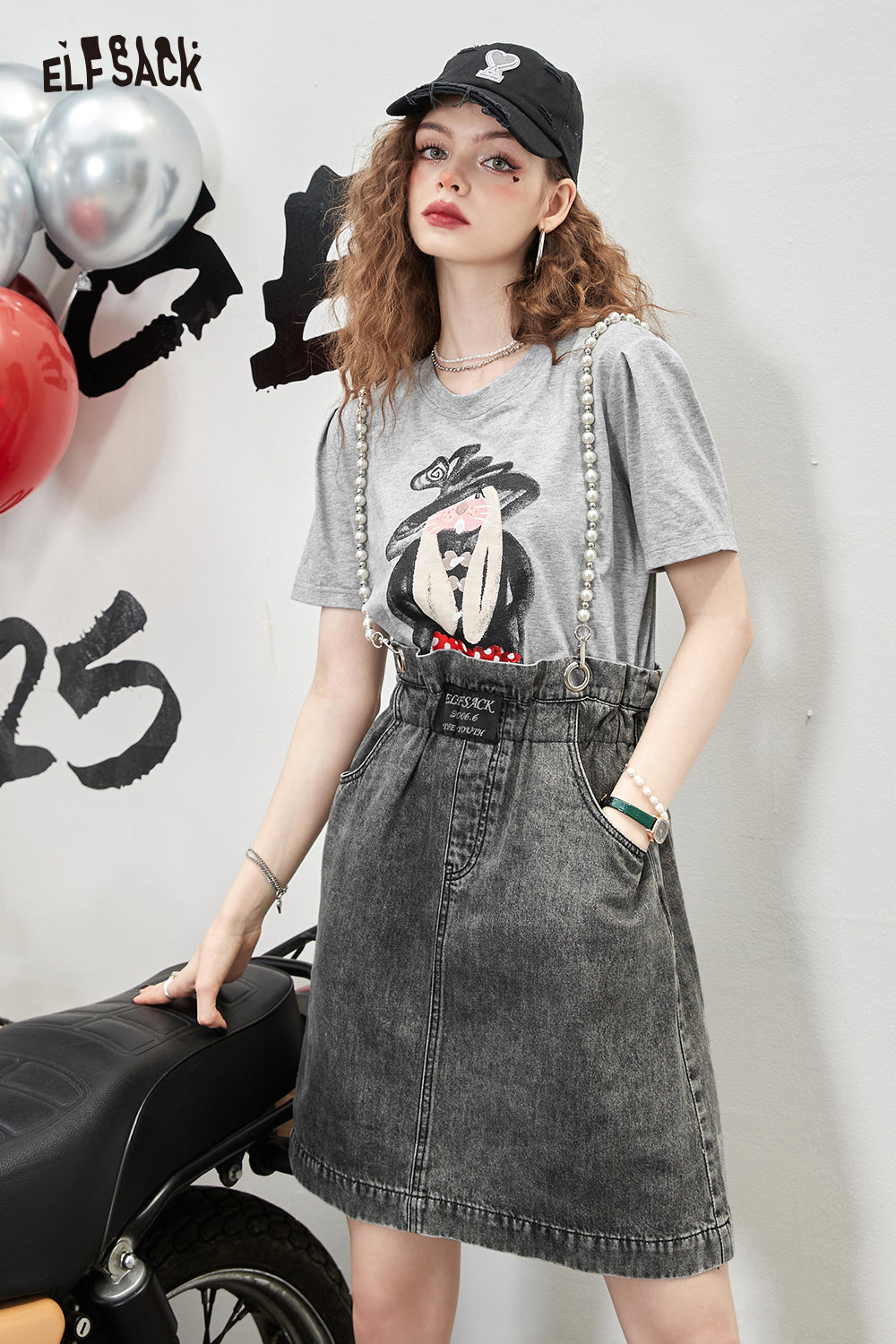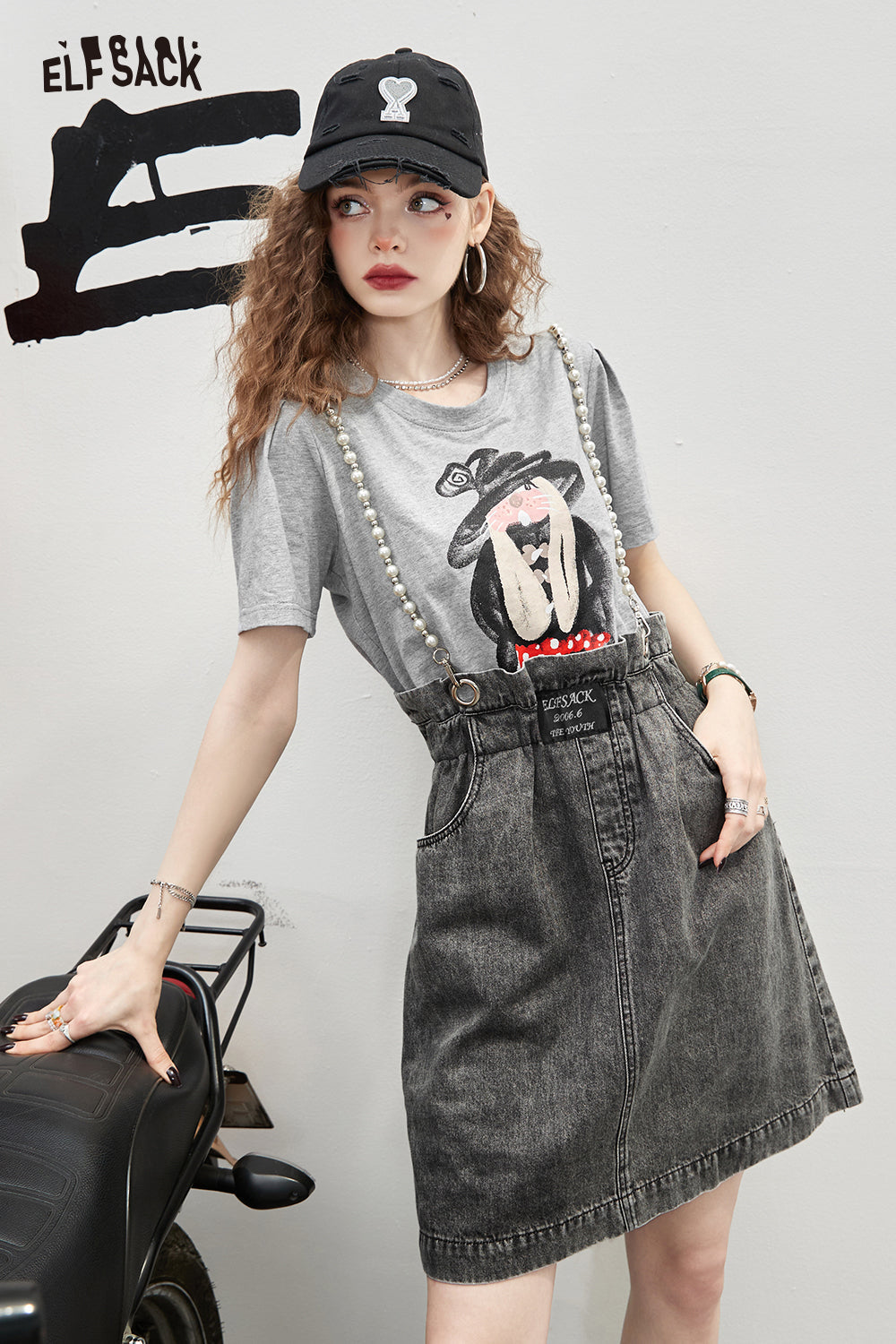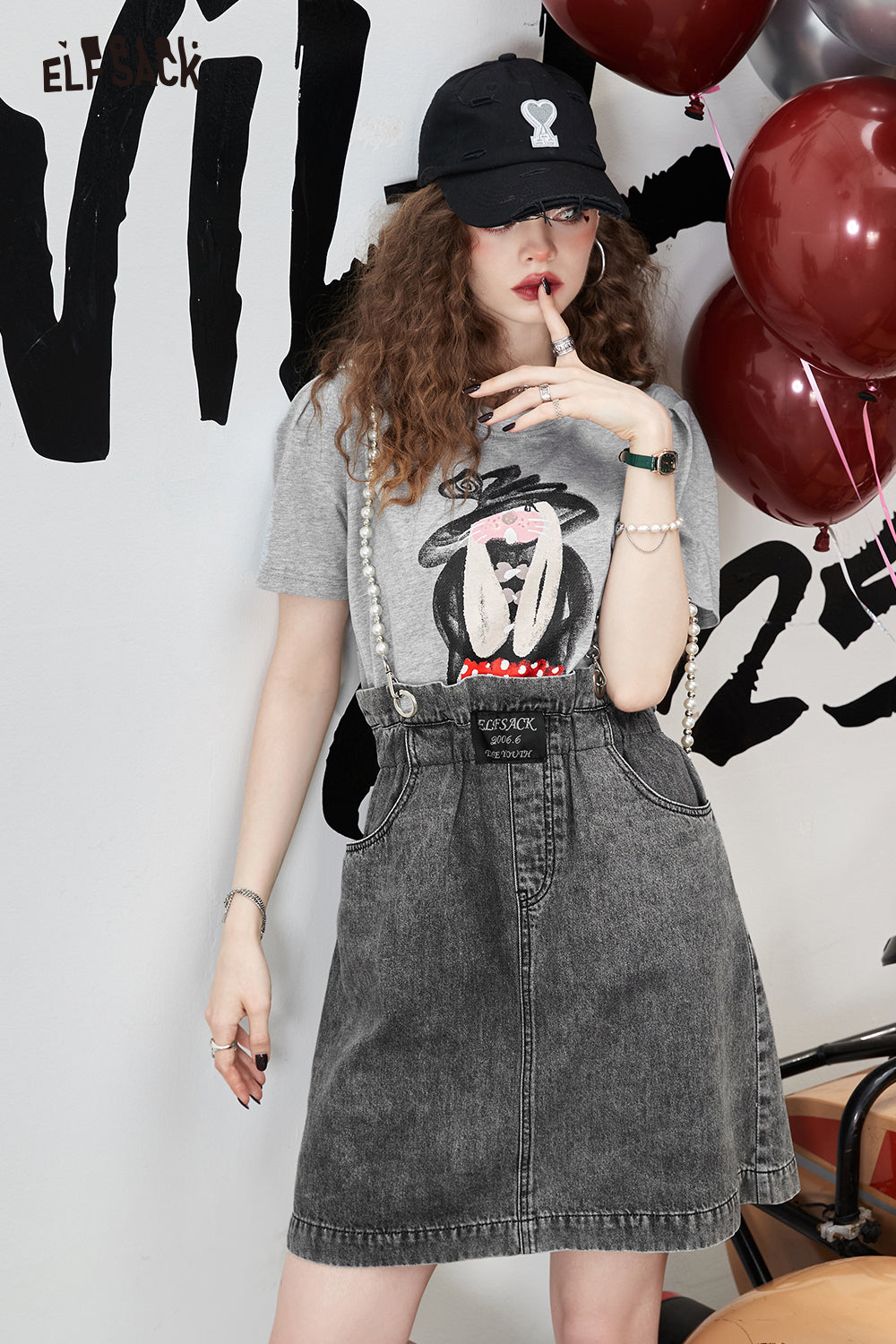 Y2K Sweet Fake Two Piece Short Sleeve Pearl Strap Denim Short Dress