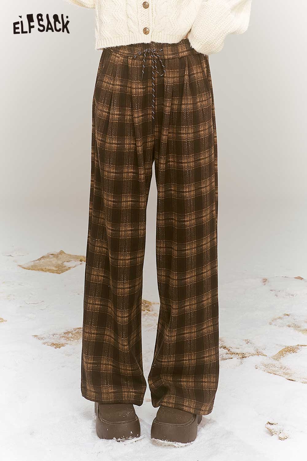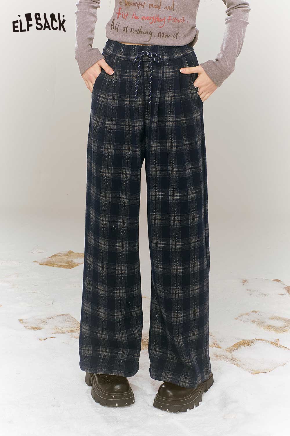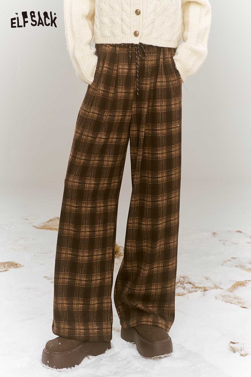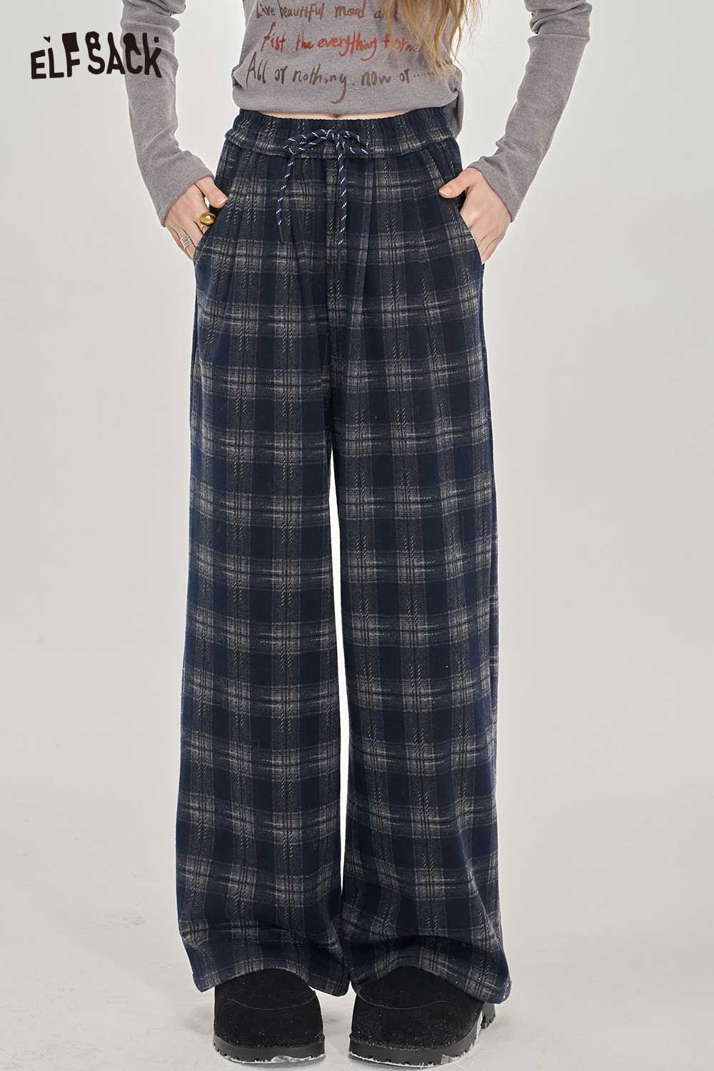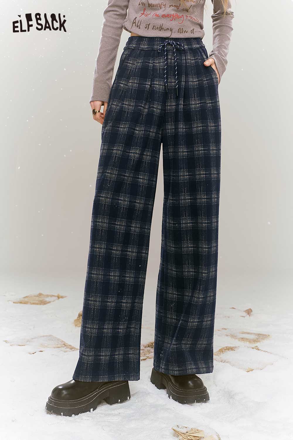Soft Mallard Plaid Wide Leg Loose Slimming Straight Pants
