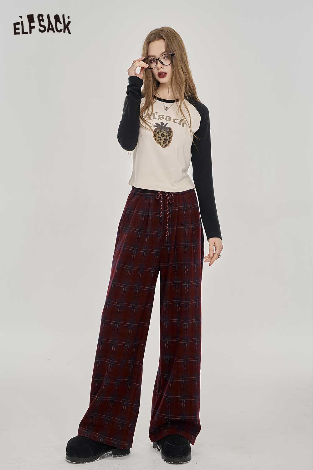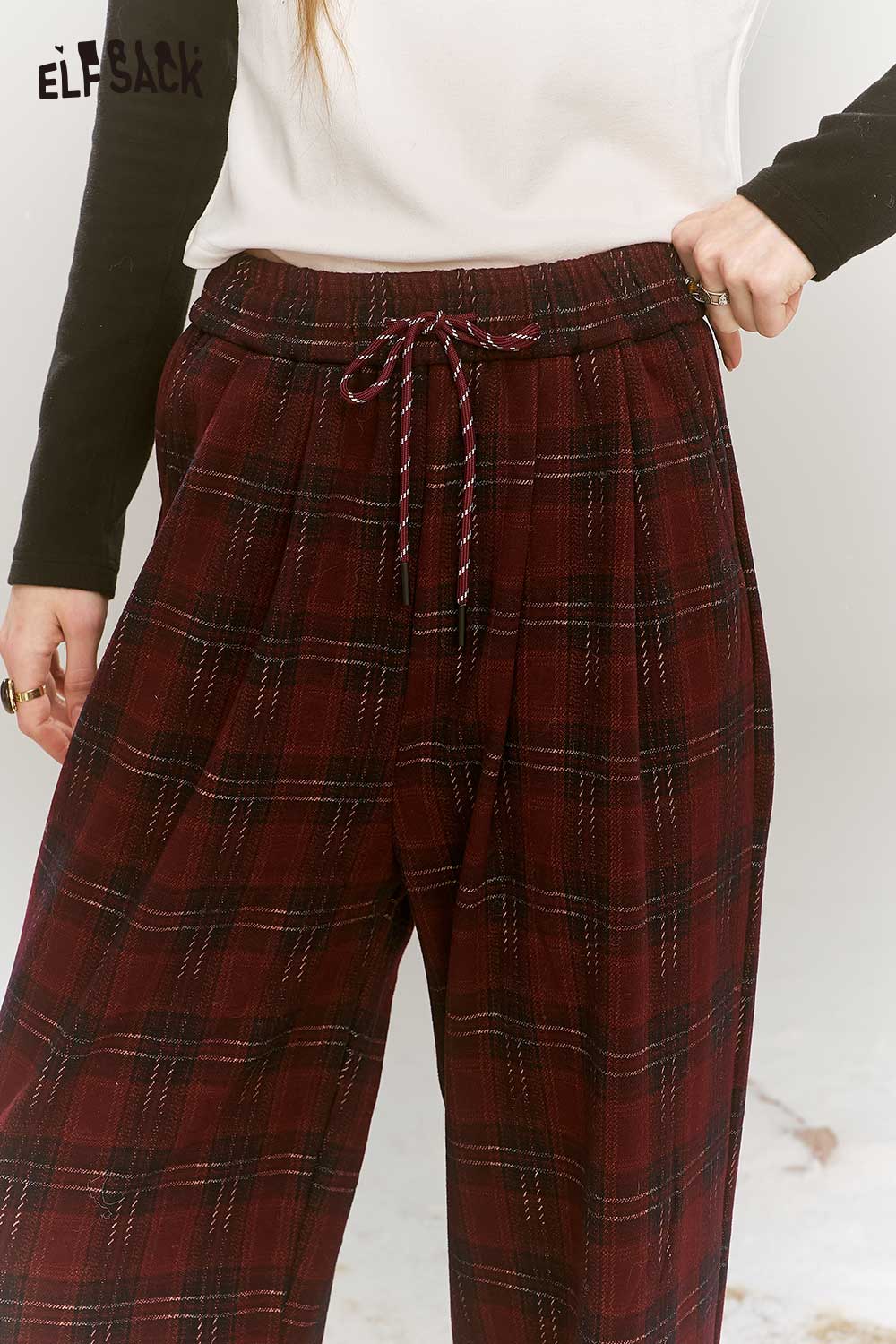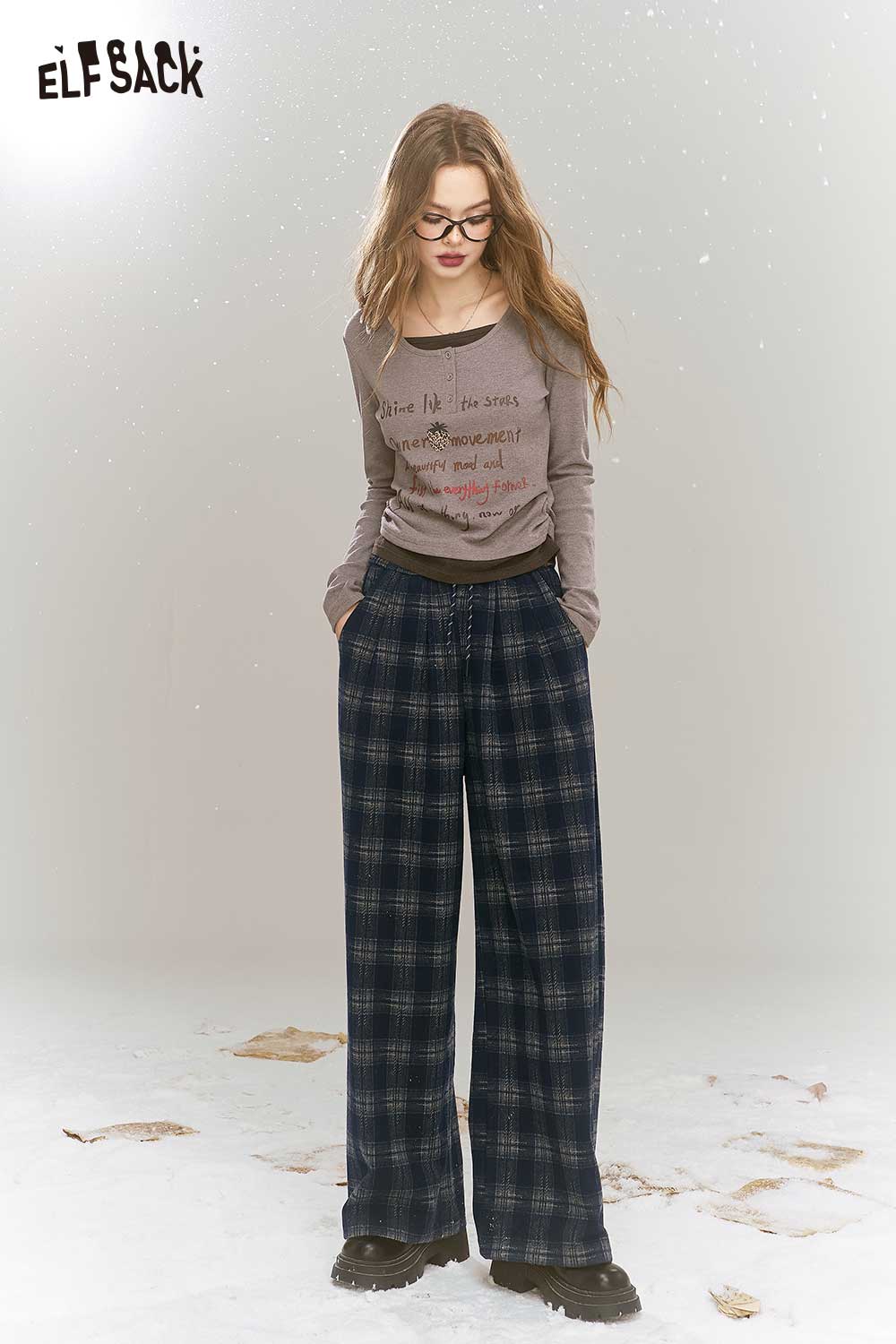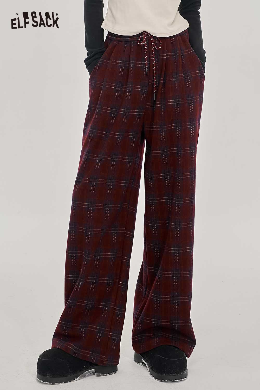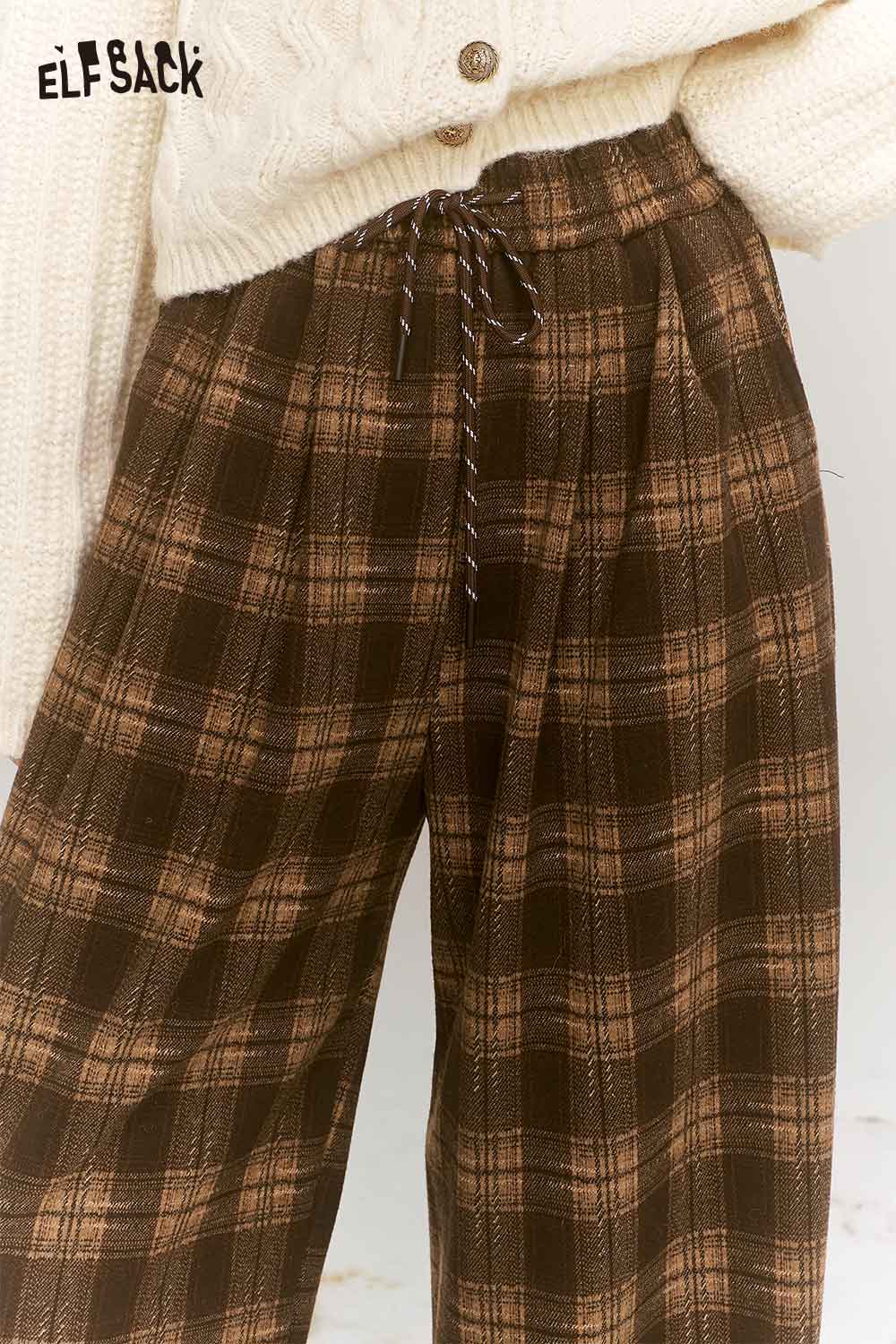 Soft Mallard Plaid Wide Leg Loose Slimming Straight Pants
