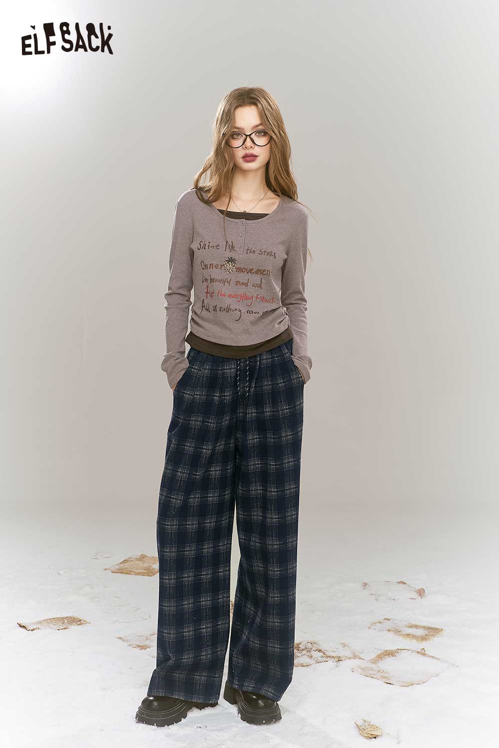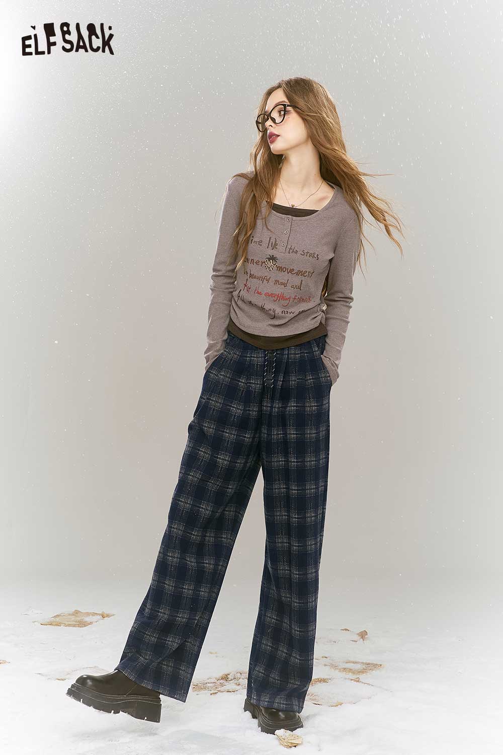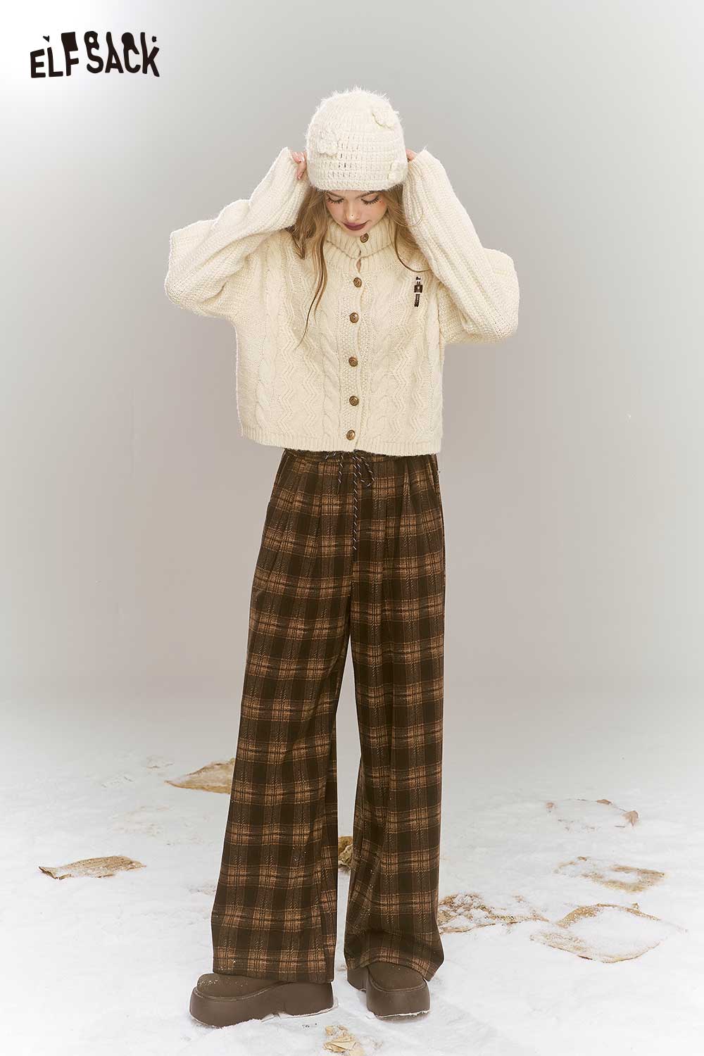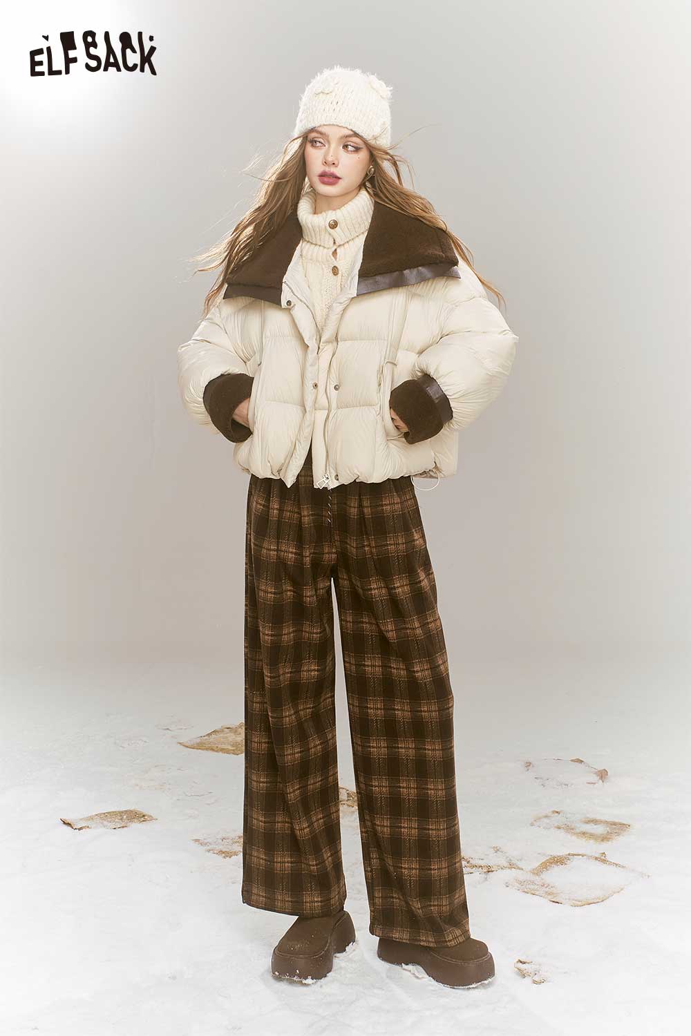 Soft Mallard Plaid Wide Leg Loose Slimming Straight Pants
