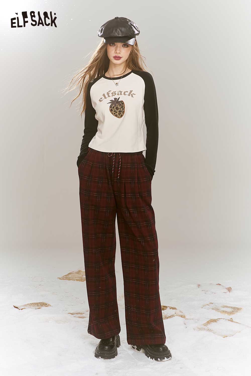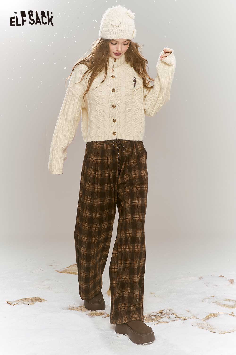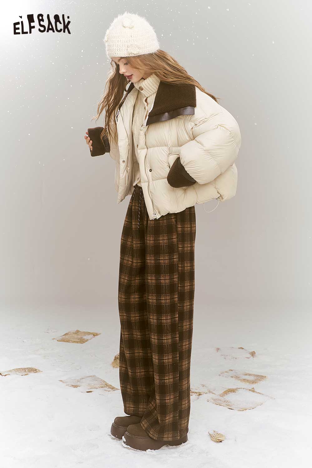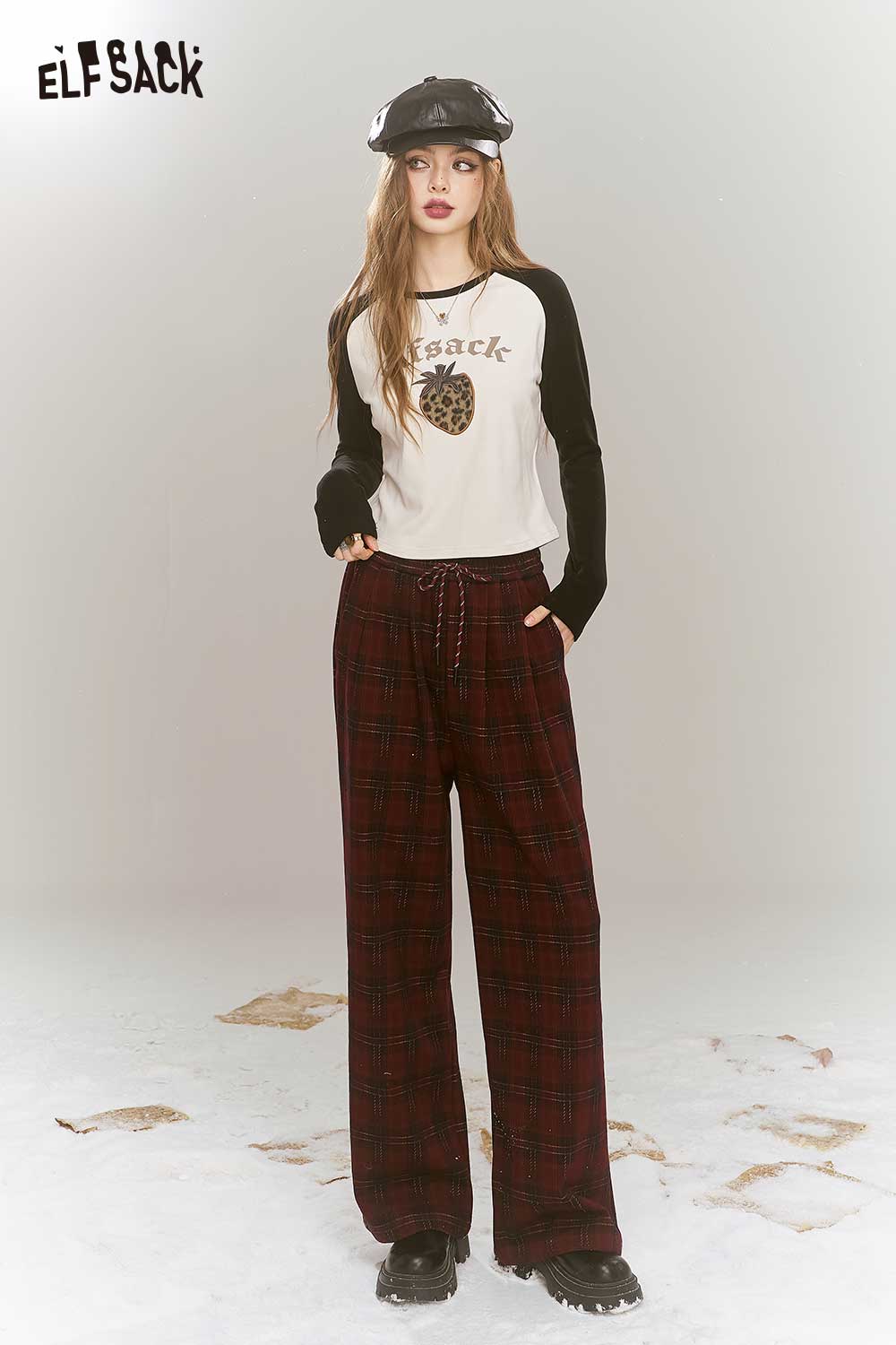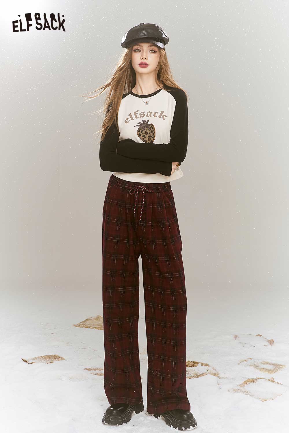 Soft Mallard Plaid Wide Leg Loose Slimming Straight Pants