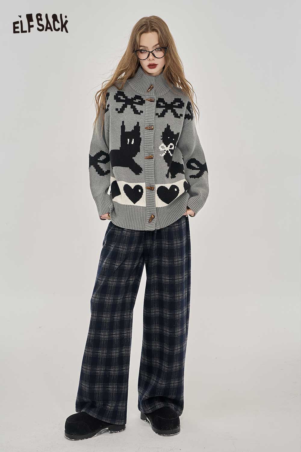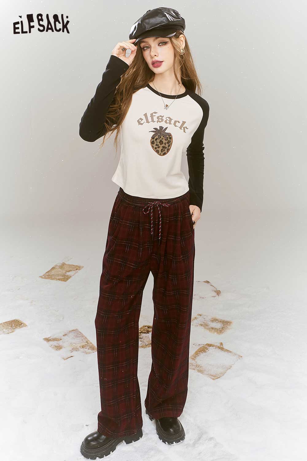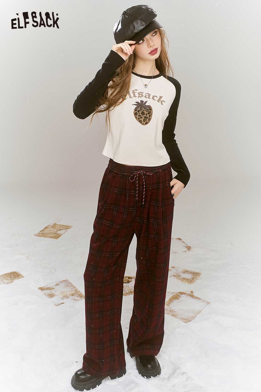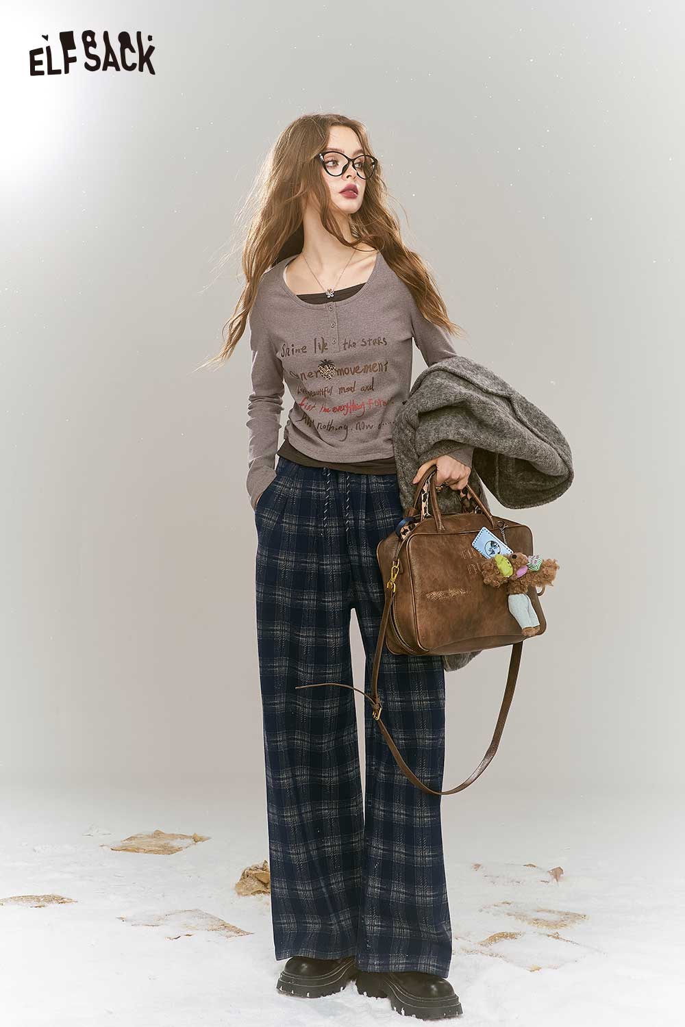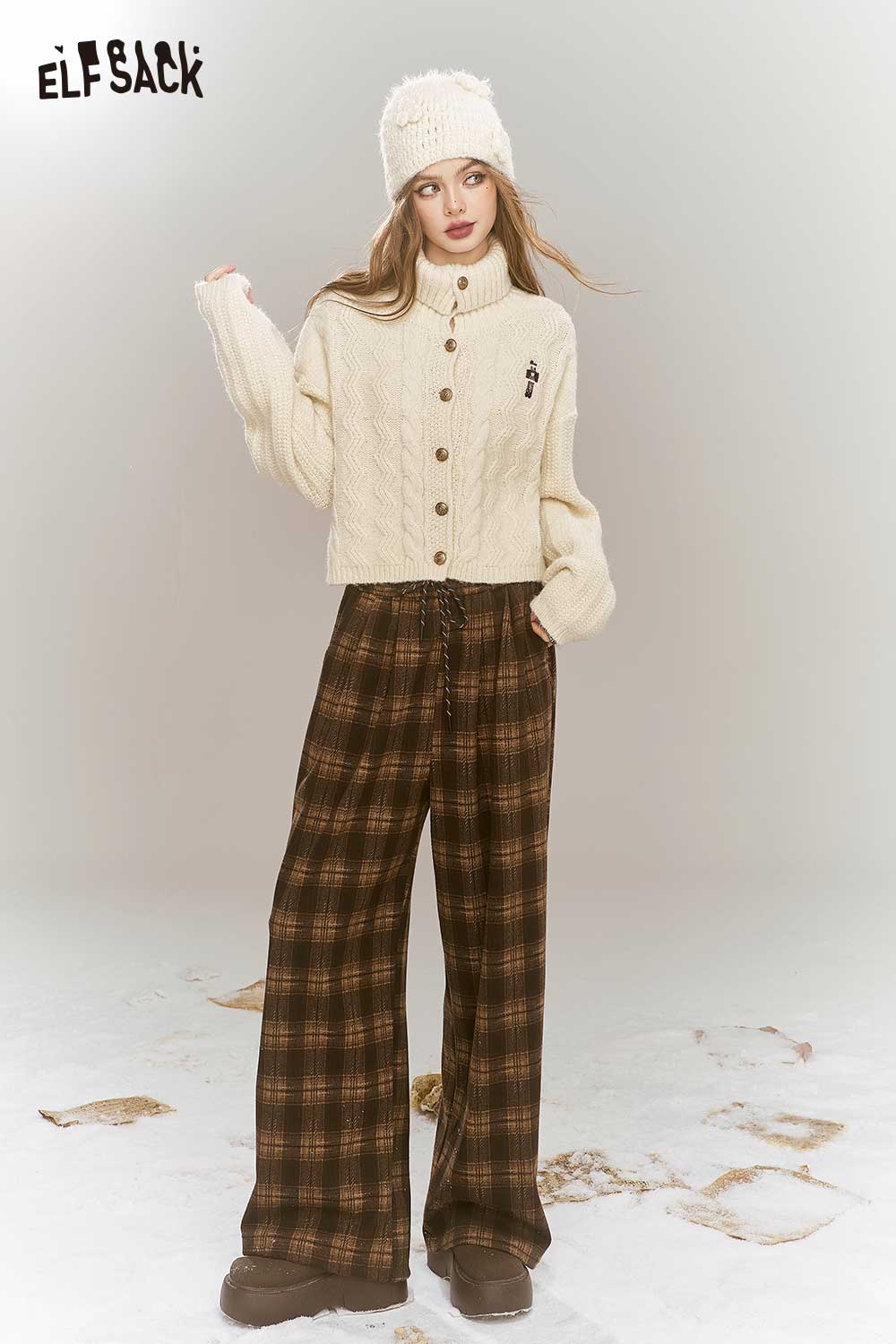 Soft Mallard Plaid Wide Leg Loose Slimming Straight Pants