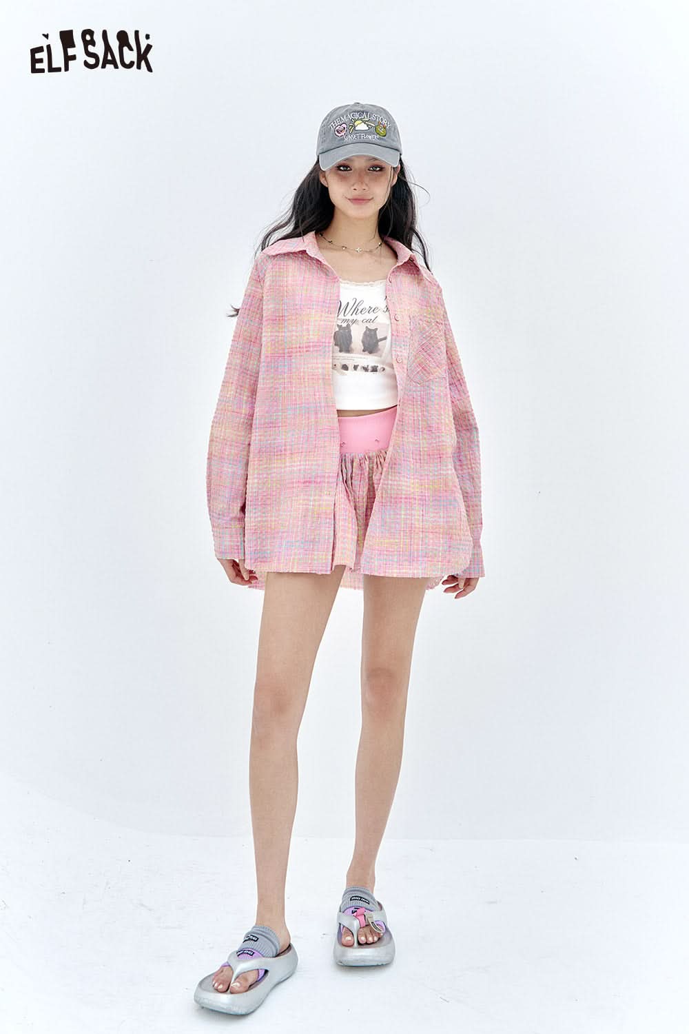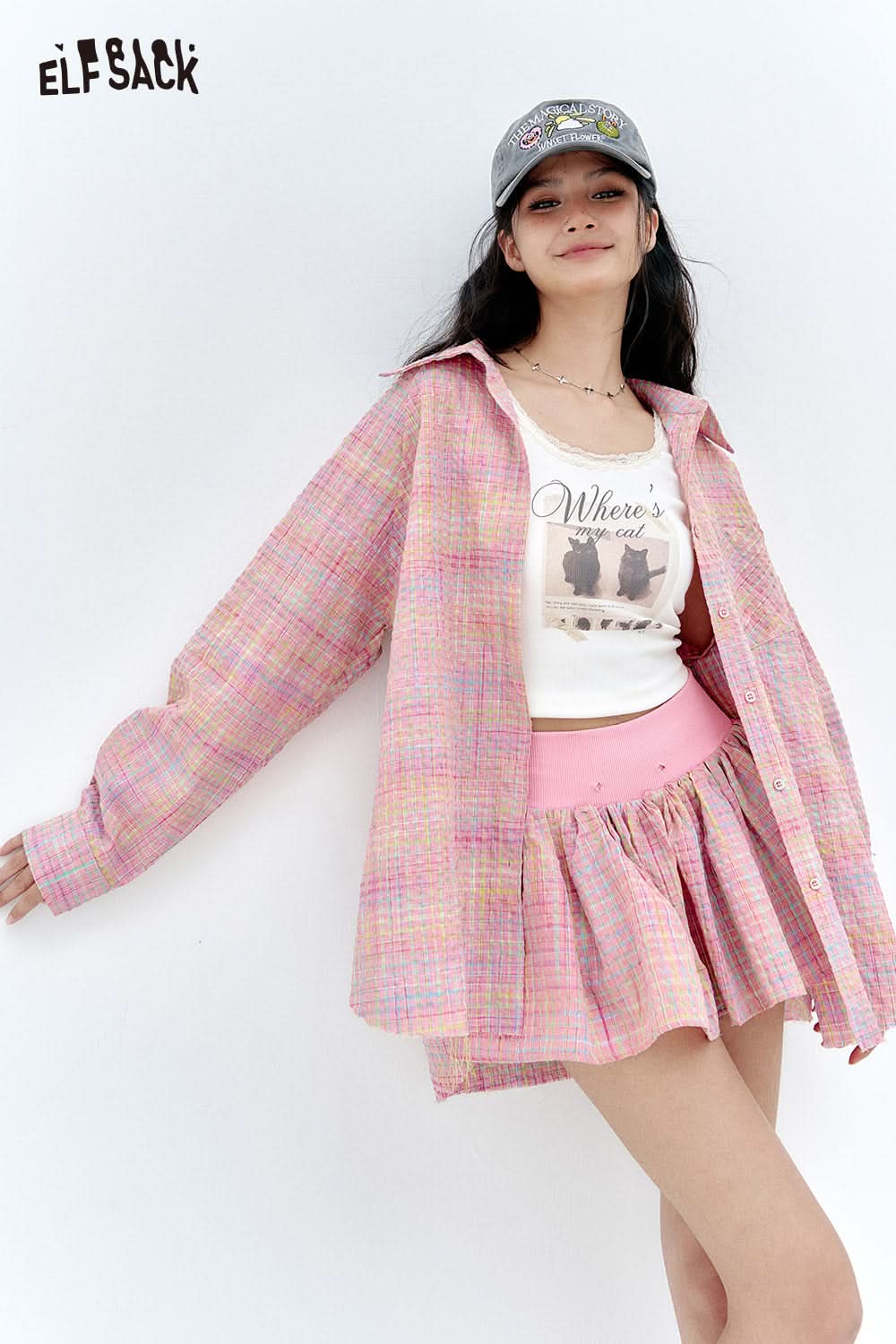 Dopamine plaid shirt skirt pants two-piece set