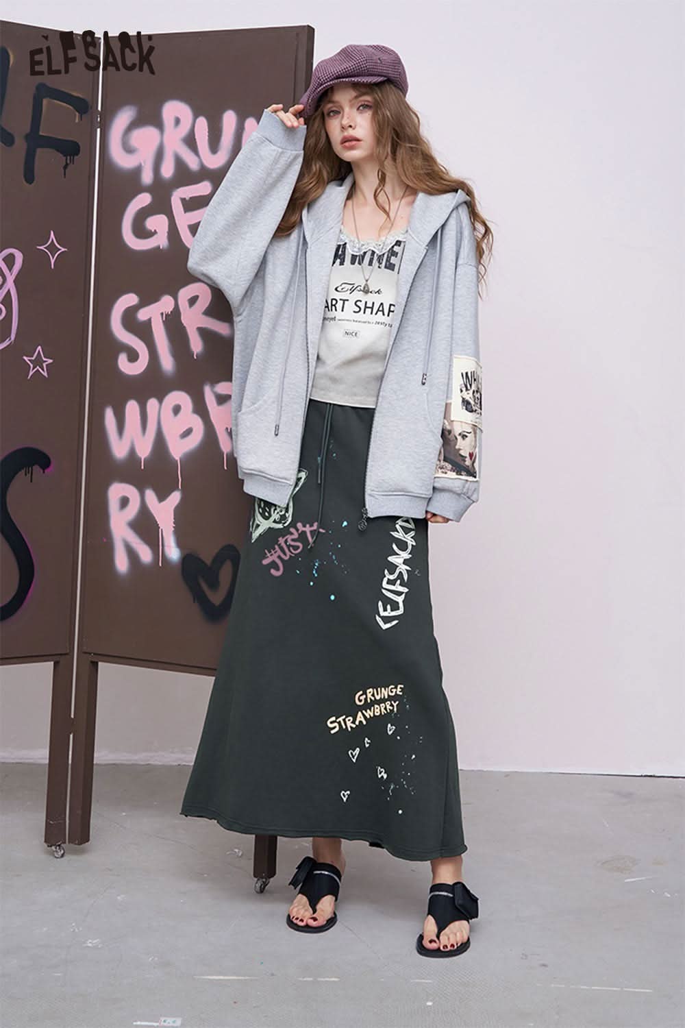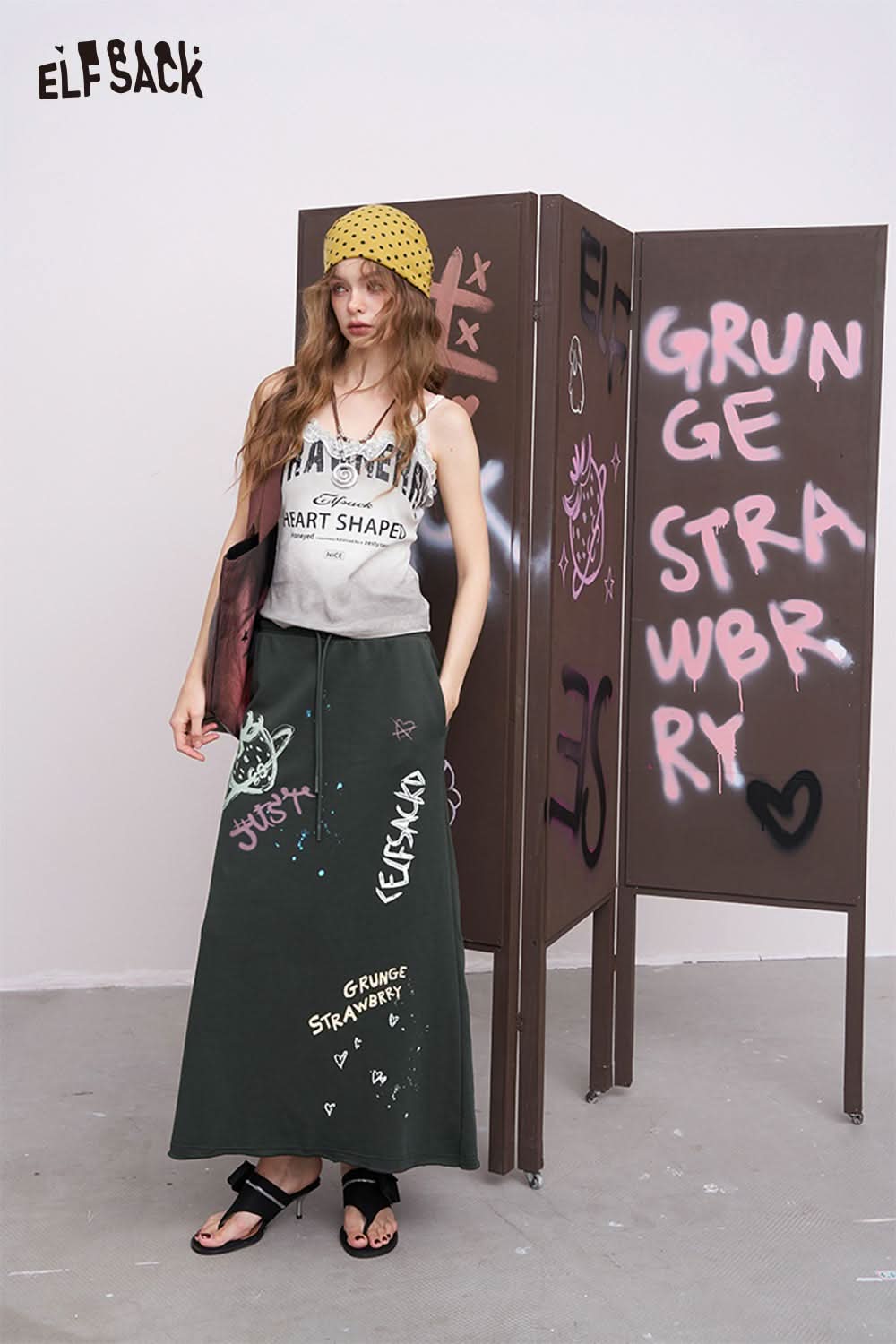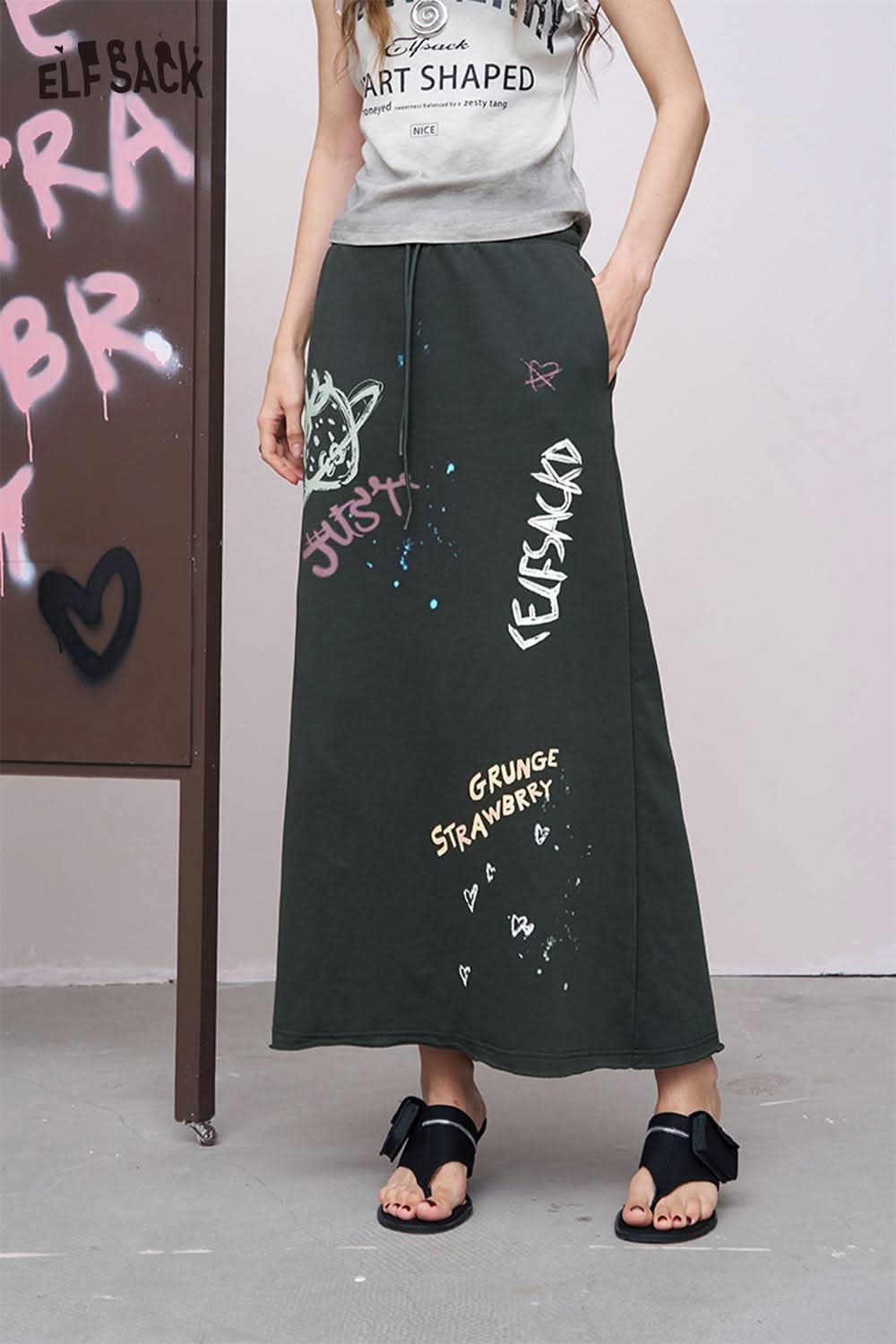 Blend High Waist Adjustable Drawcord Street Art Typography Skirt