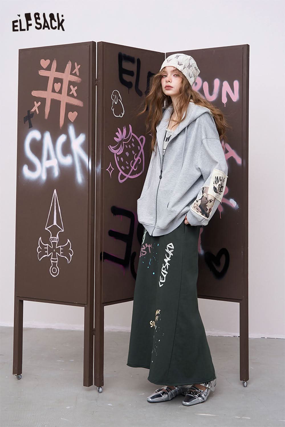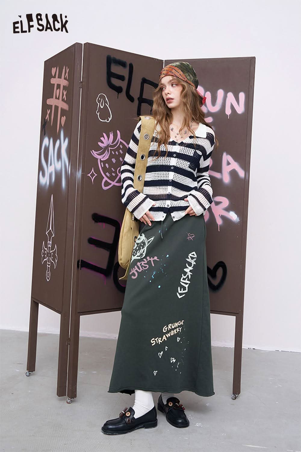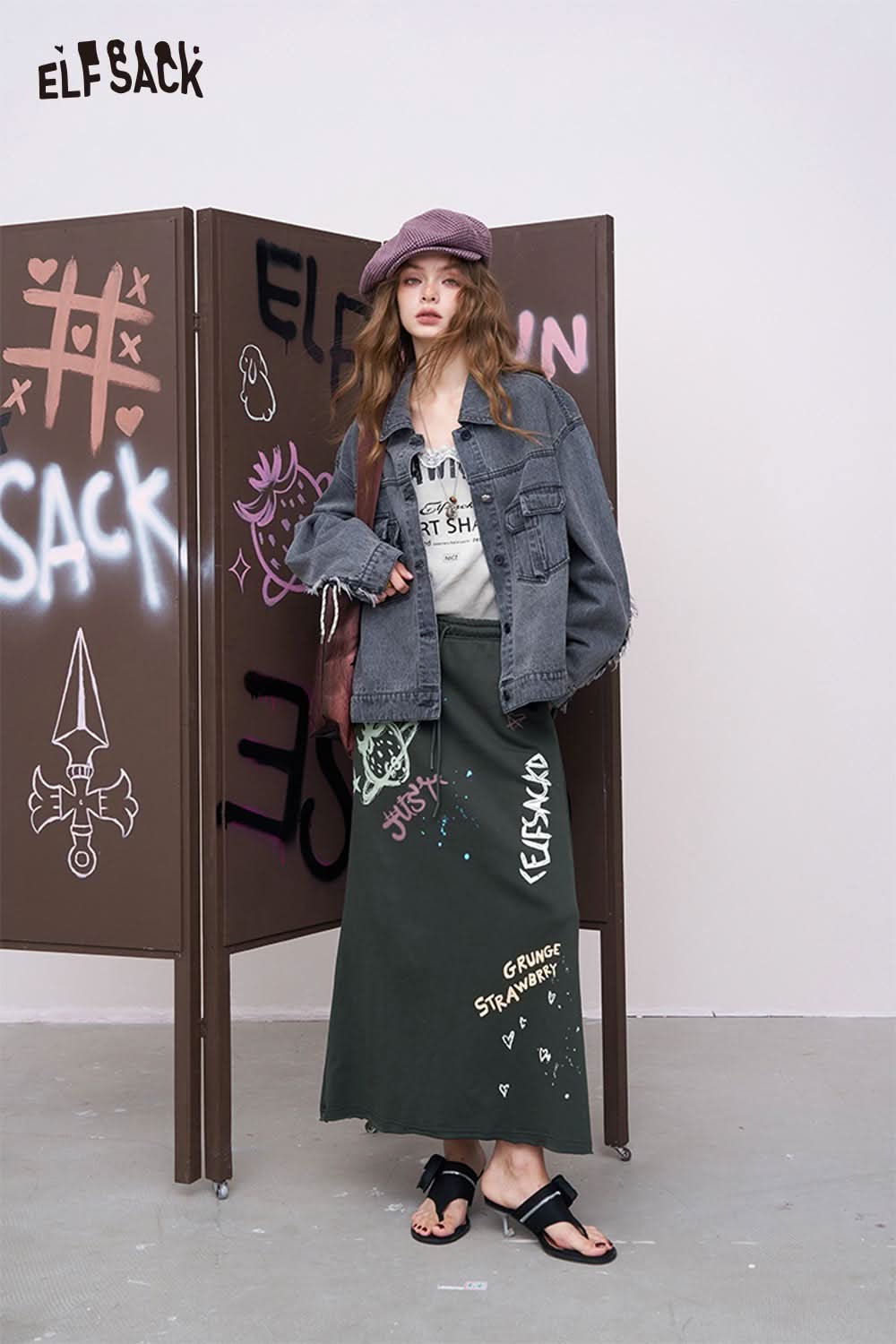 Blend High Waist Adjustable Drawcord Street Art Typography Skirt