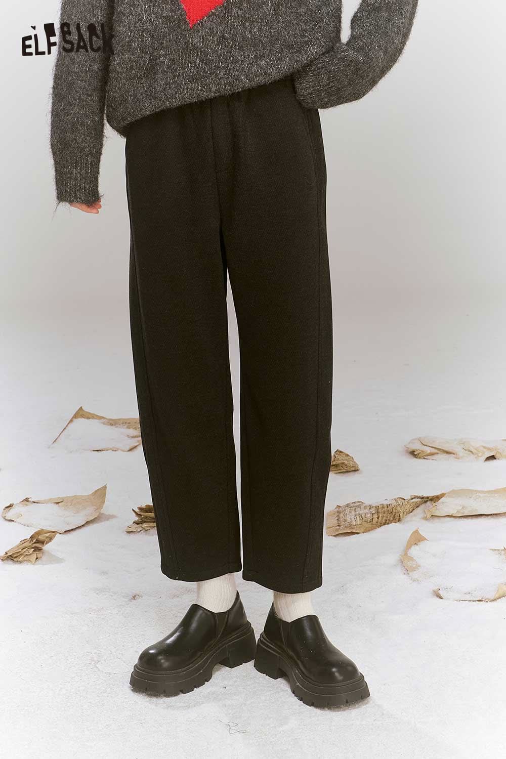 Breathable Black High Waist Fleece Lined Cropped Tapered Pants