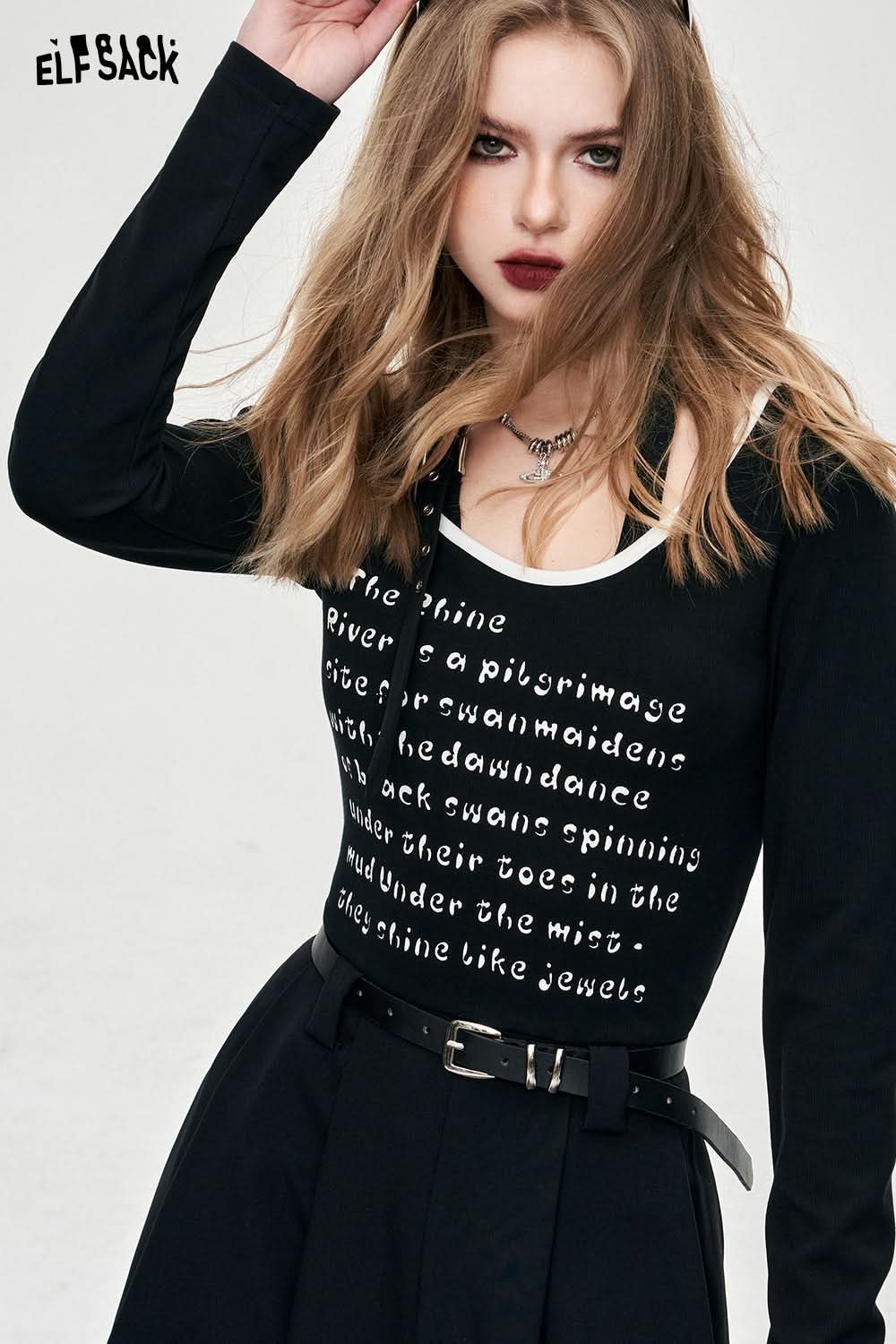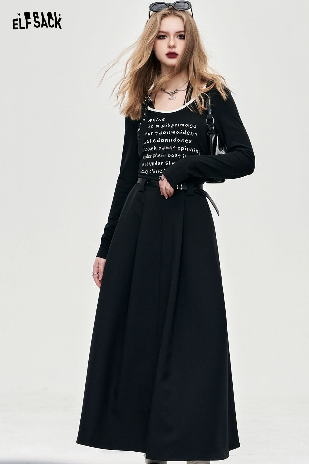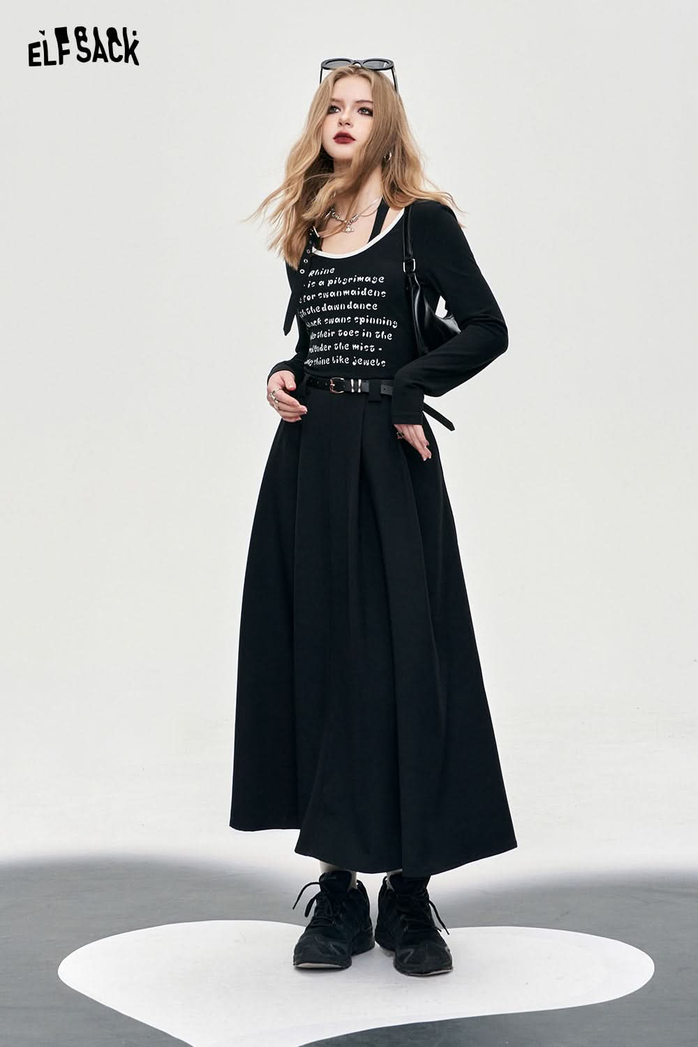 low cut neck contrast alphabet printing pullover dress spring sweet mid long length thin halter neck dress