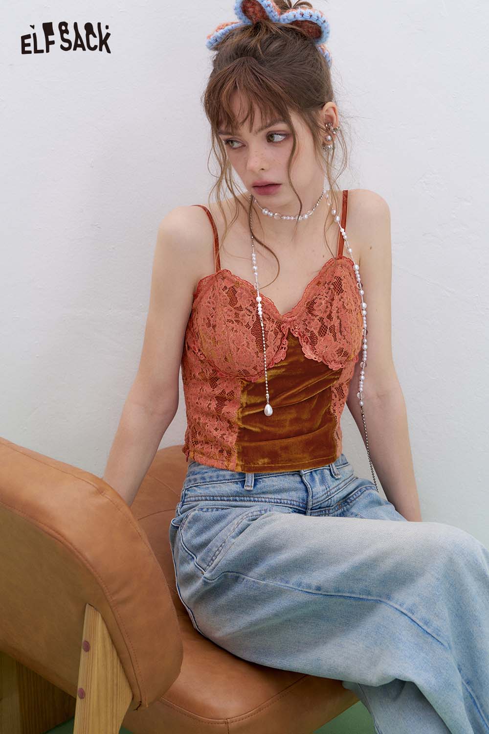 Lace Velvet Panel Camisole Autumn Winter New Oriental Layering