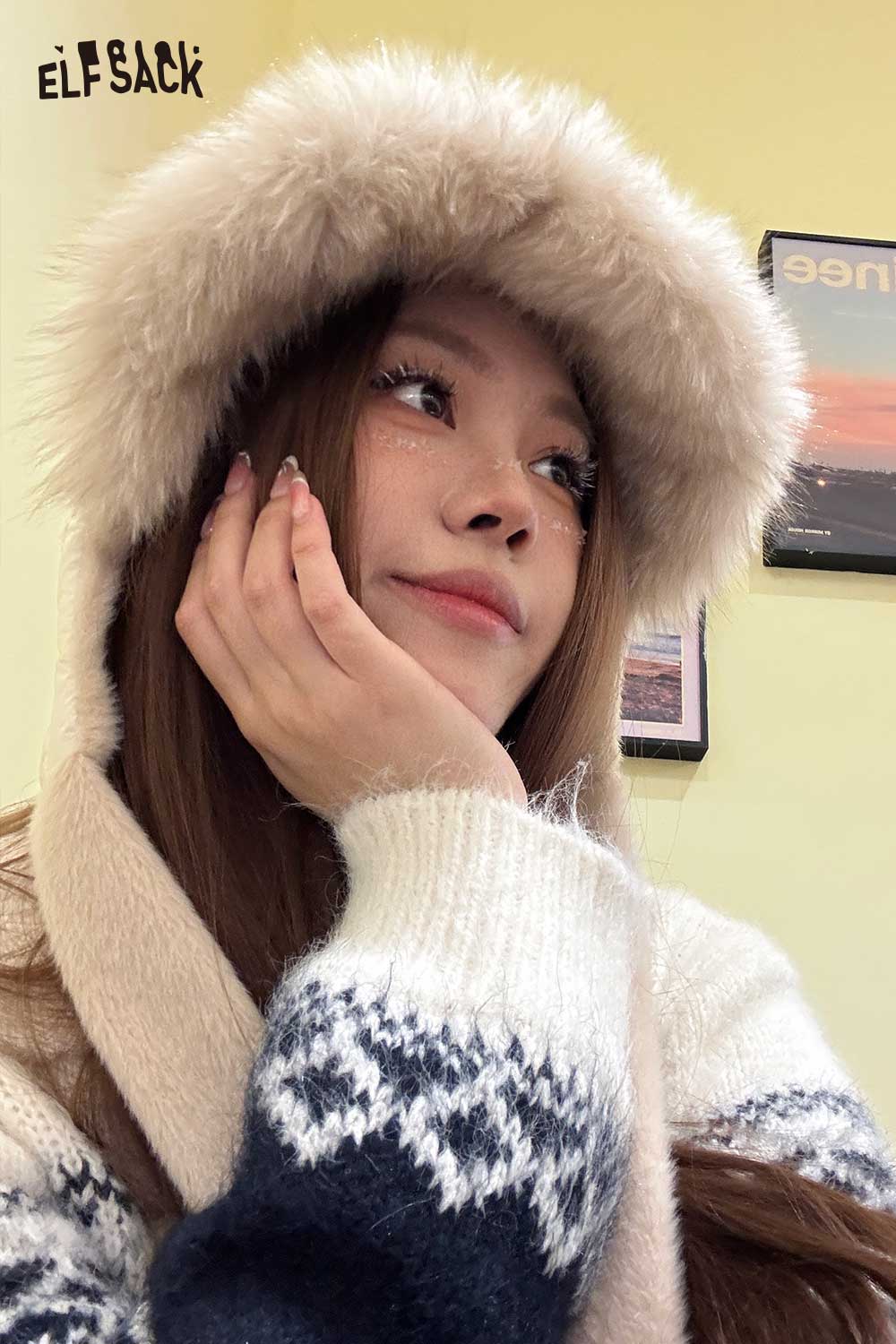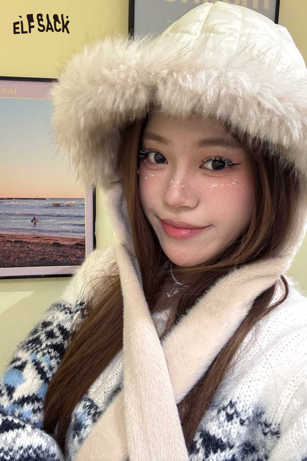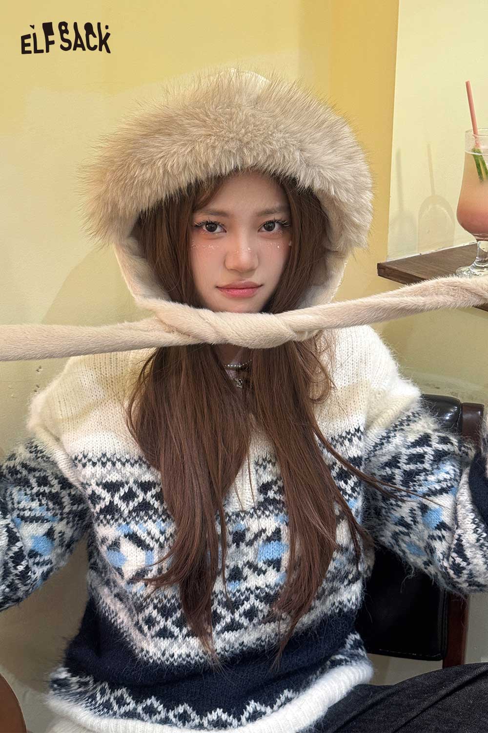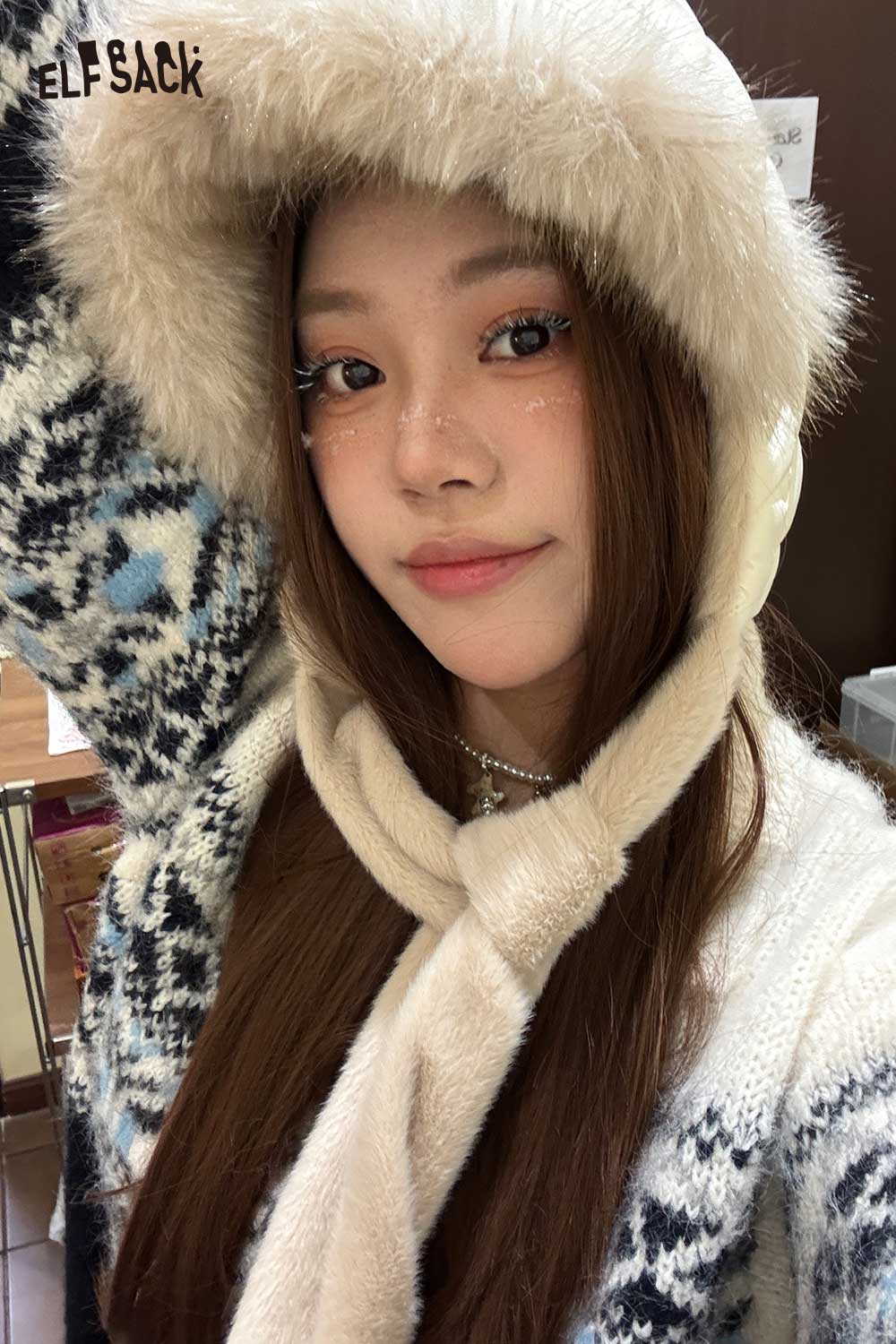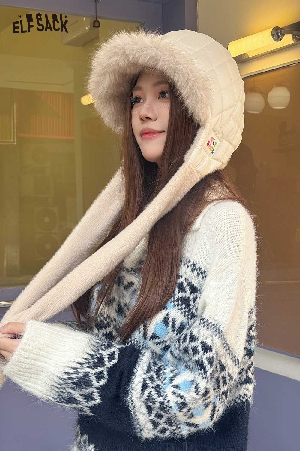 Cute Plush Lining Ear Flap Tie Large Head Size Hat