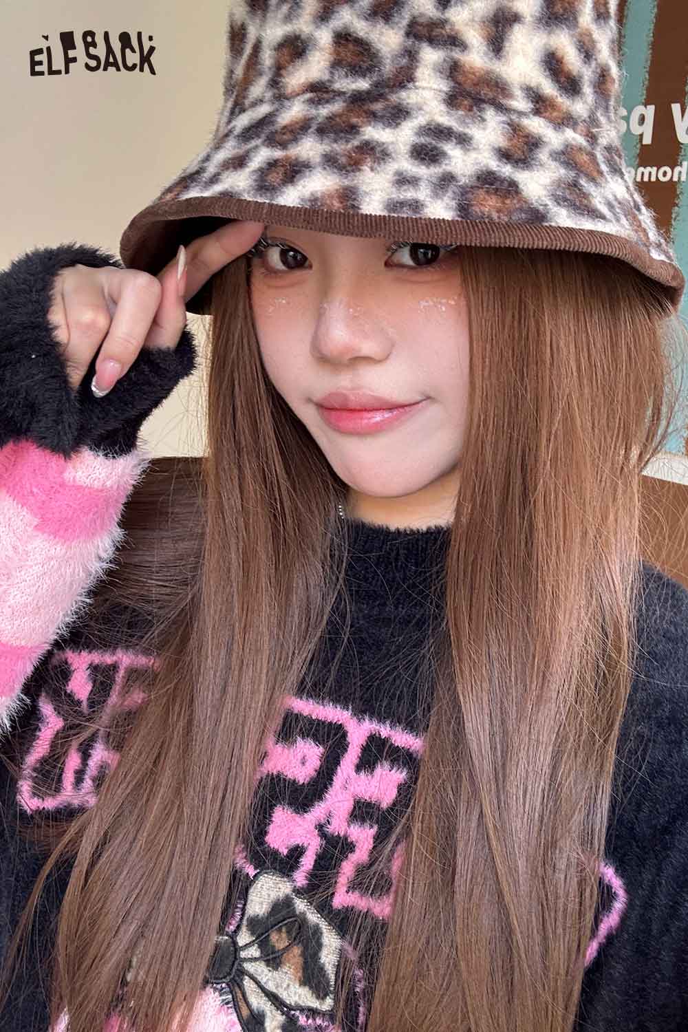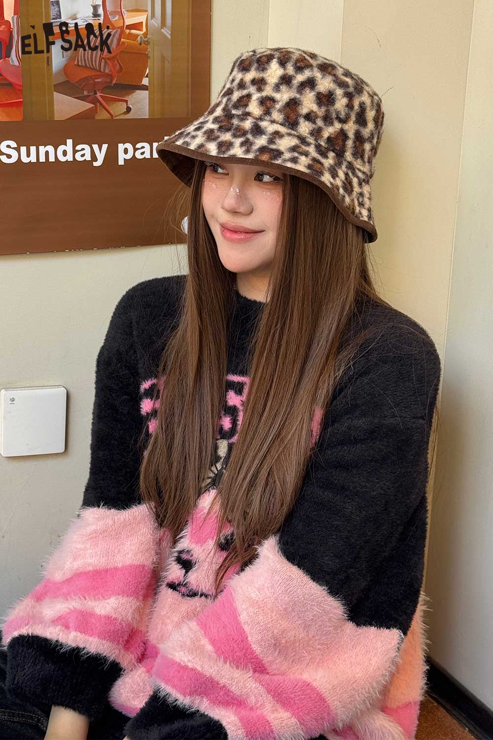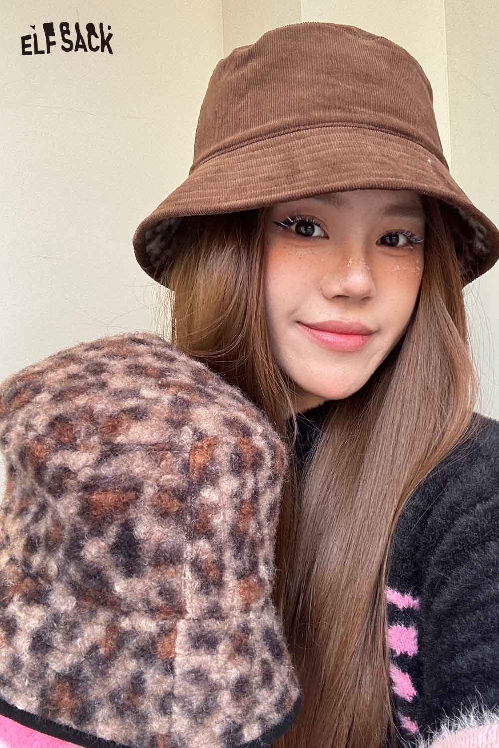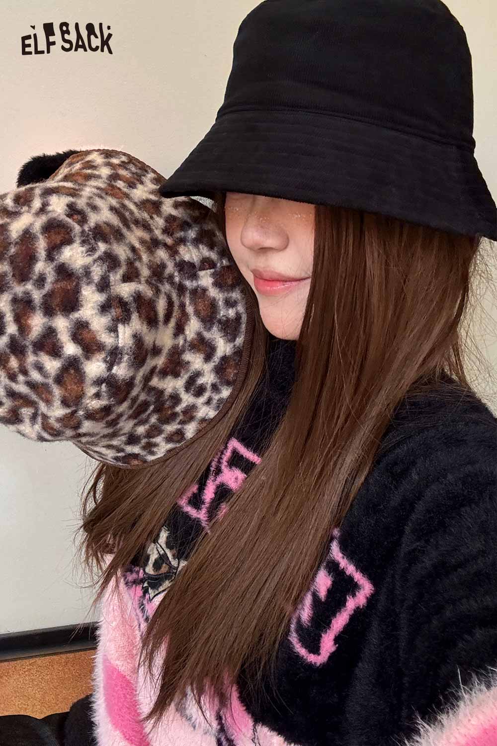 Minimalist Casual Reversible Leopard Plush Bucket Hat