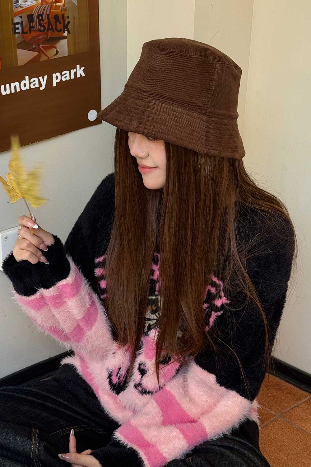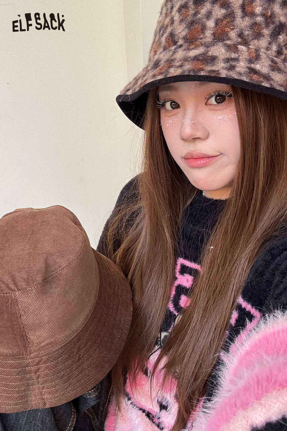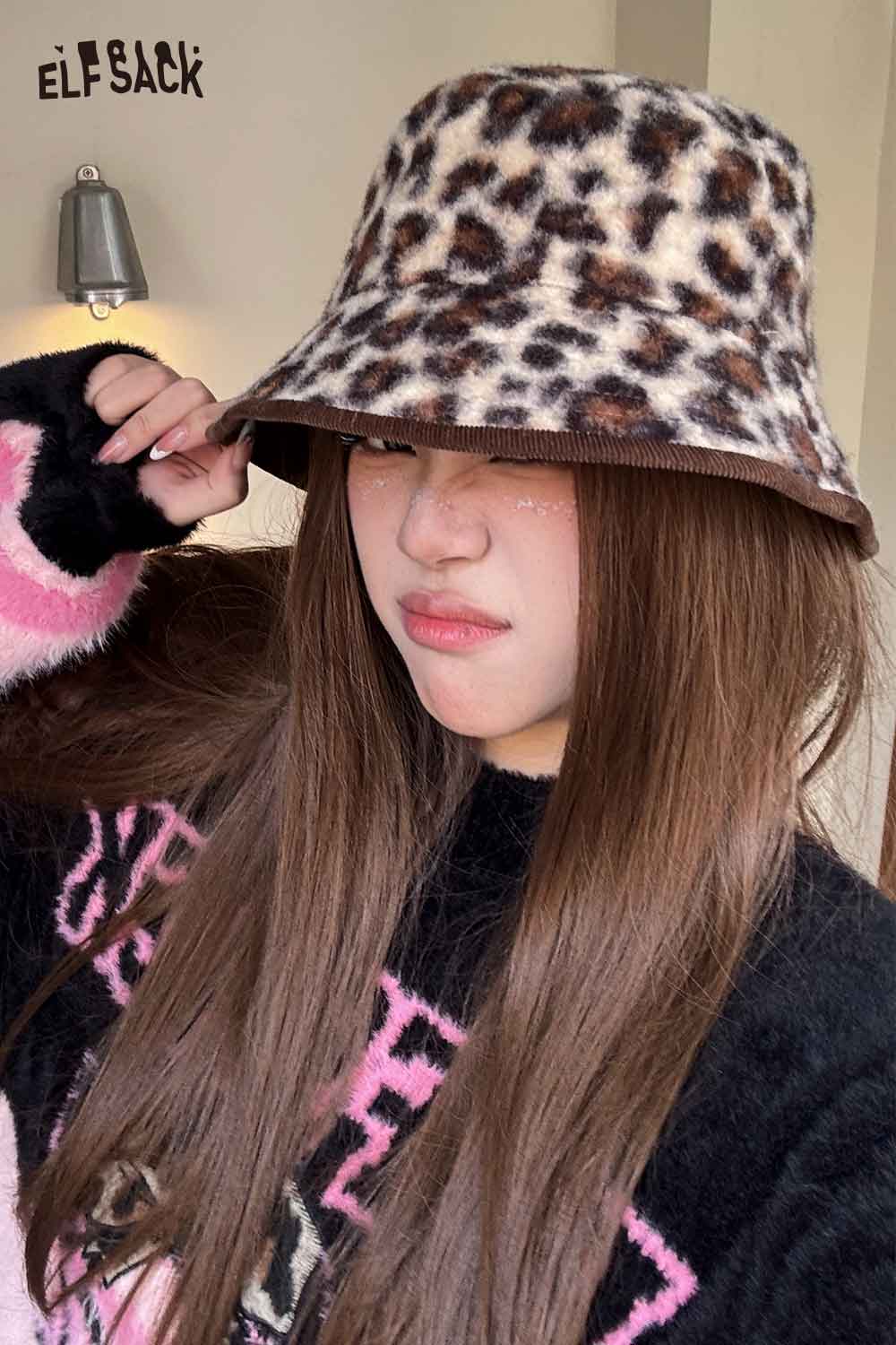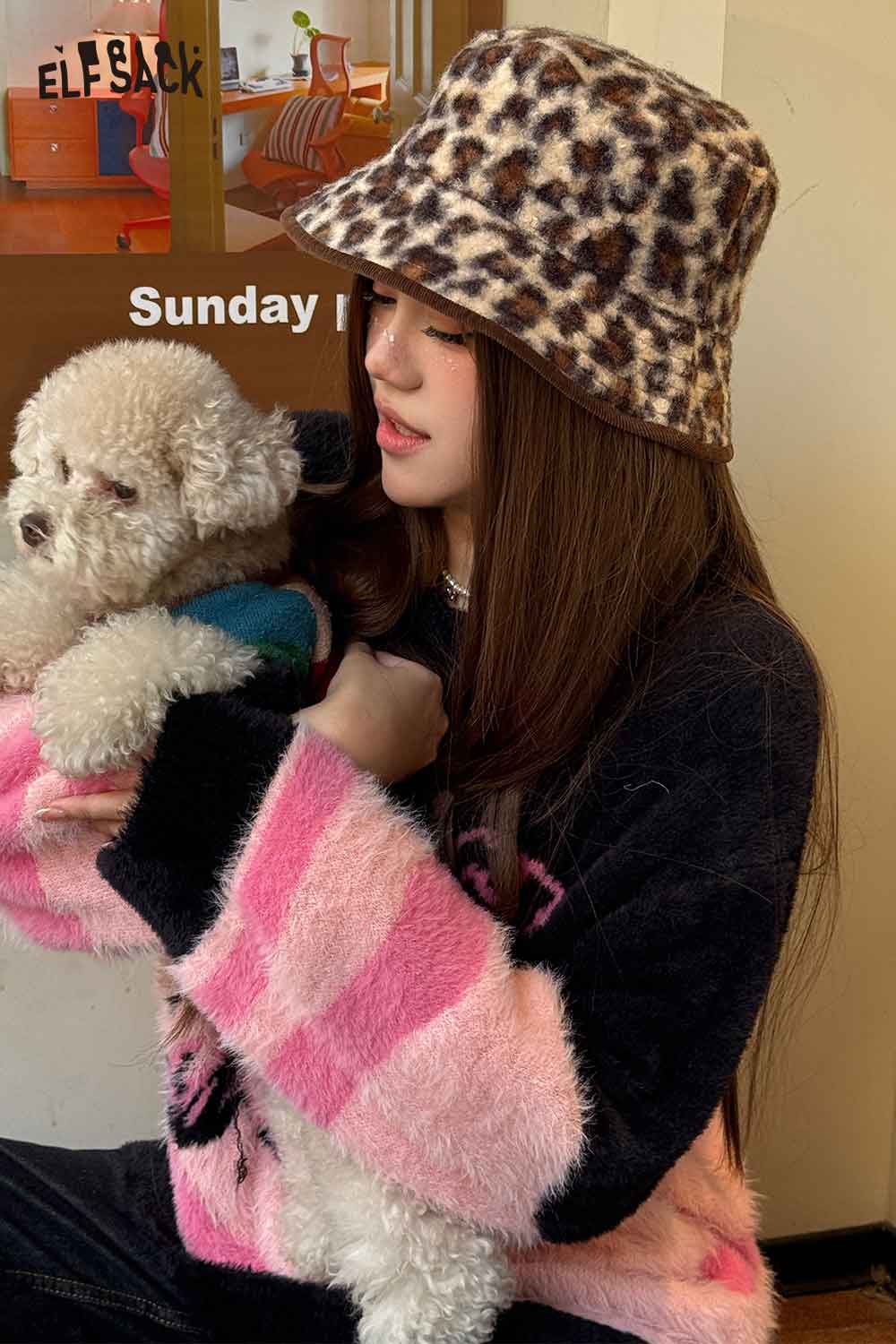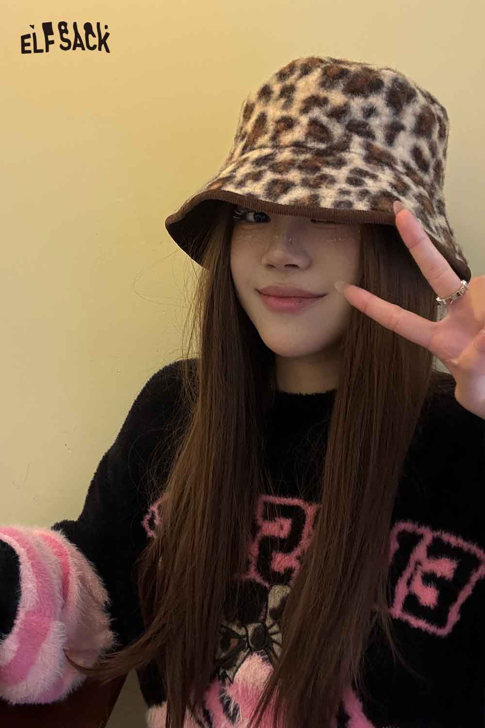 Minimalist Casual Reversible Leopard Plush Bucket Hat