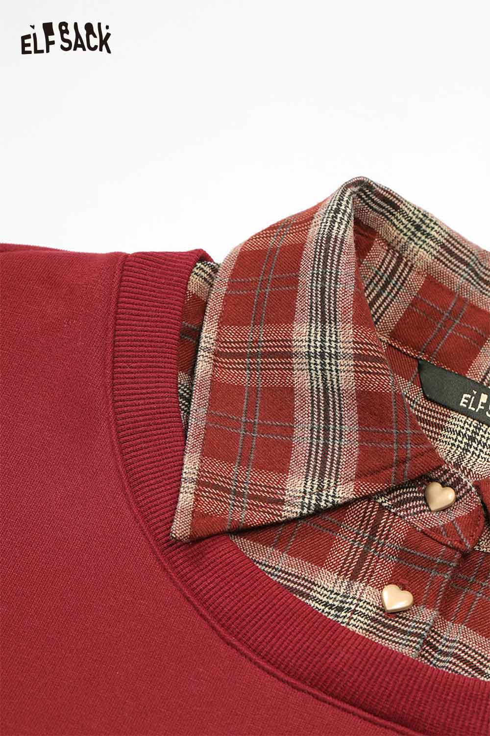 Heart Embroidery Fake Two Piece Stripe Red Plaid Jumpsuit