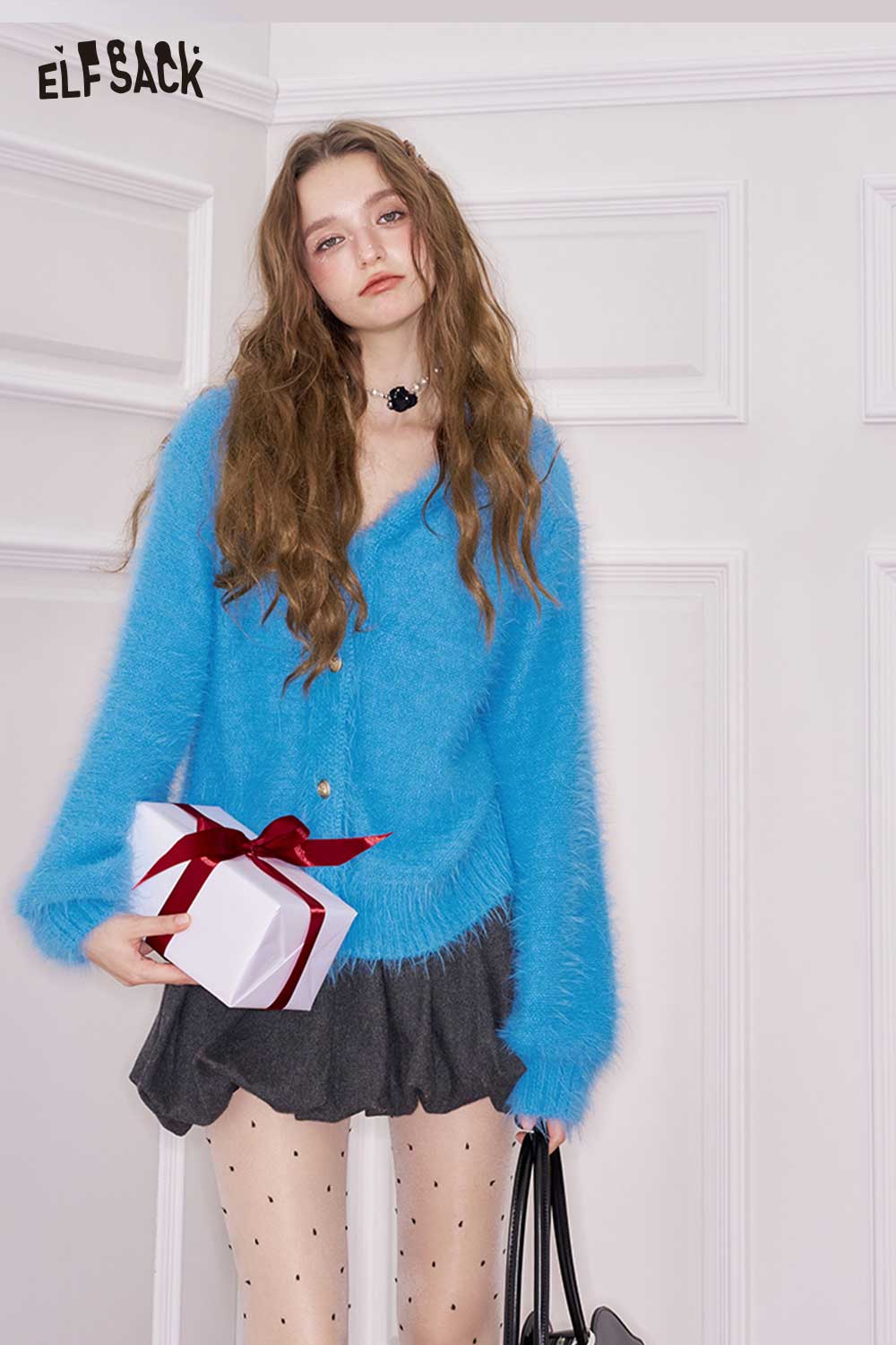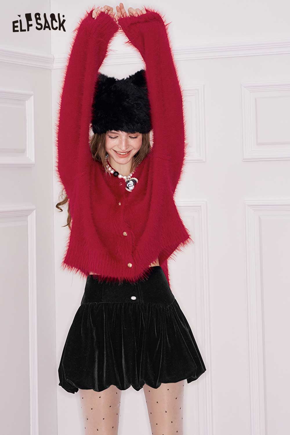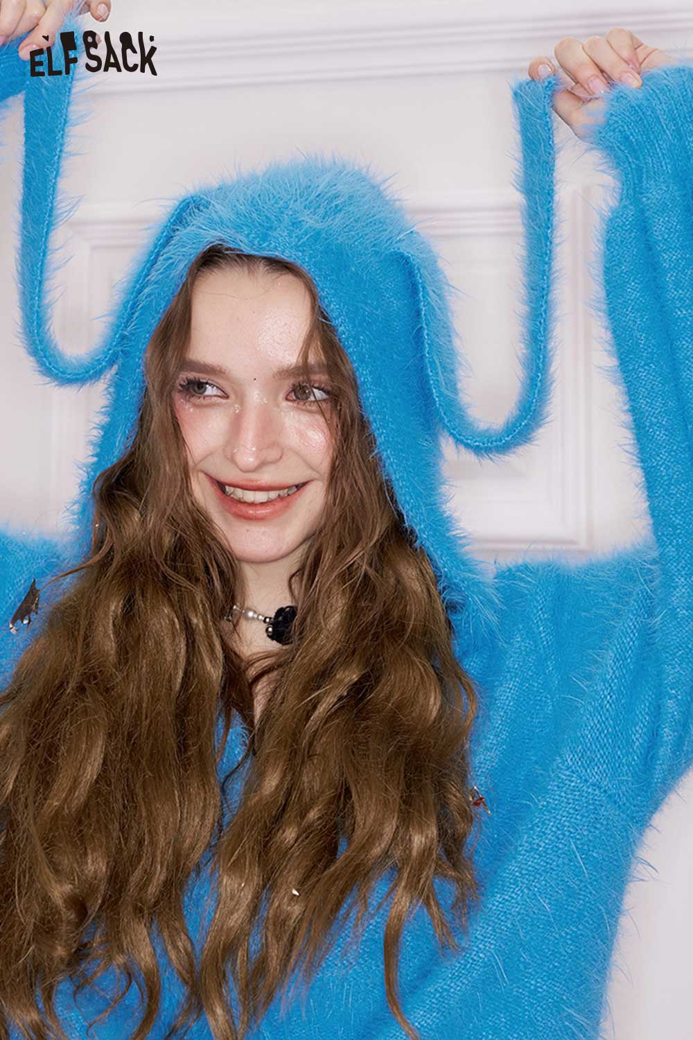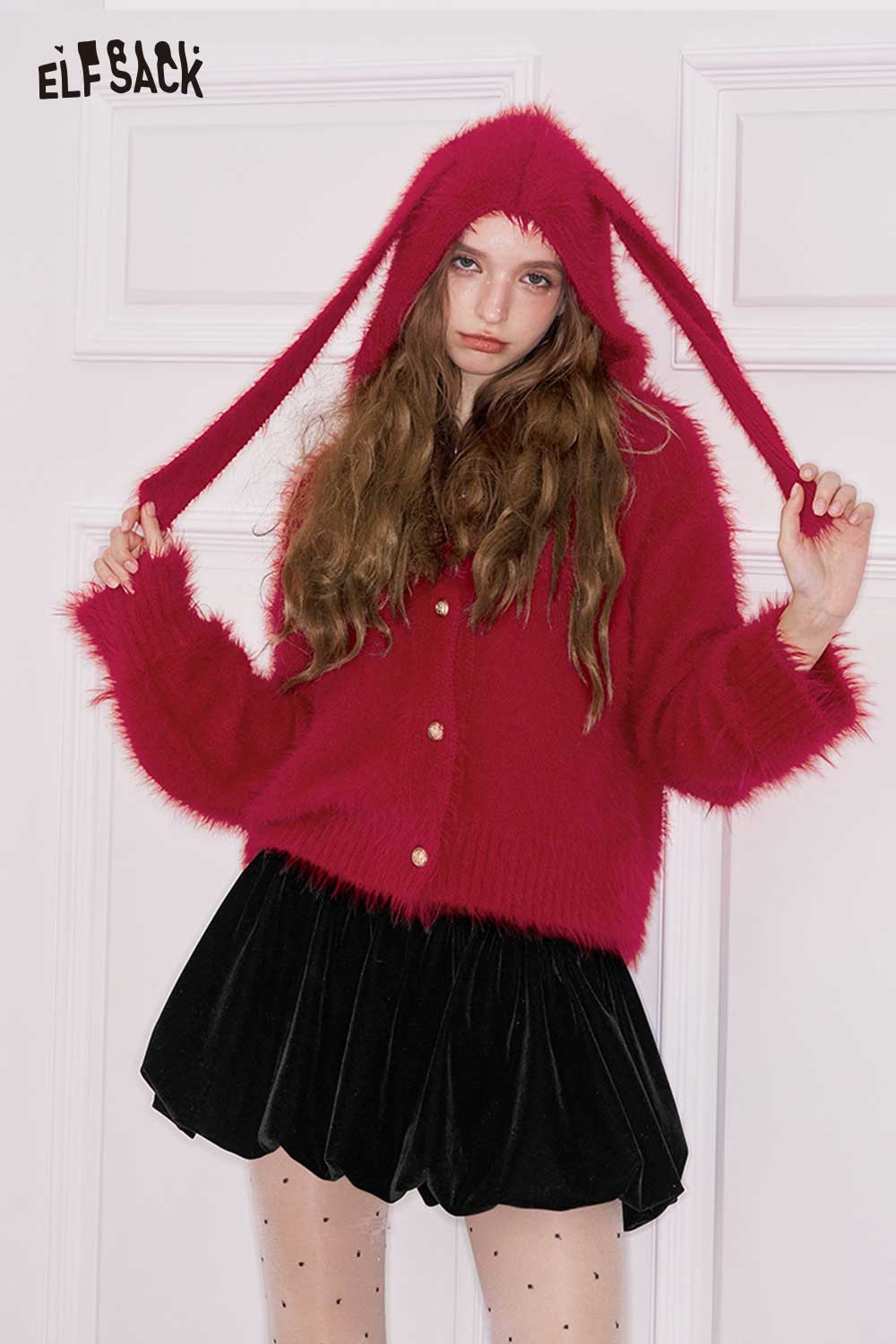 Solid Single Breasted Gold Button Bunny Ear Hood Cropped Cardigan