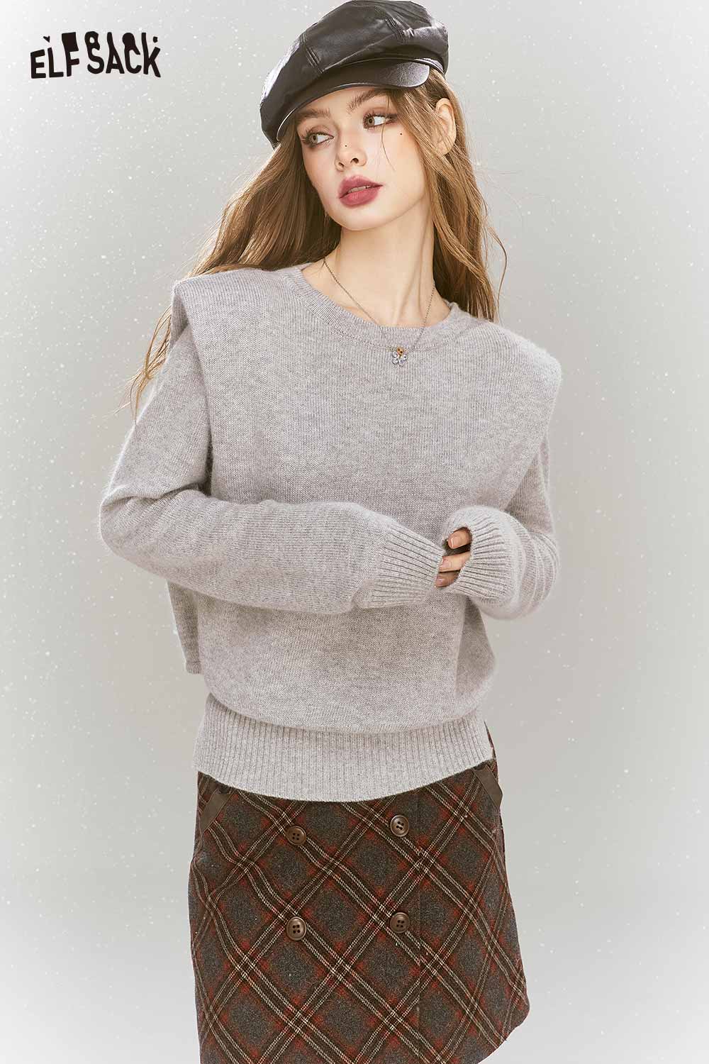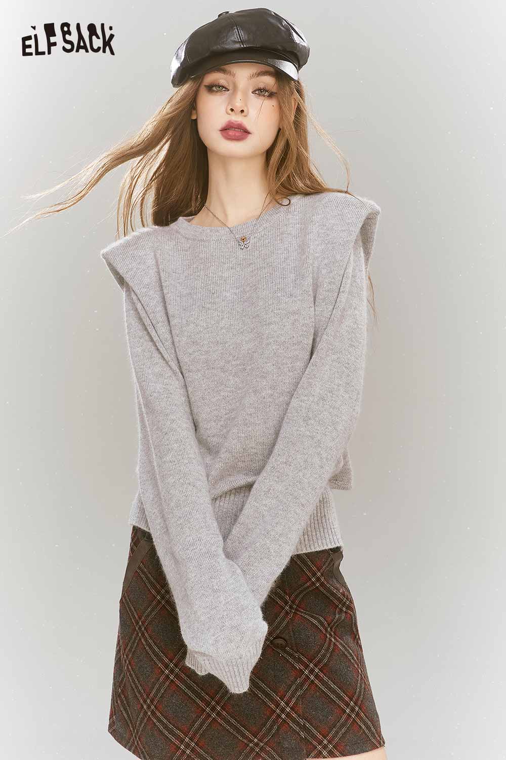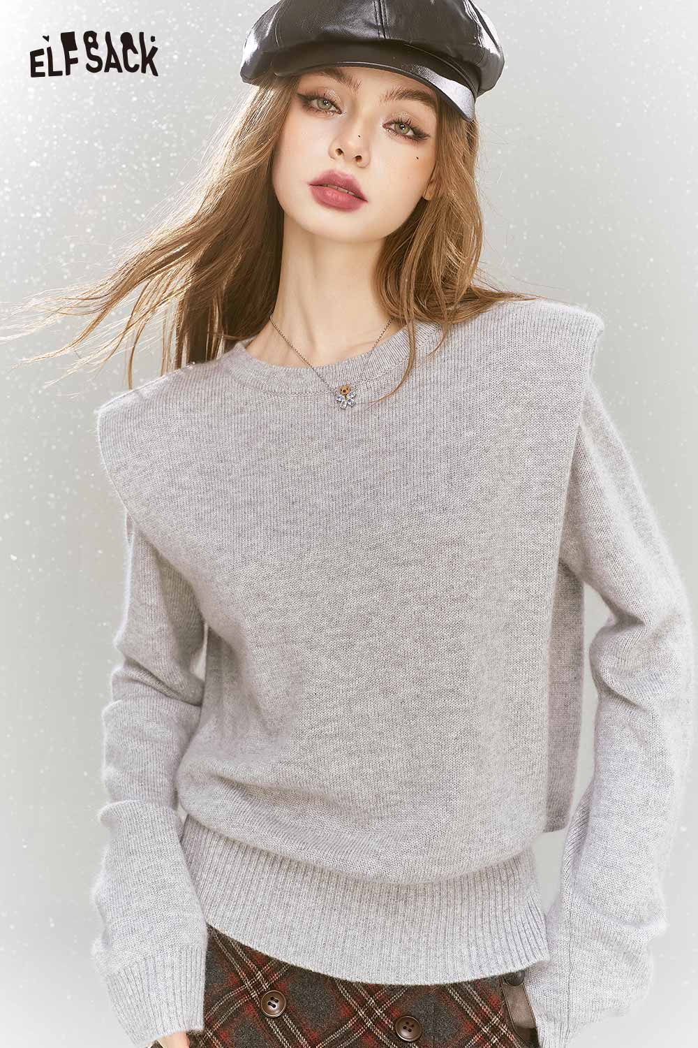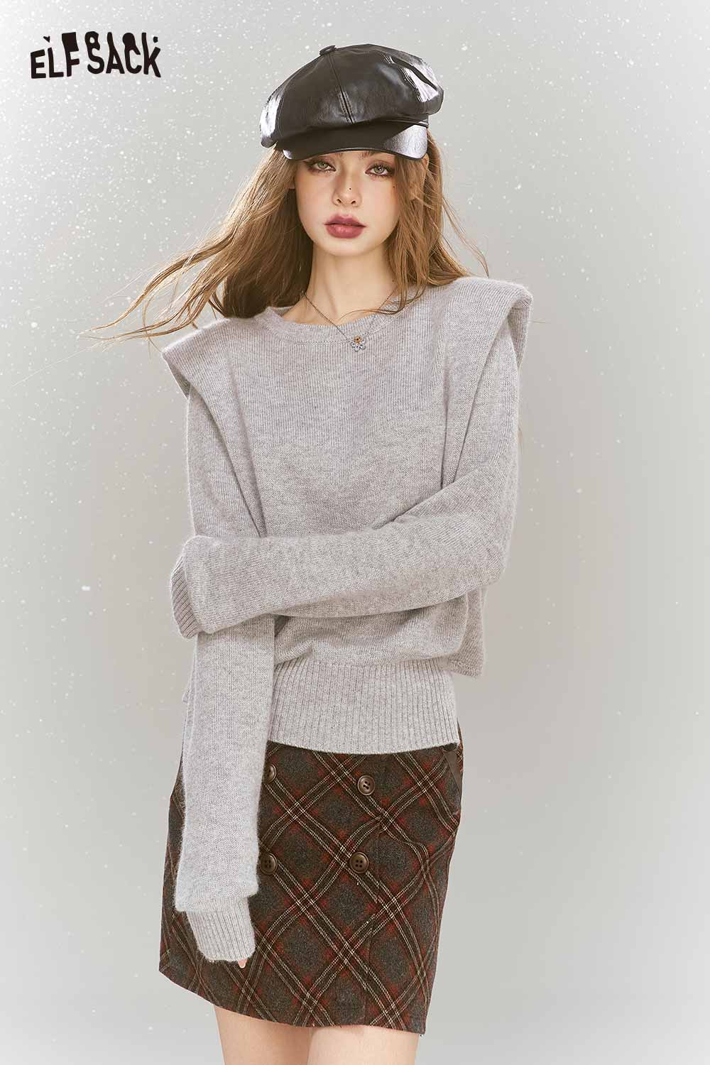 Elegant Gray Shoulder Pad Sweater