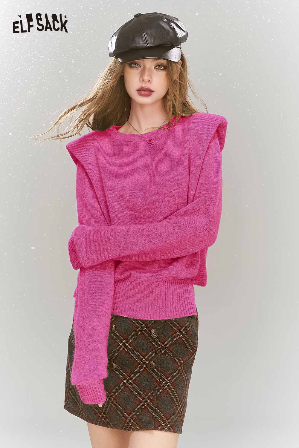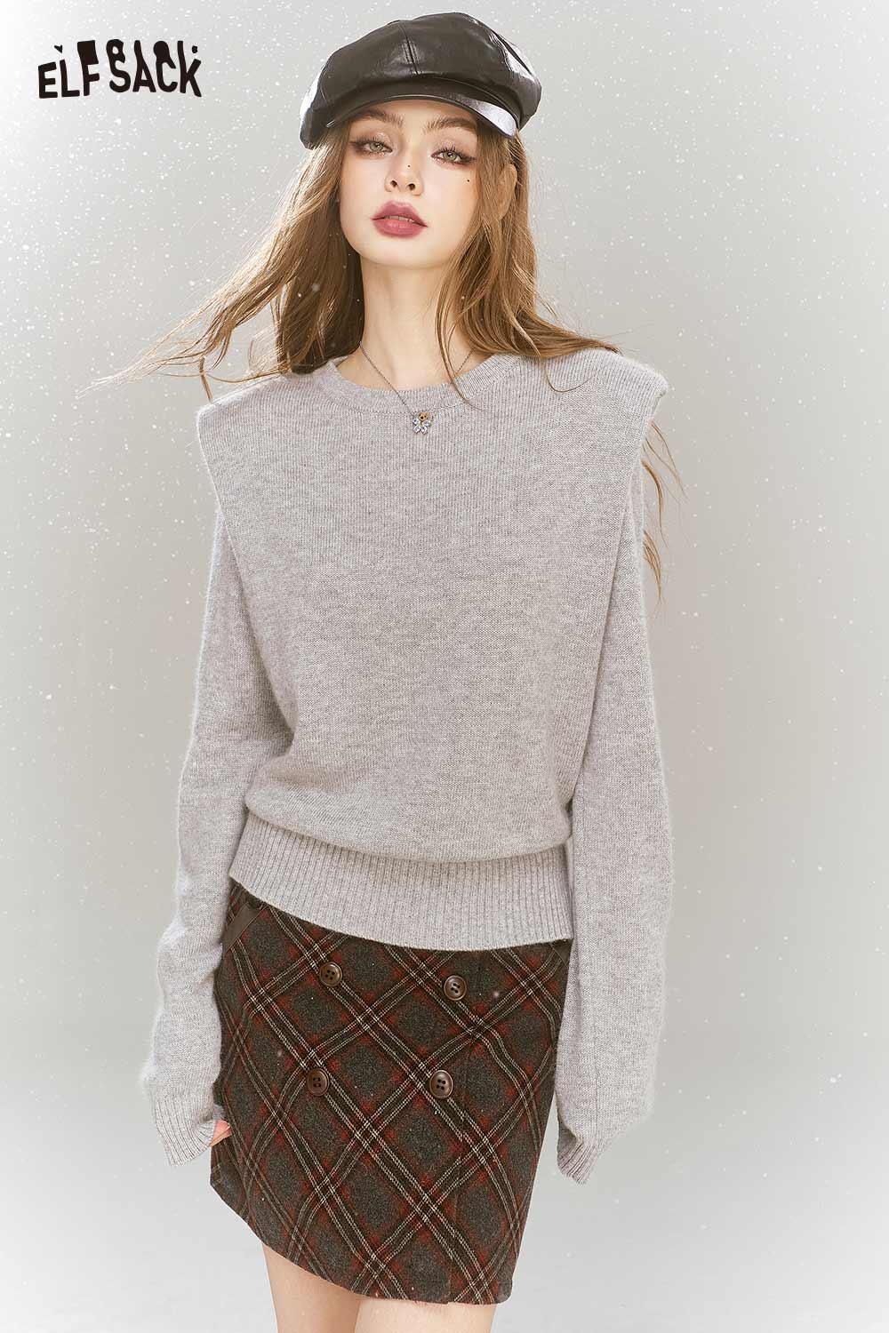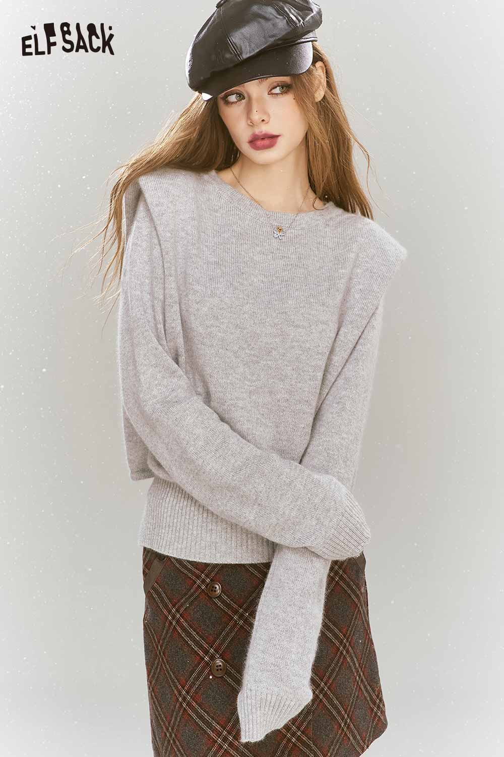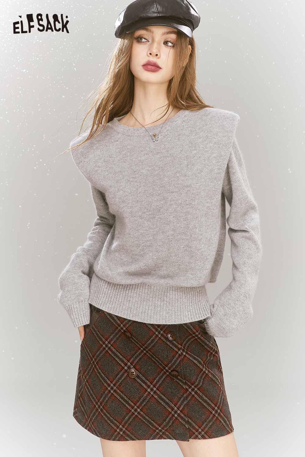 Elegant Gray Shoulder Pad Sweater