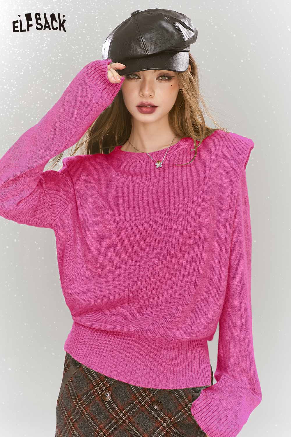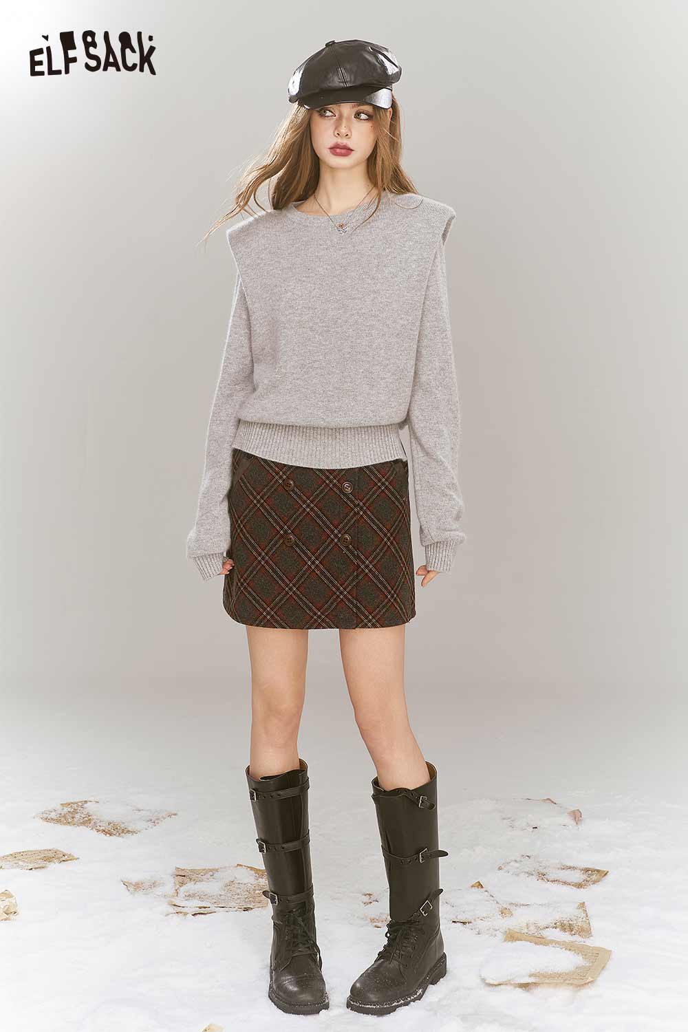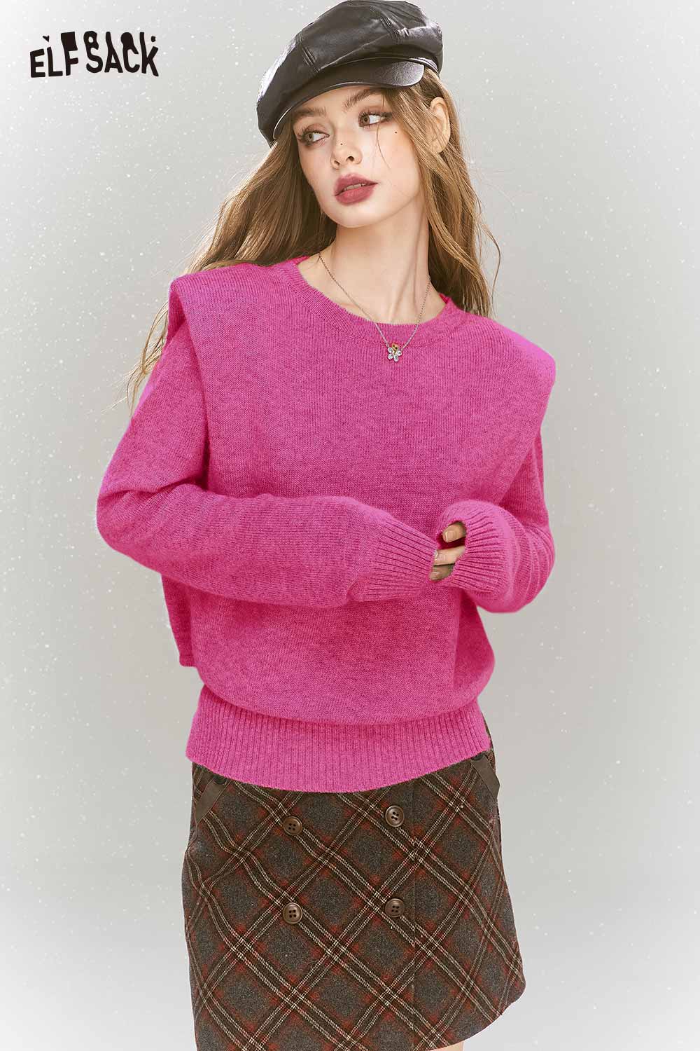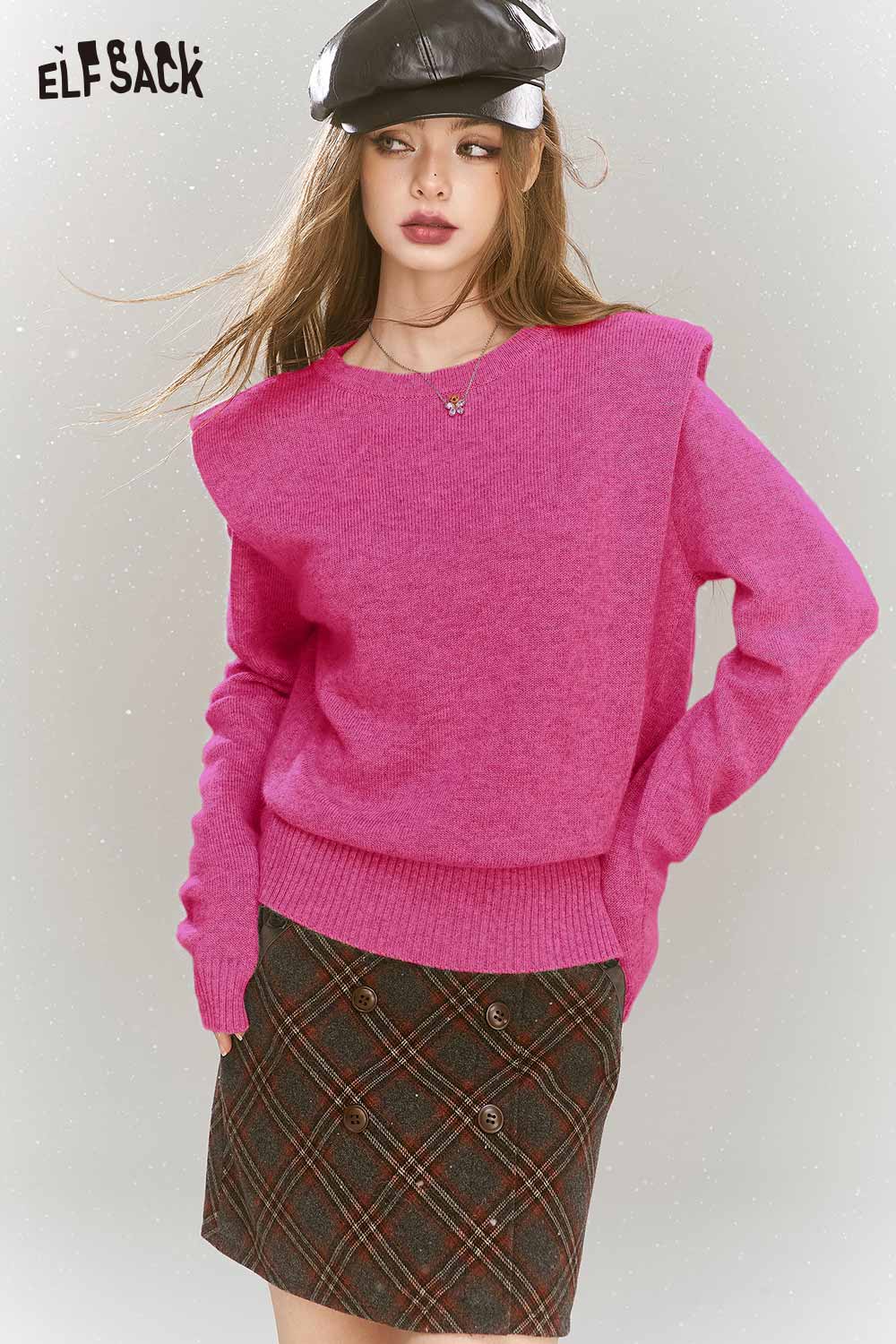 Elegant Gray Shoulder Pad Sweater