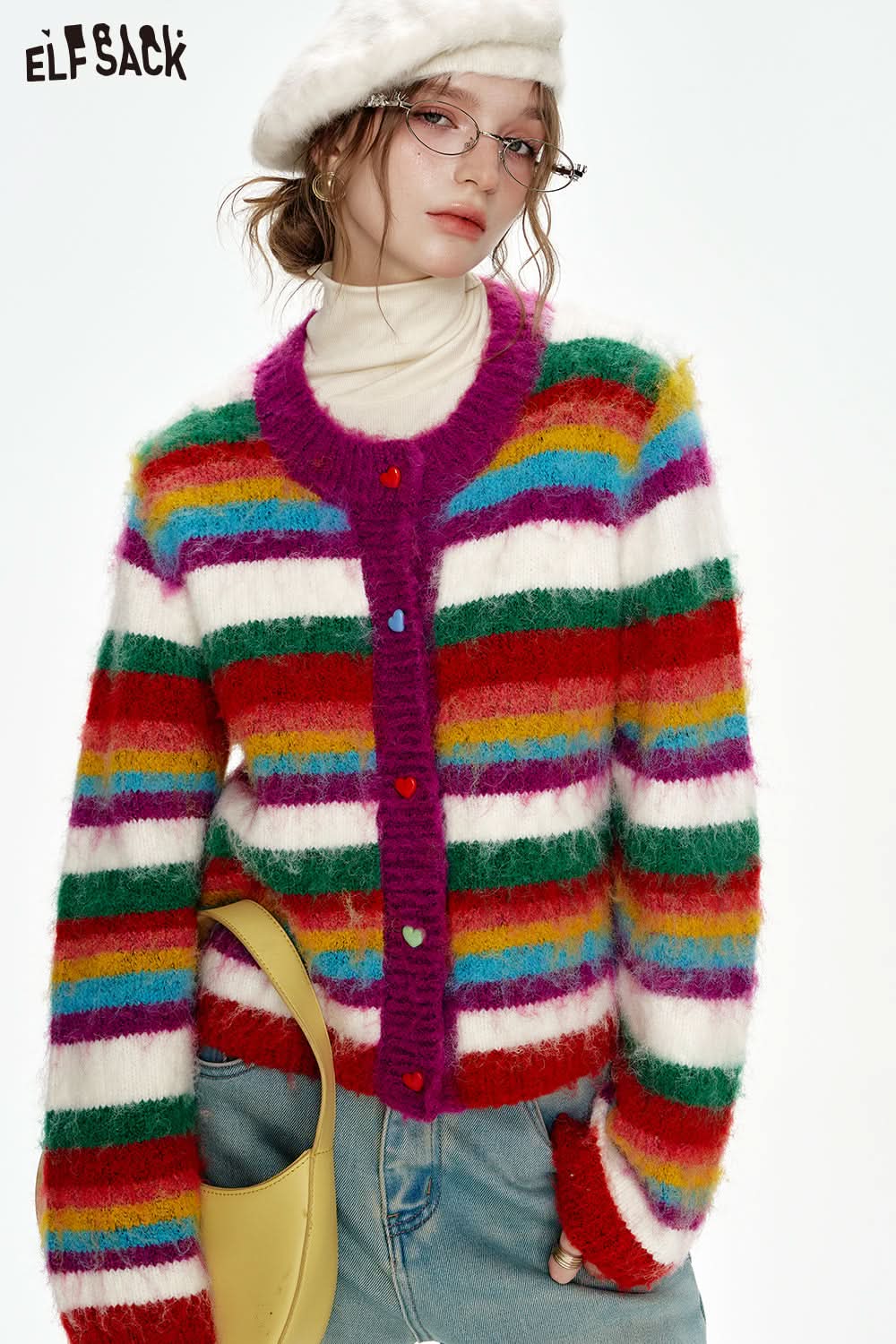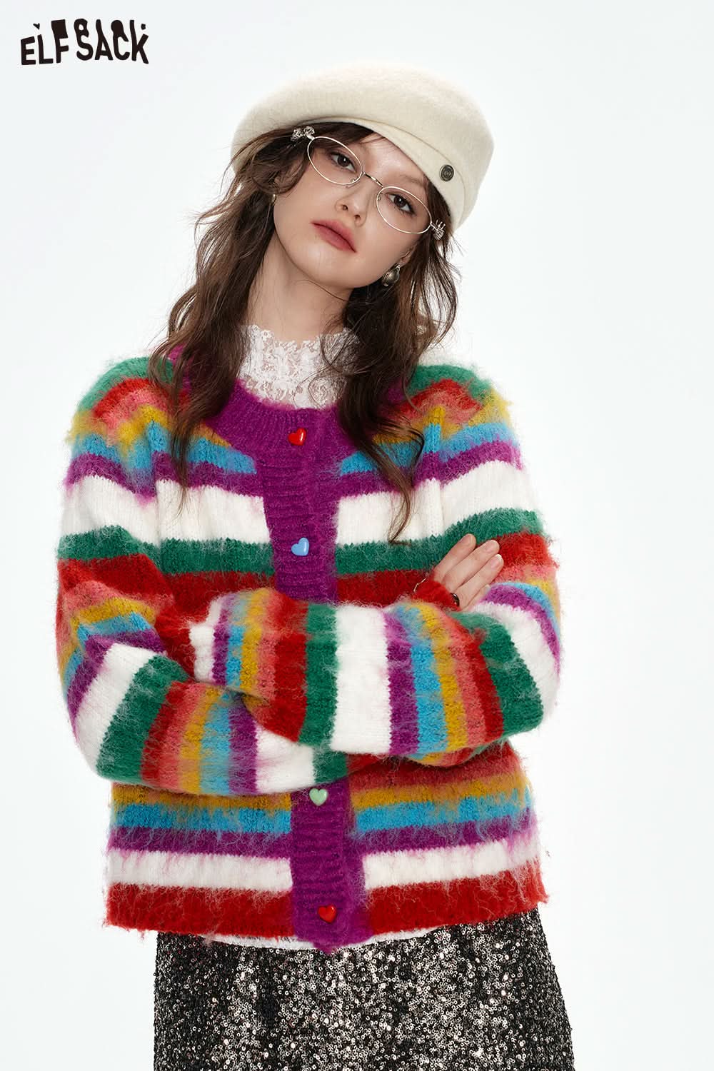 Rainbow striped sweater cardigan women Christmas outfit