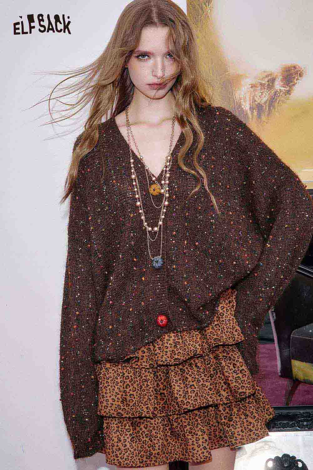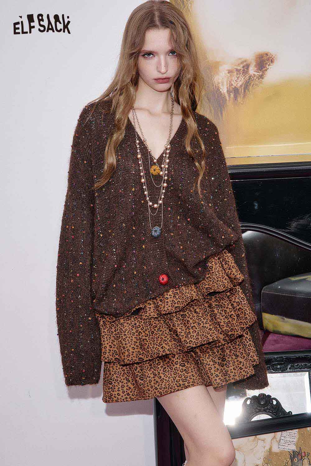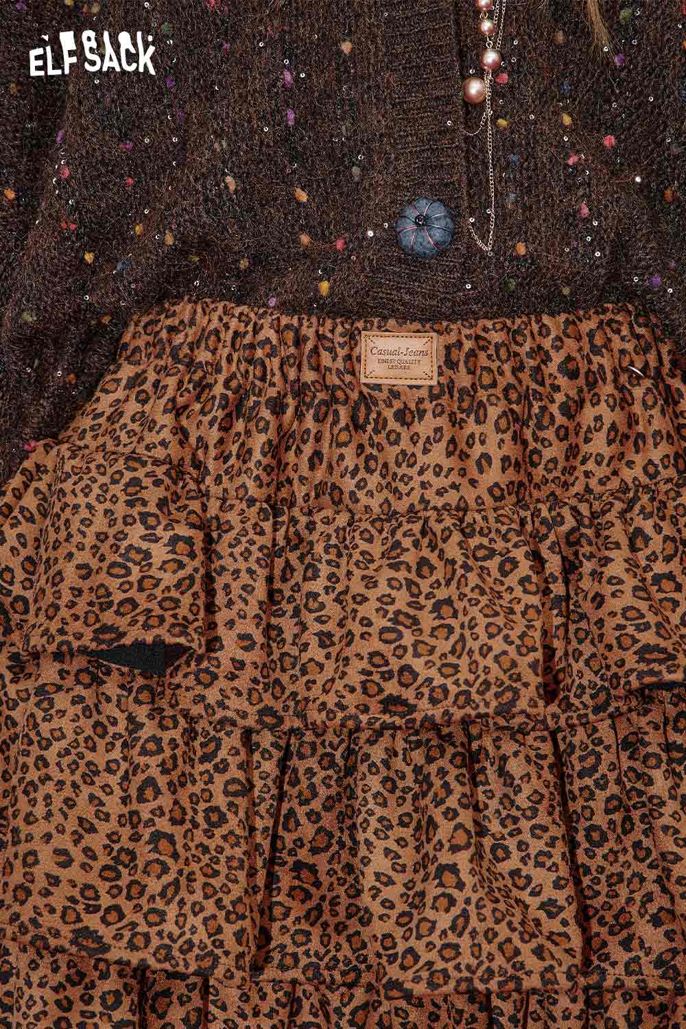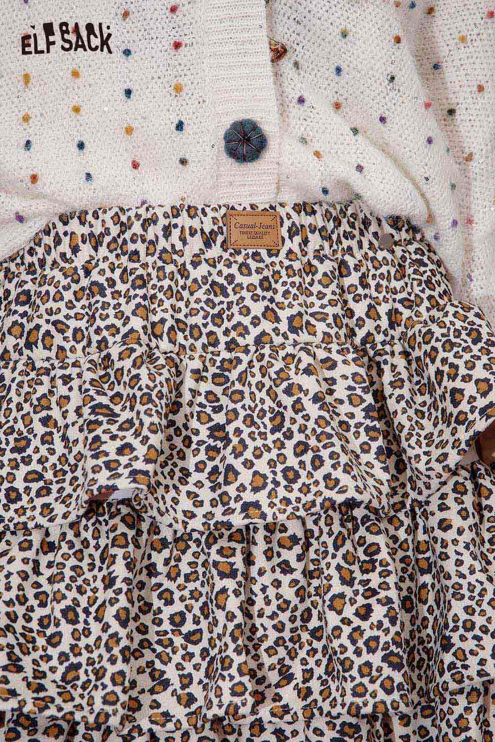 Polyester Blend Animal Print Pleats Asymmetric Hem Tiered Skirt