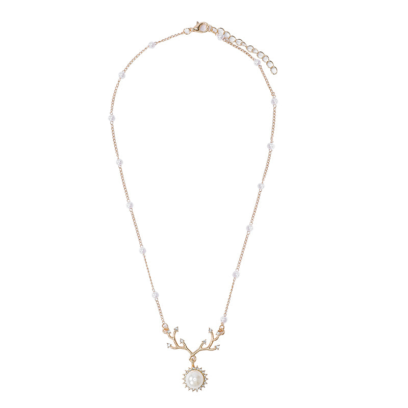 Elegant Golden Deer Antler Pearl Adjustable Necklace