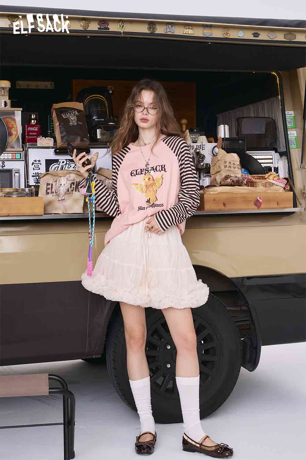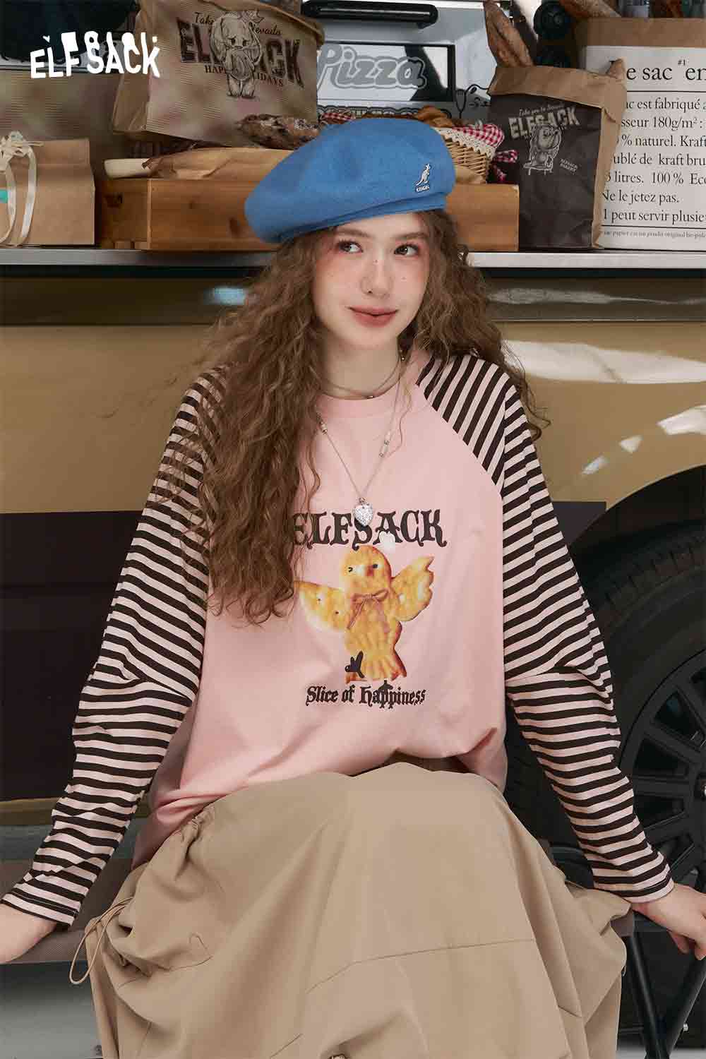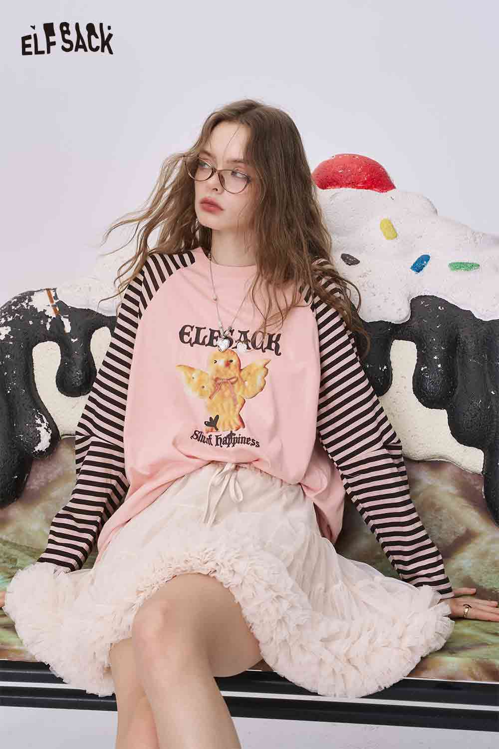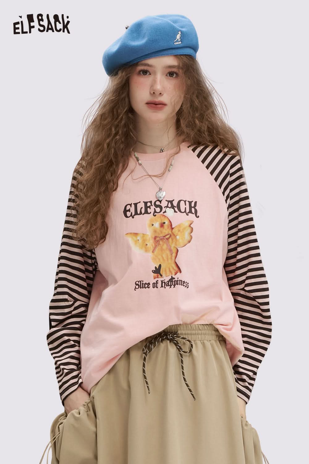 "Good Mood Dog" Striped Raglan Sleeve T-Shirt