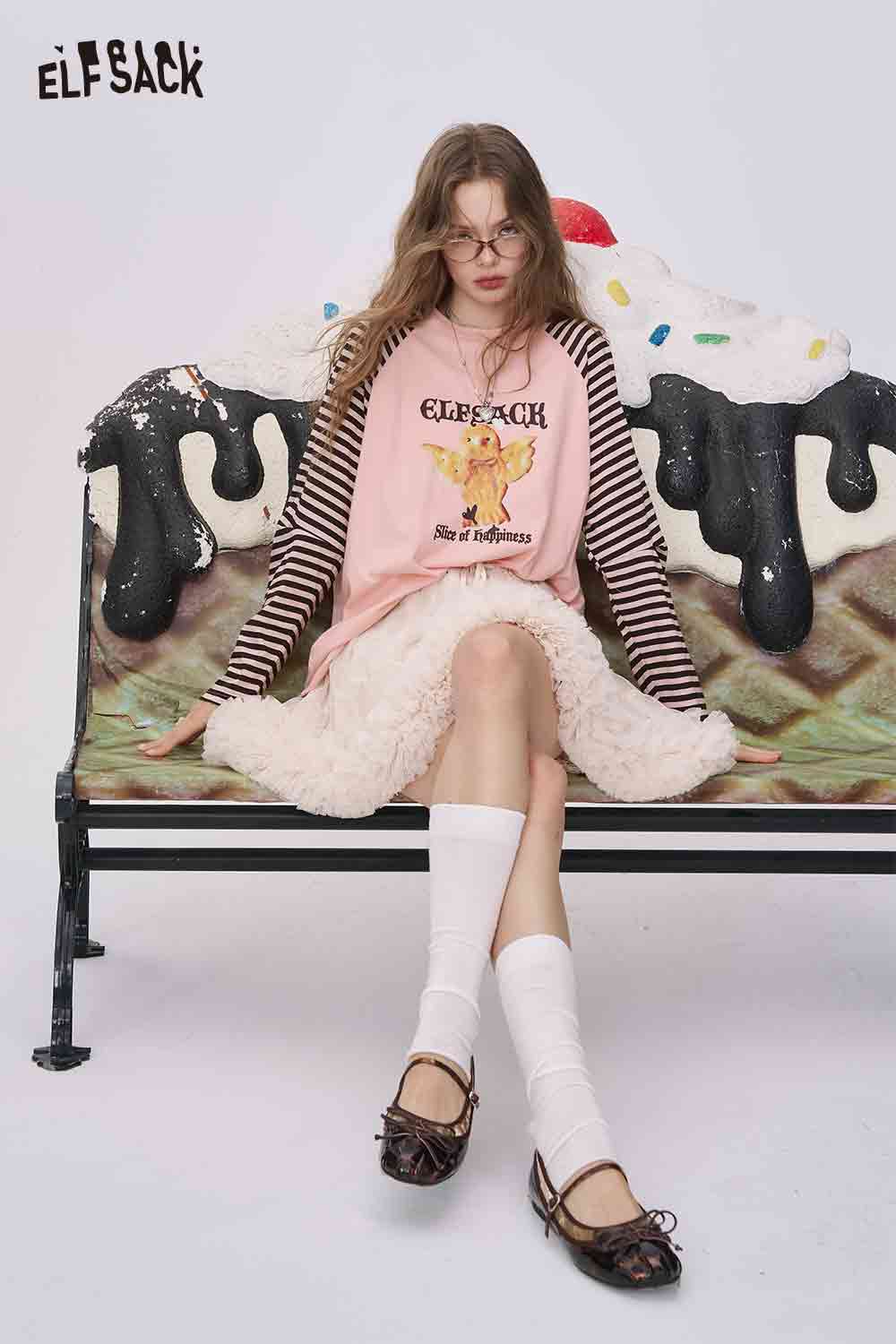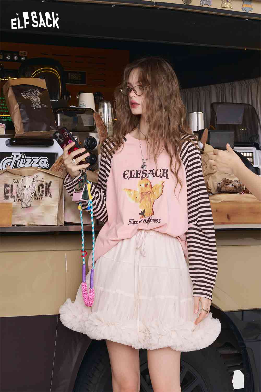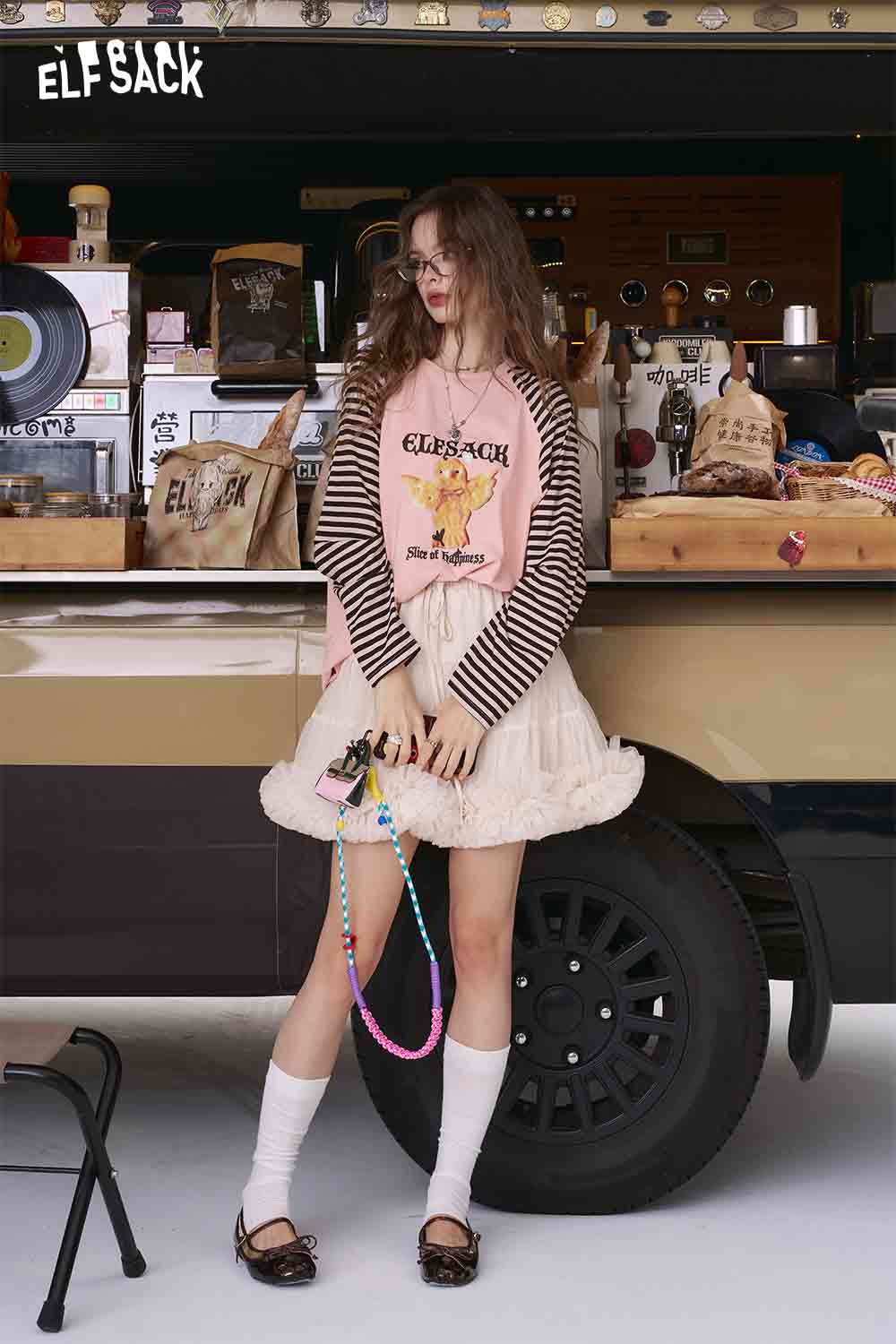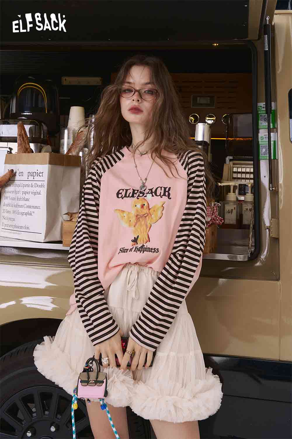 "Good Mood Dog" Striped Raglan Sleeve T-Shirt