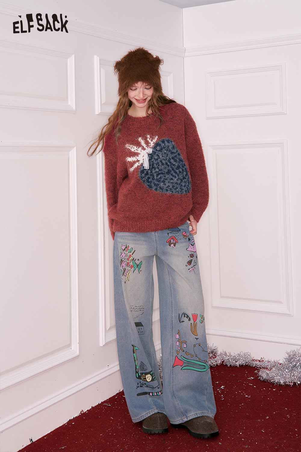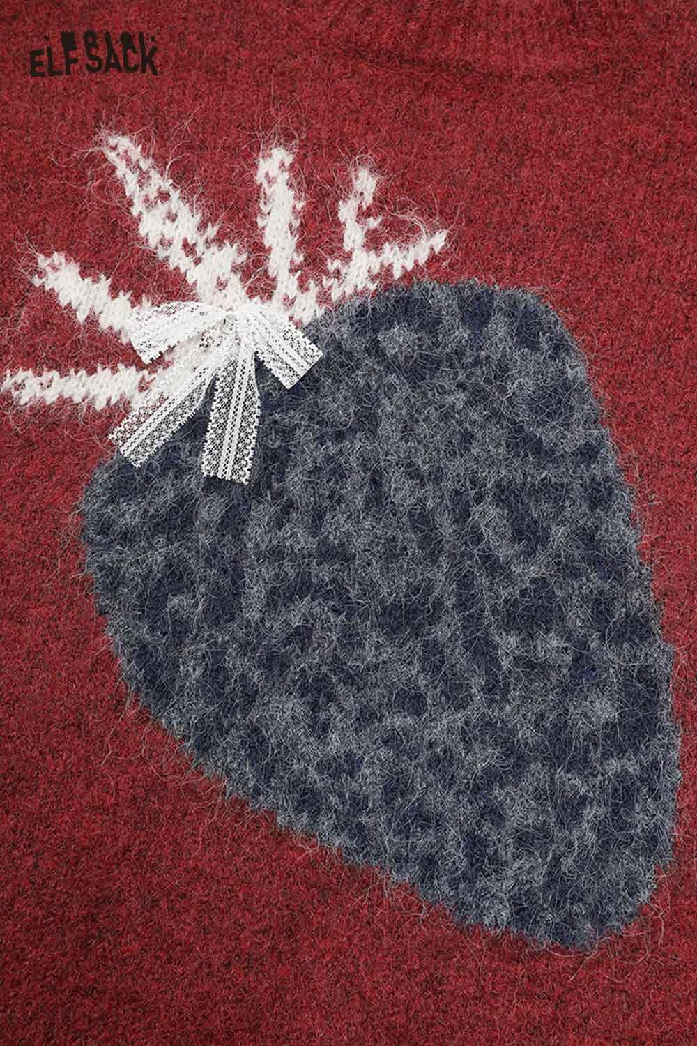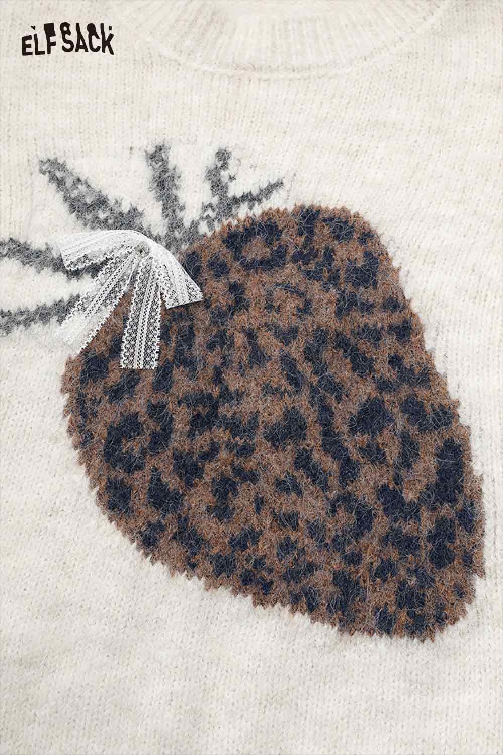 Loose Fruit Graphic Lace Bow 3D Embellishment Round Neck Sweater