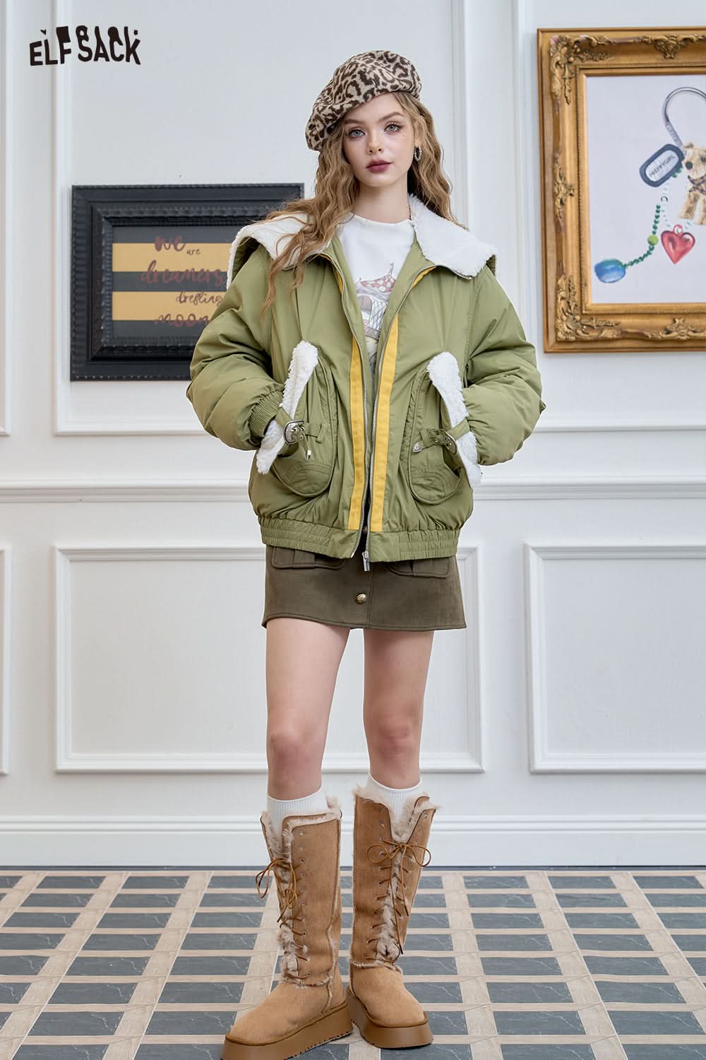 Preppy style lapel green warm thickened coat plush design fashionable warm coat