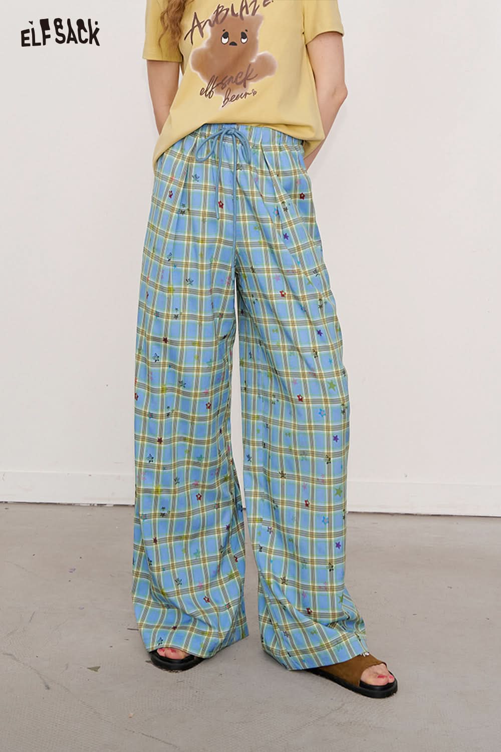 Clash Of Colours Plaid Star Wide Leg Trousers