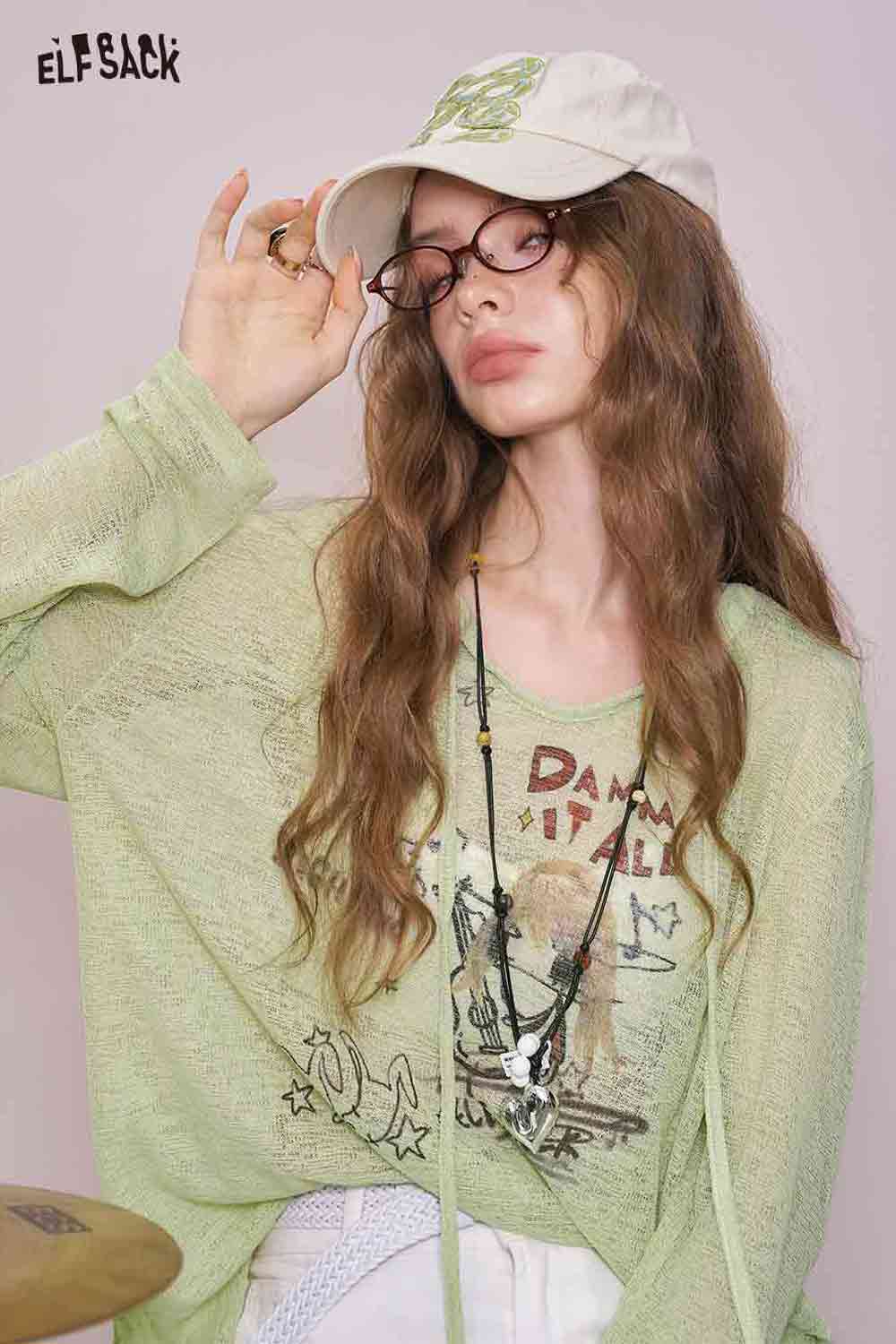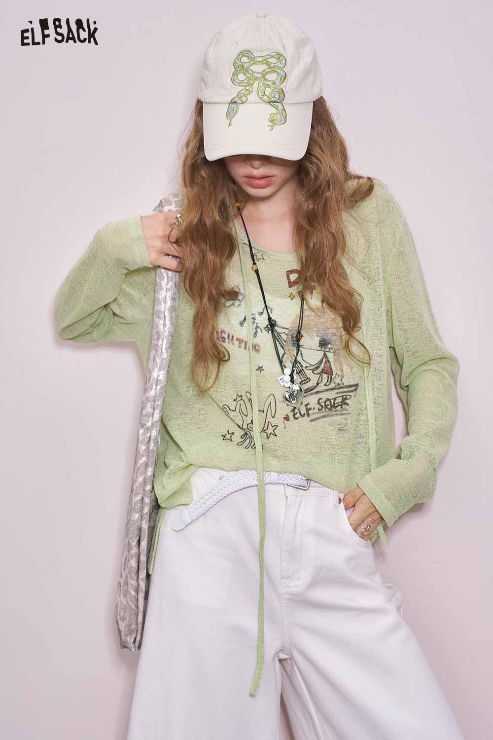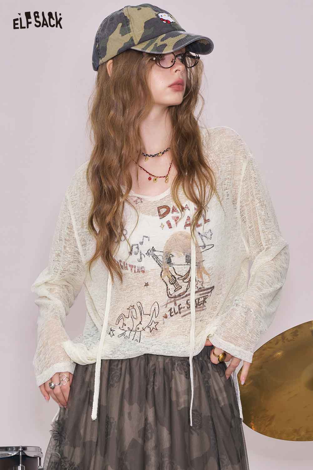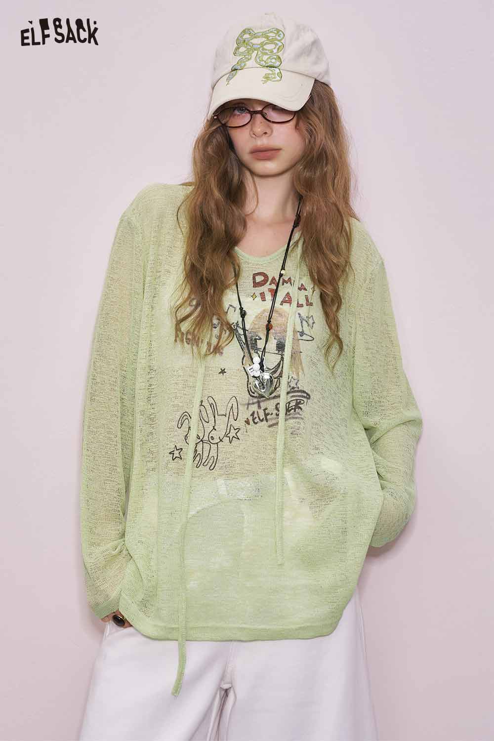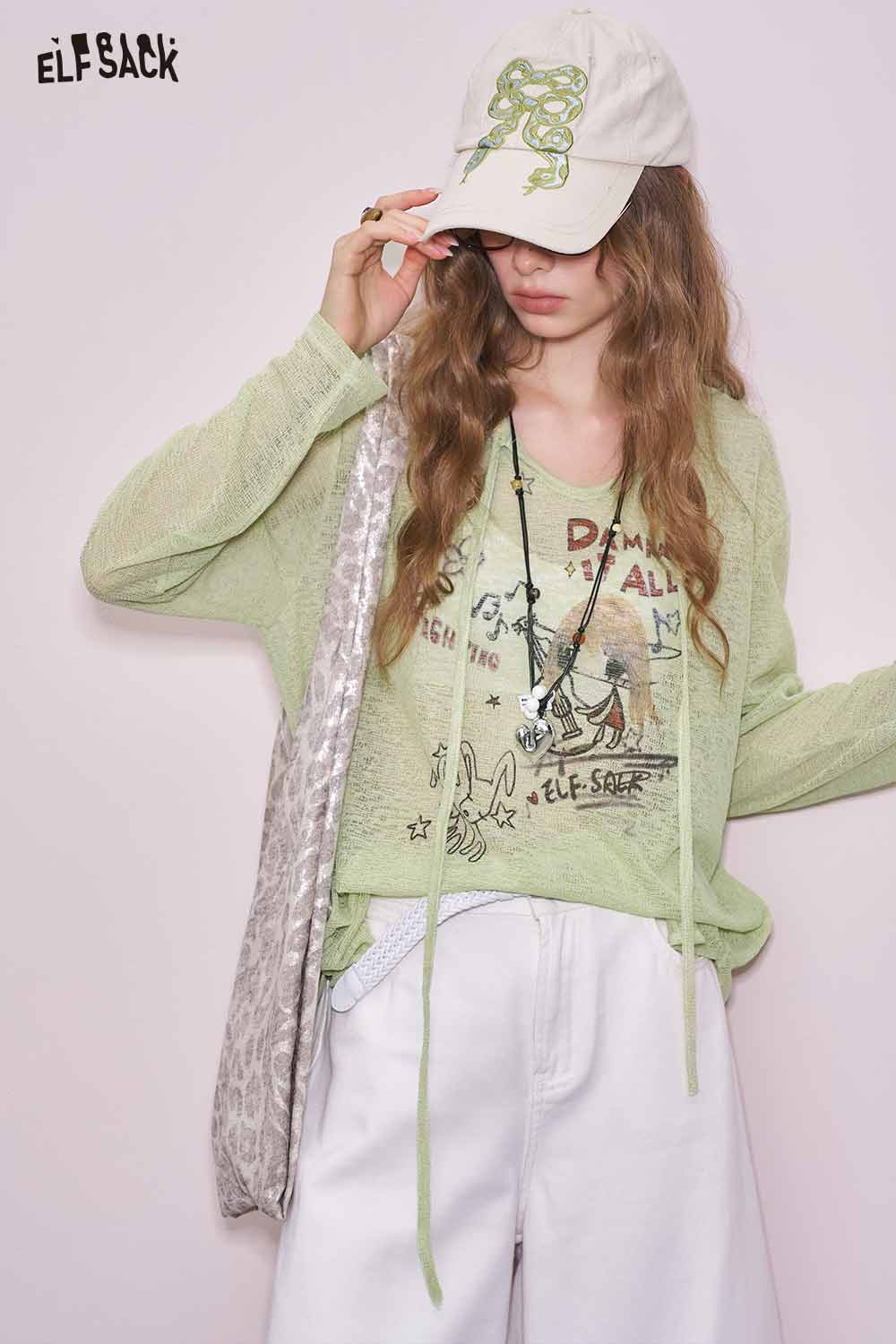 Light Loose Graffiti Print Long-Sleeved Knit Sweater