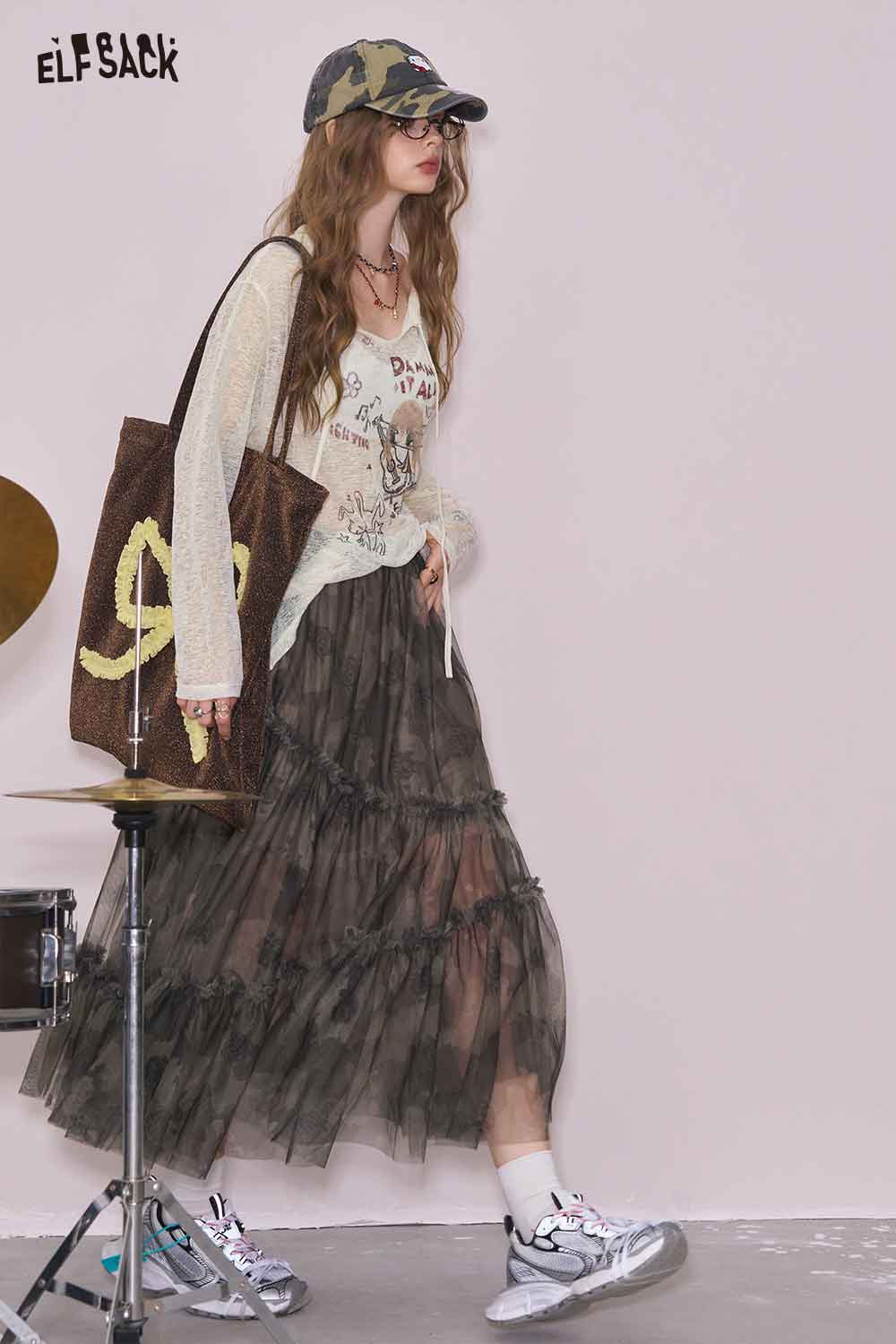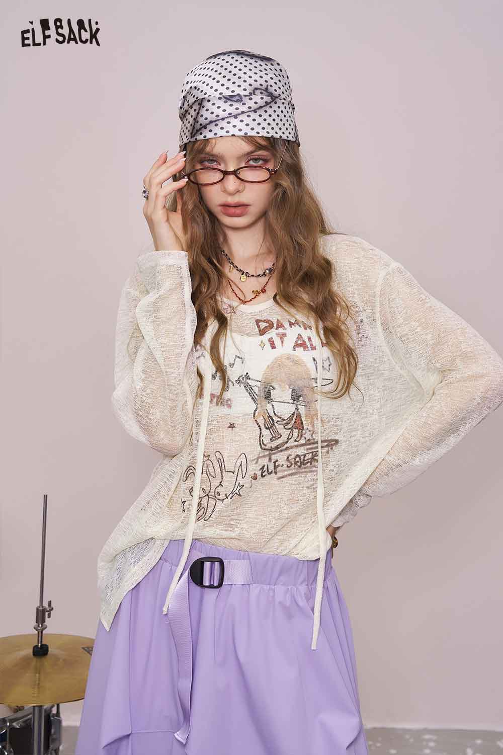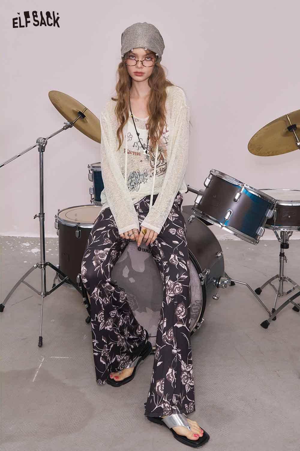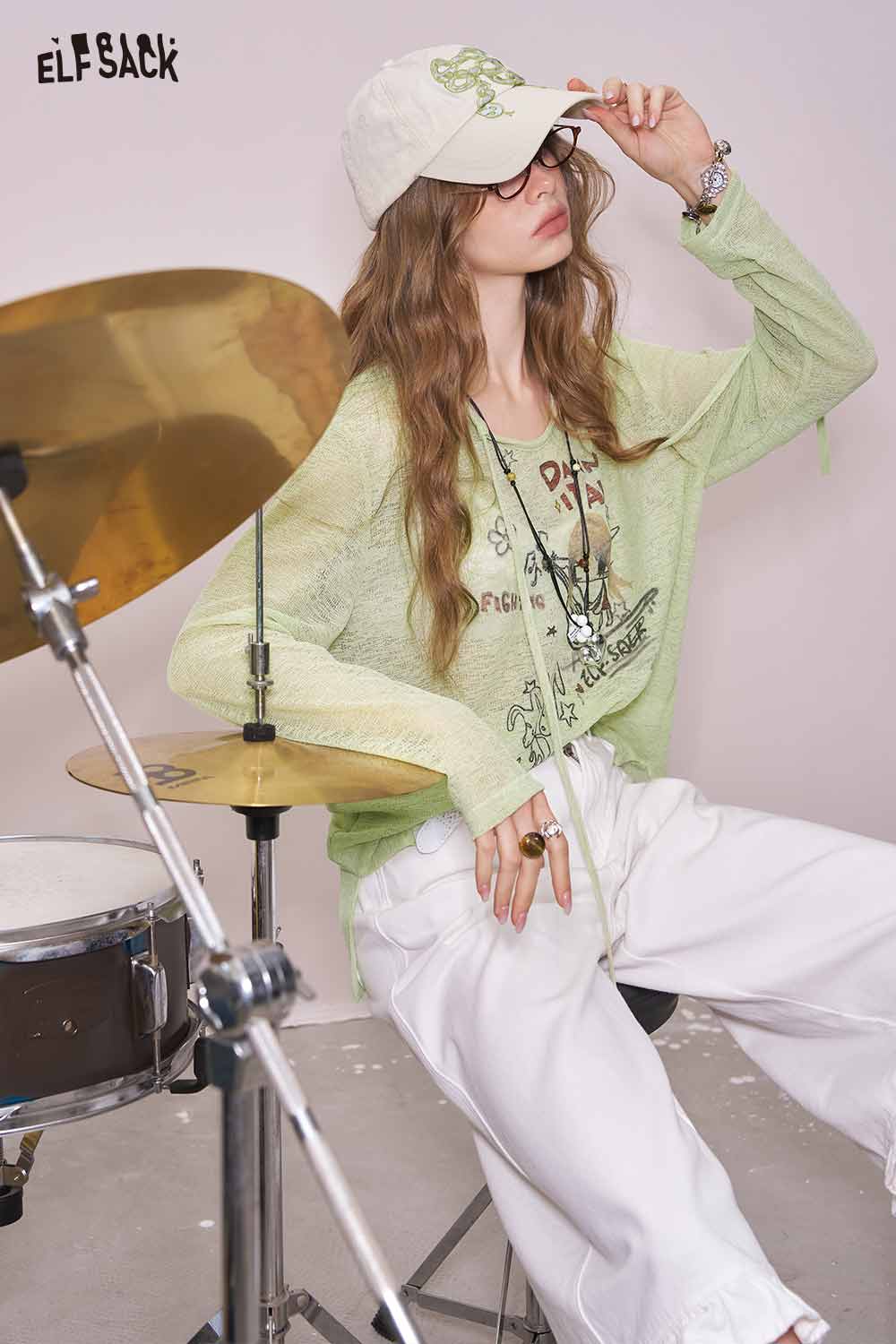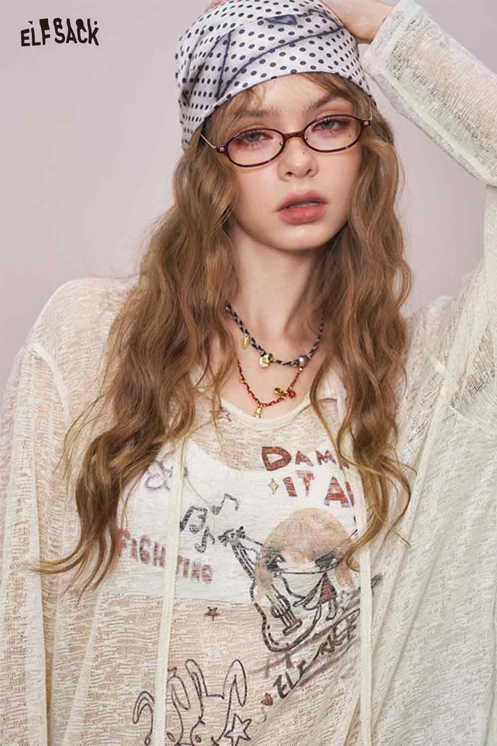Light Loose Graffiti Print Long-Sleeved Knit Sweater
