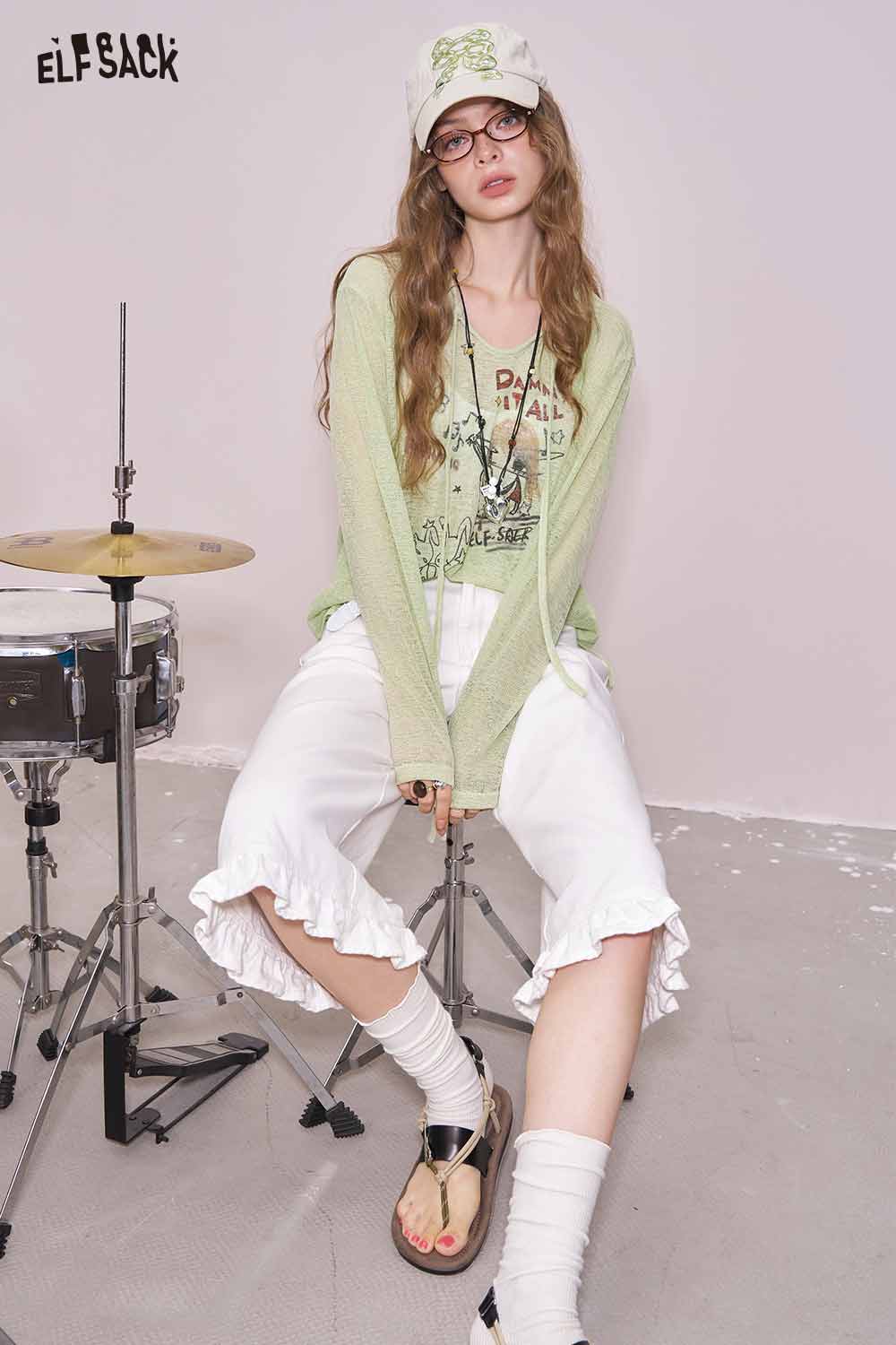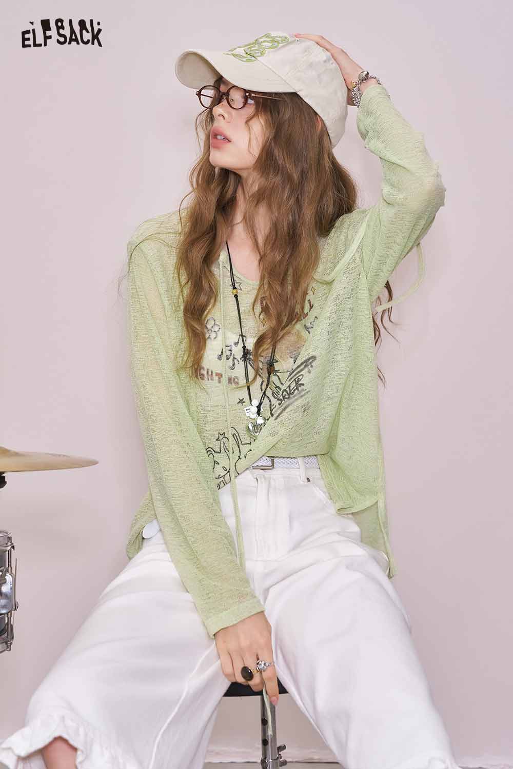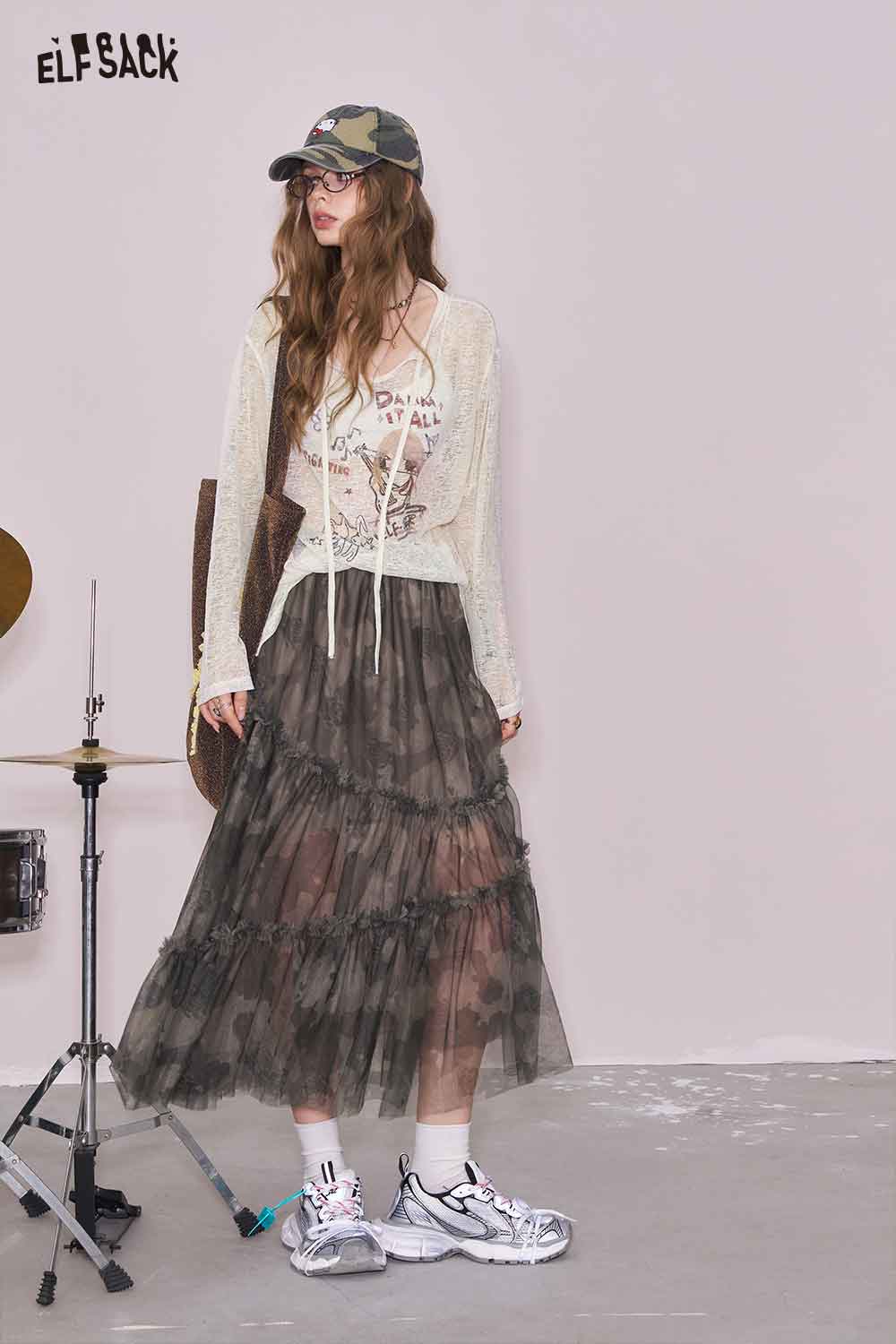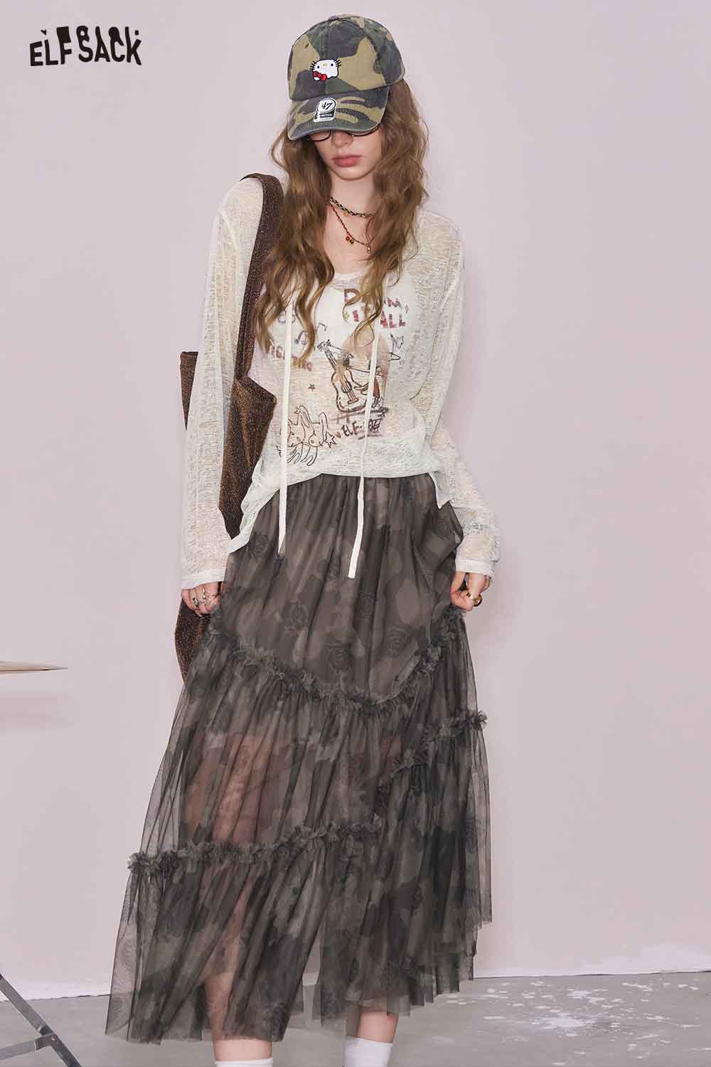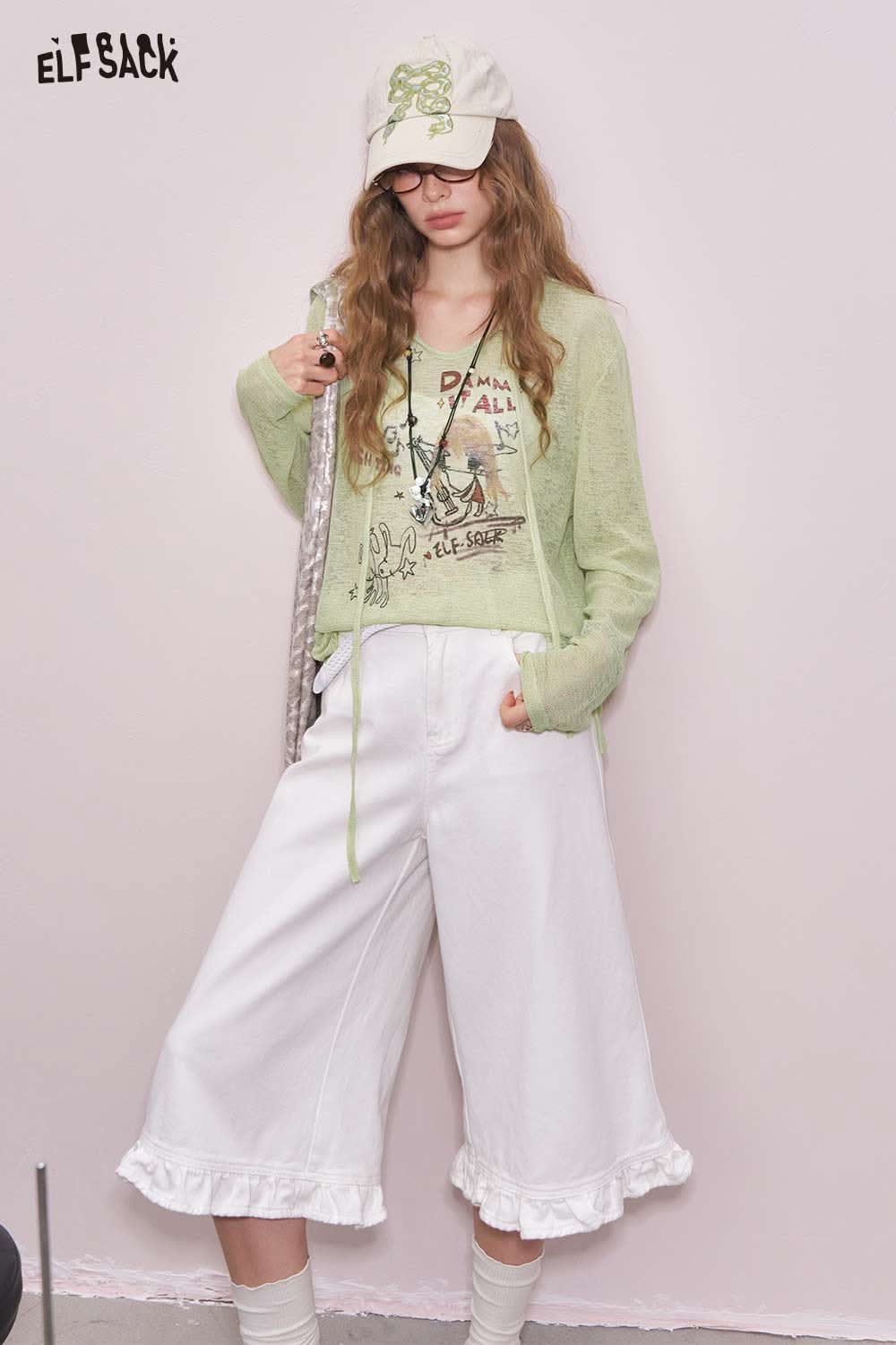 Light Loose Graffiti Print Long-Sleeved Knit Sweater