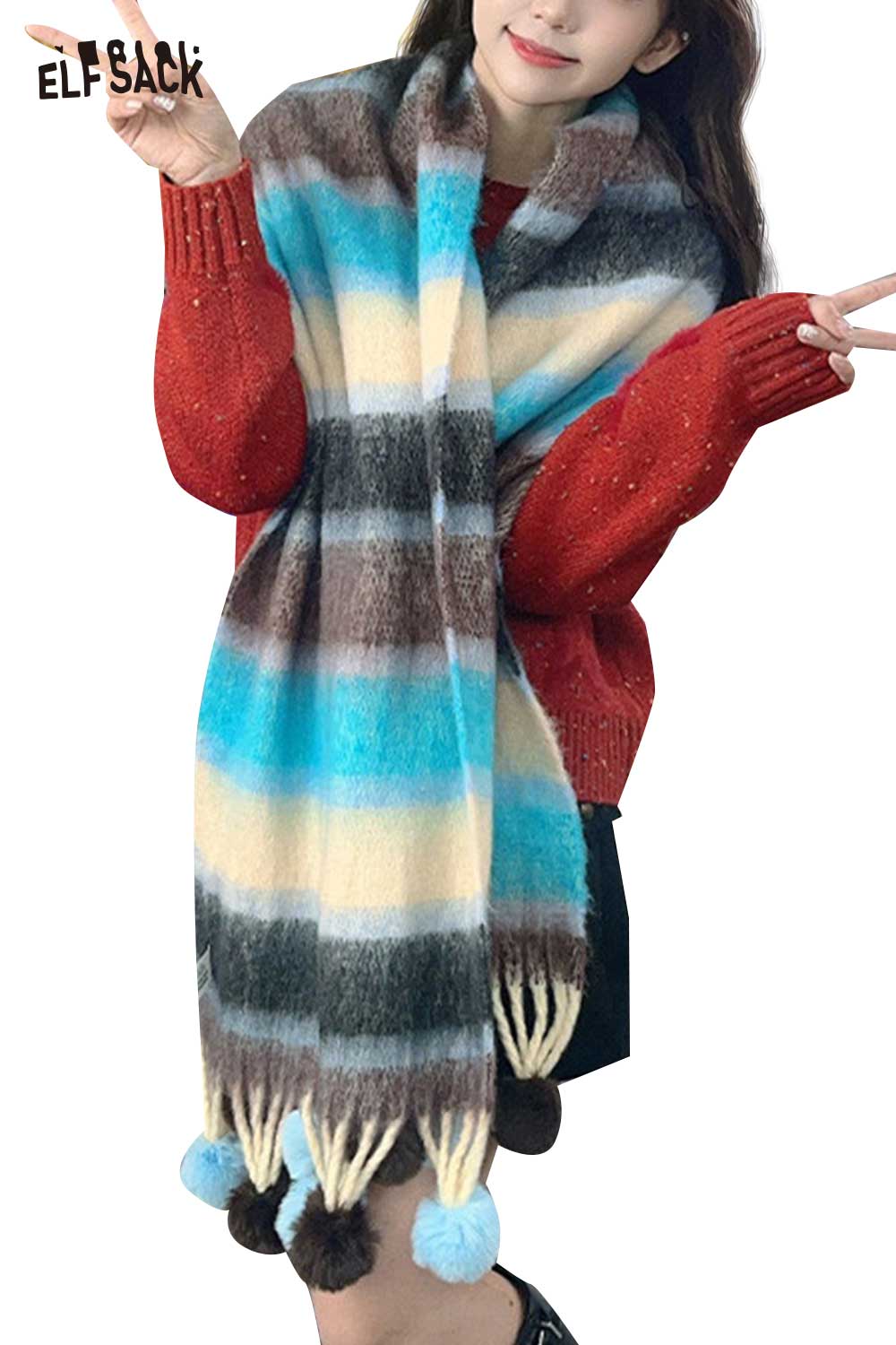 Dopamine Rainbow Plaid Versatile Warm Scarf