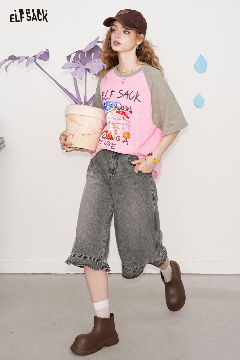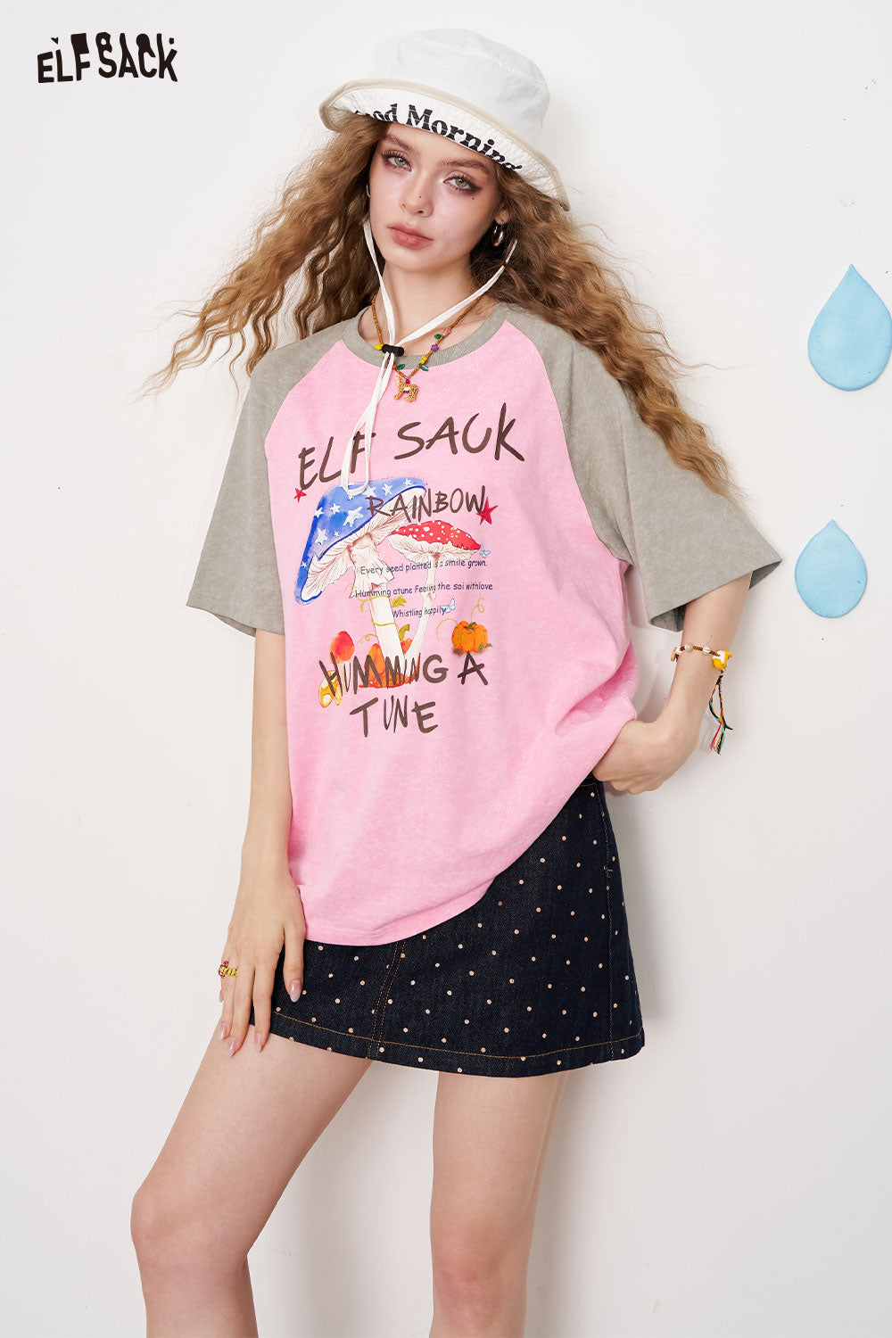 Insert Shoulder Collision Colour Printing Short Sleeve T-Shirt