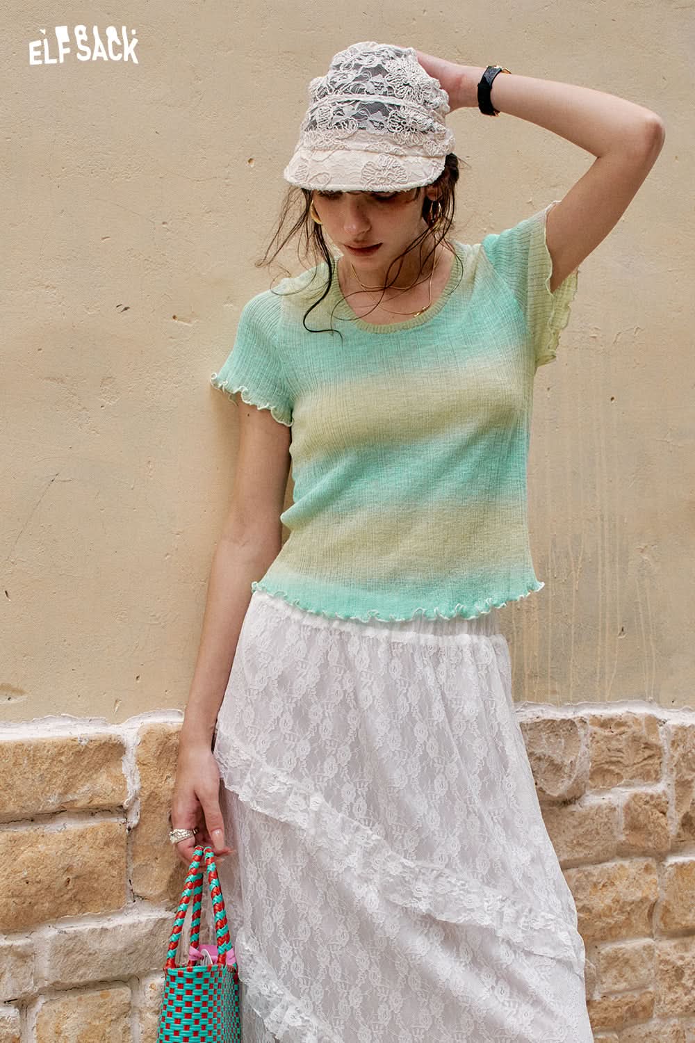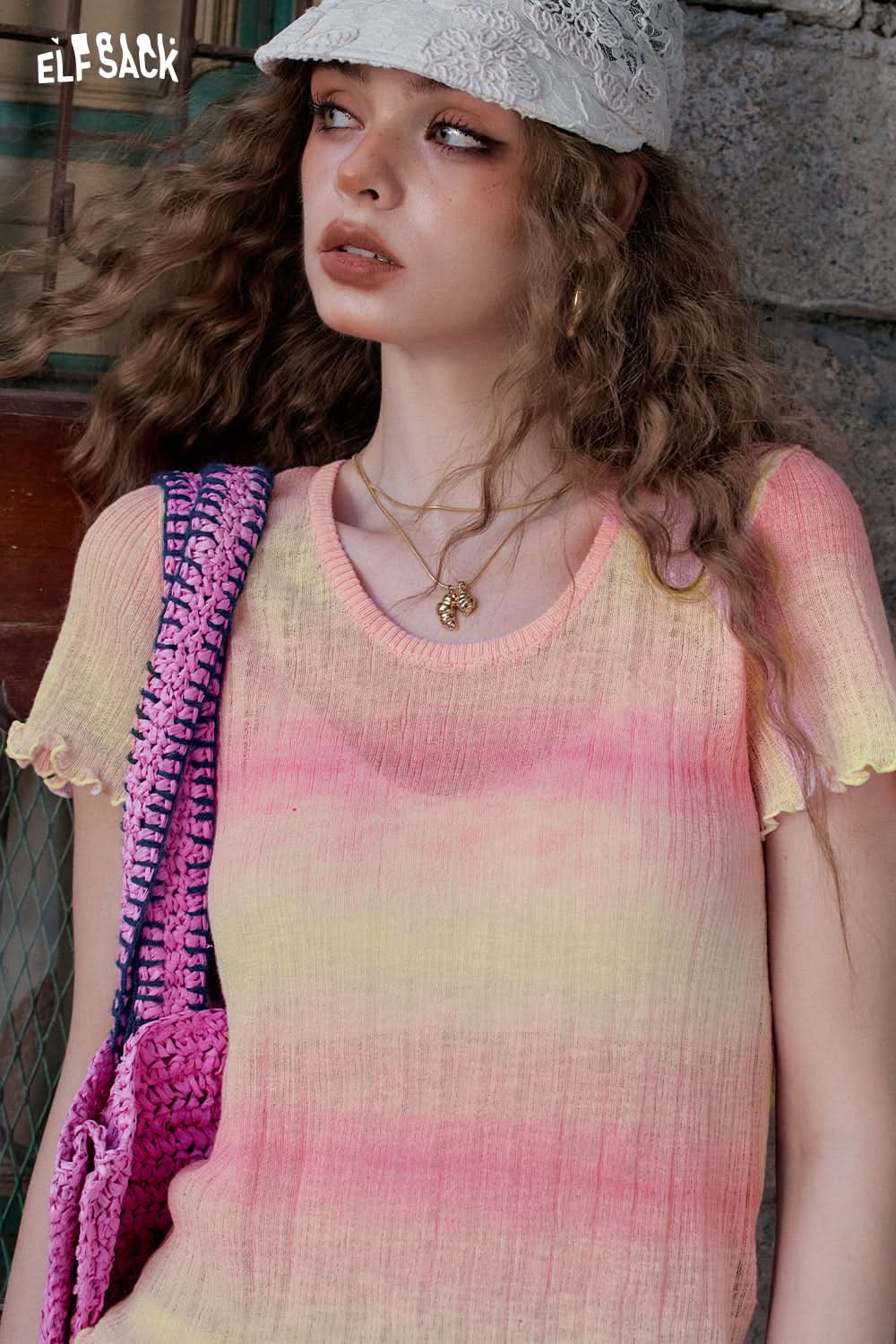 Fungus Edge Round Neck Short Sleeve Casual Knitted Sweater