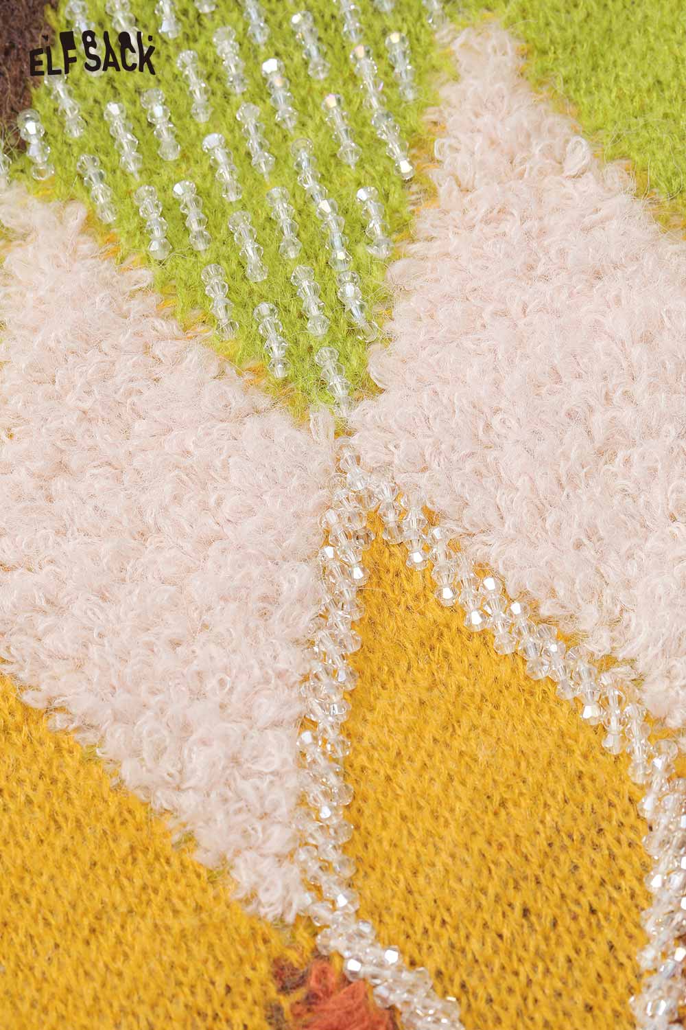 Casual Loose Cropped Color Diamond Pattern Sweater