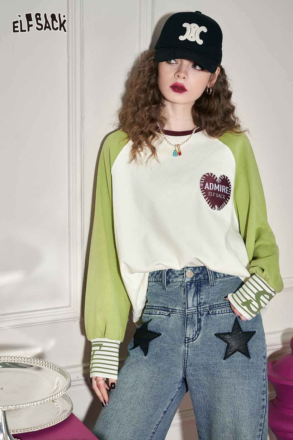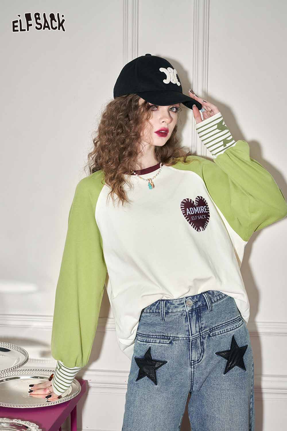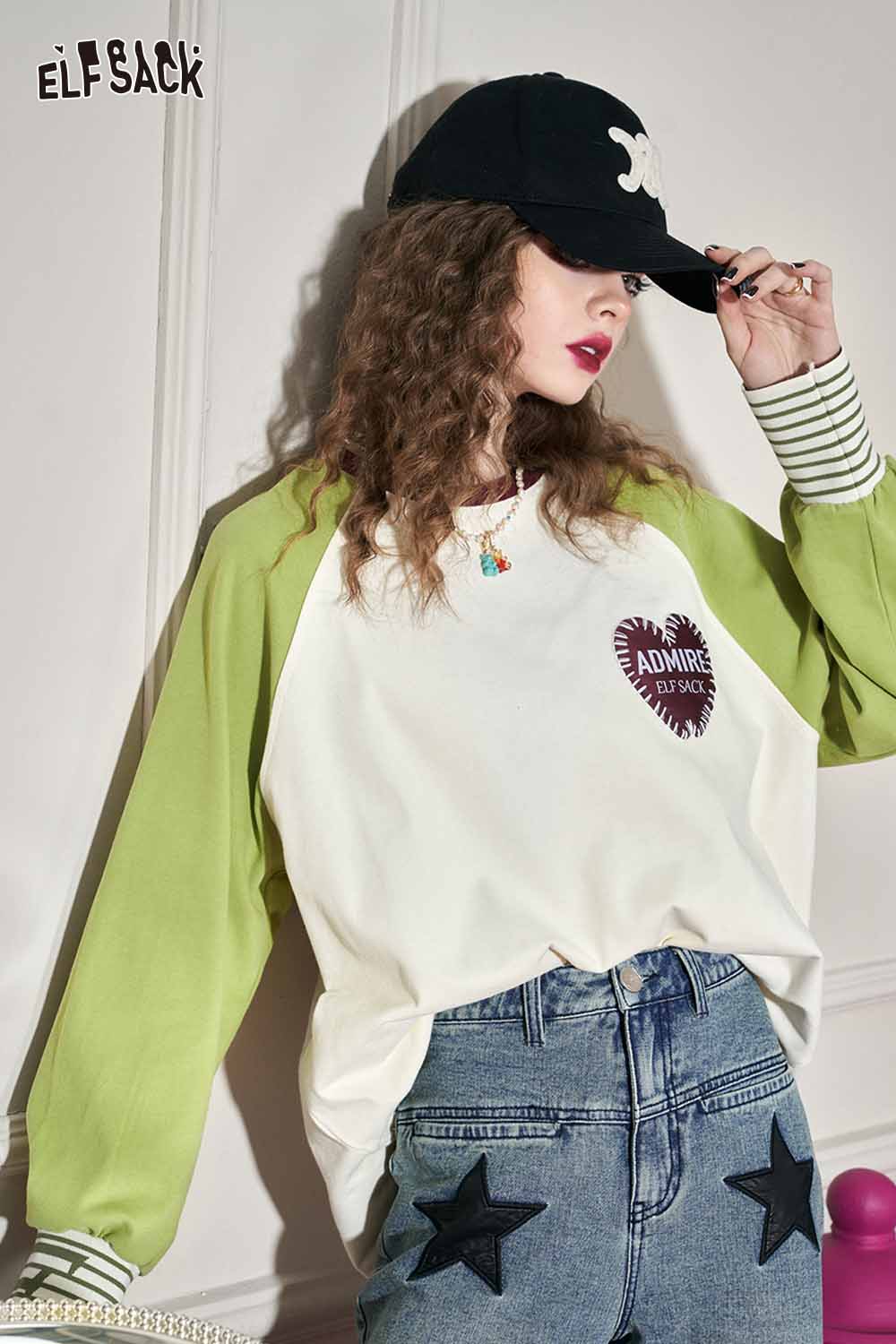 Loose Color Block Patchwork Raglan Sleeve Round Neck Tshirt
