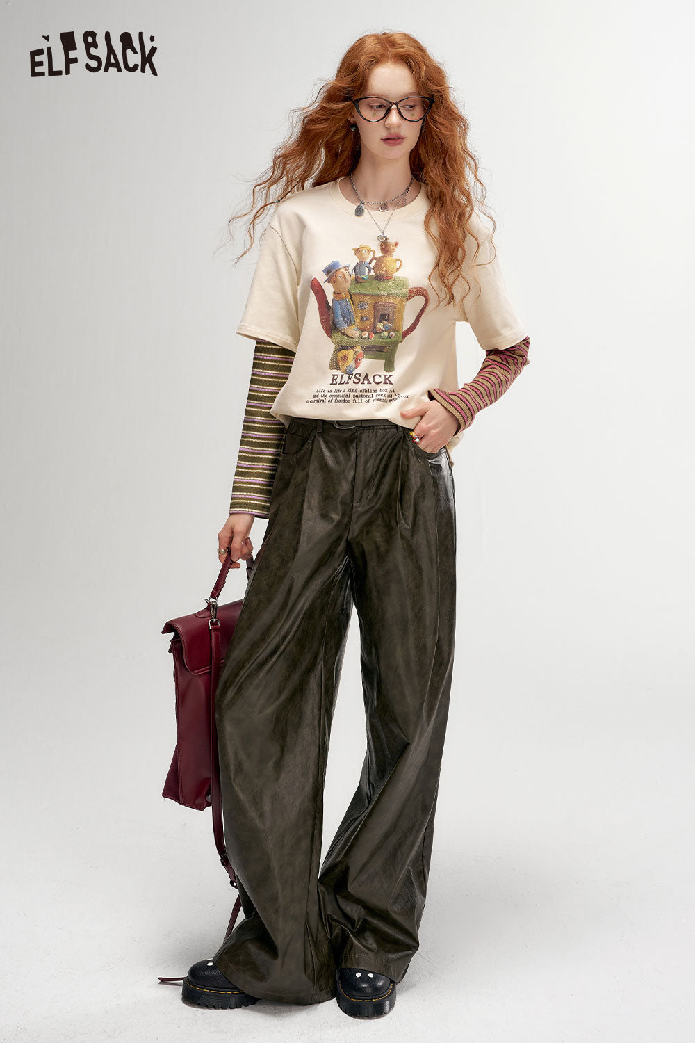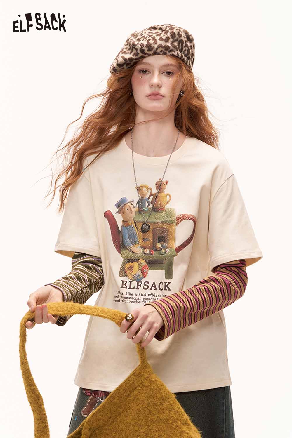 Loose Fake Two Piece Color Block Stripe Patchwork Tshirt