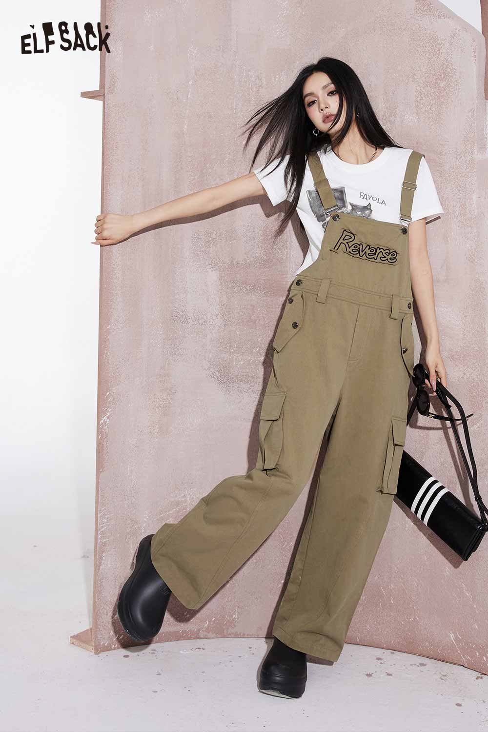 Mallard Color Utility Jumpsuit Wide Leg Pants