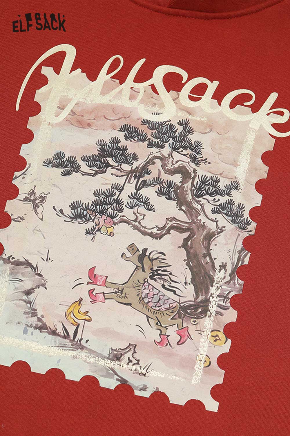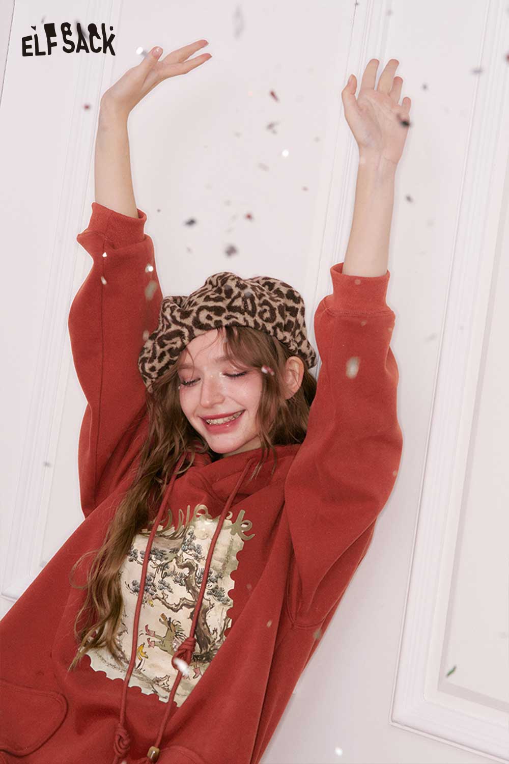 Minimalist Casual Loose Graphic Hooded Sweatshirt