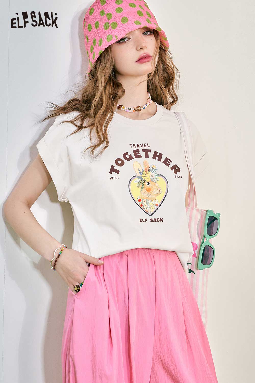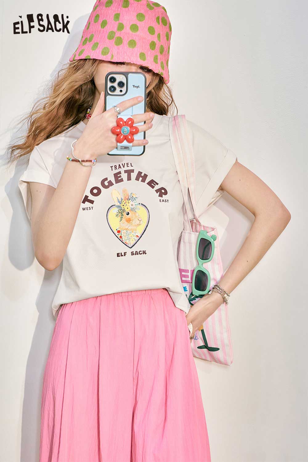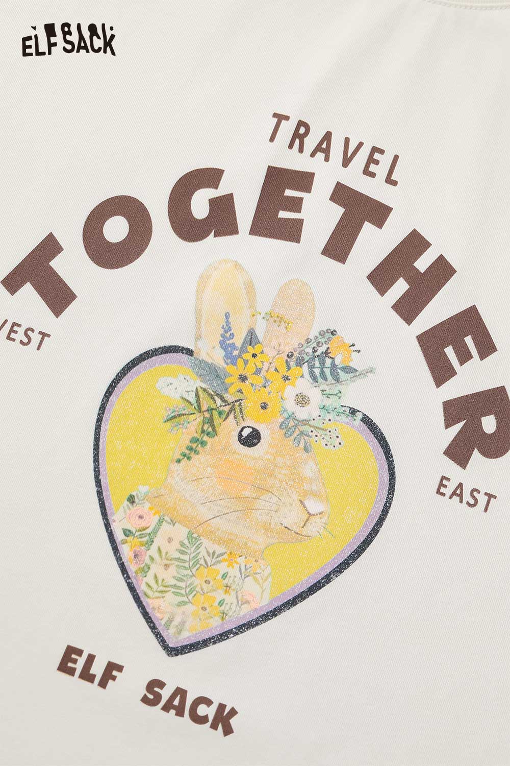 Soft Cute Solid Letter Cartoon Rabbit Graphic Short Sleeve Tshirt