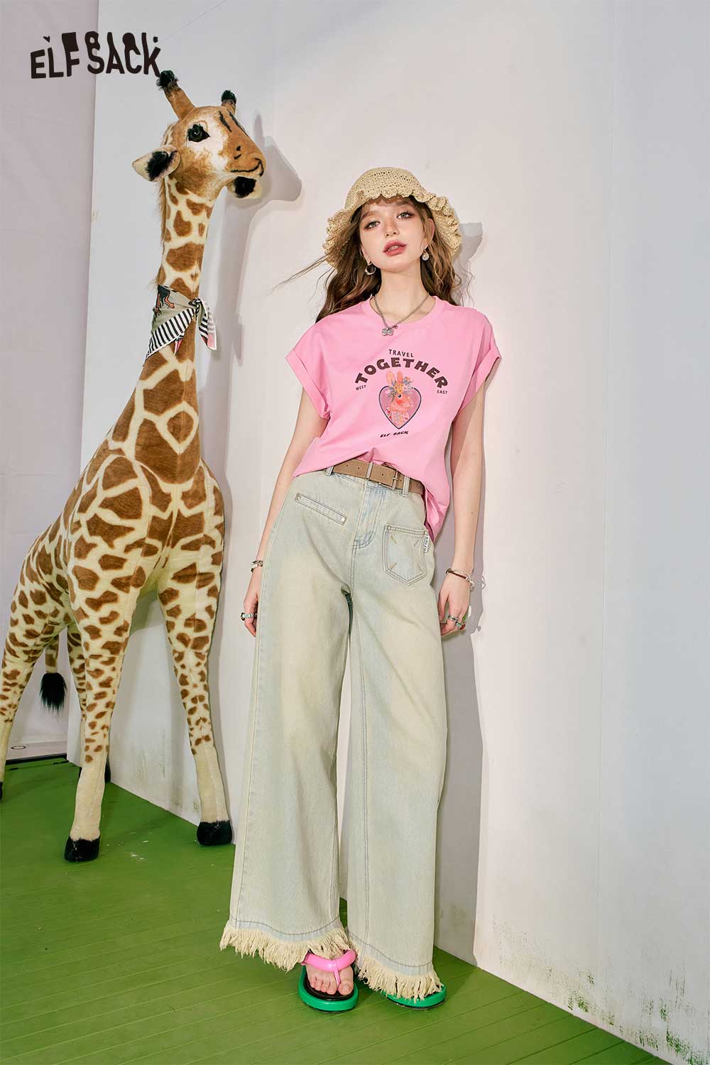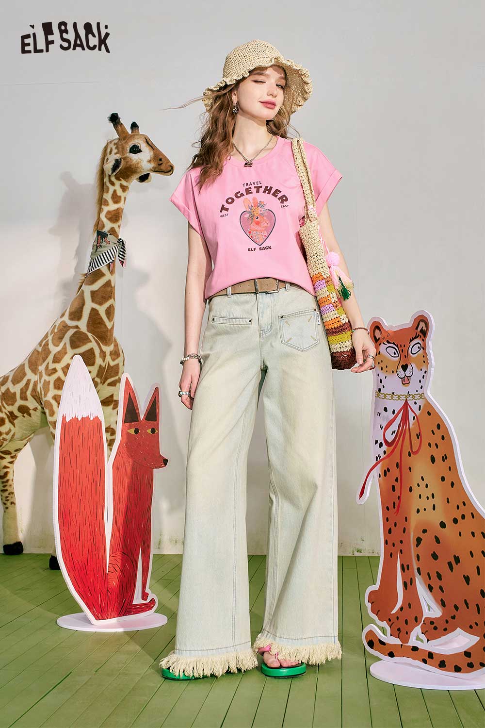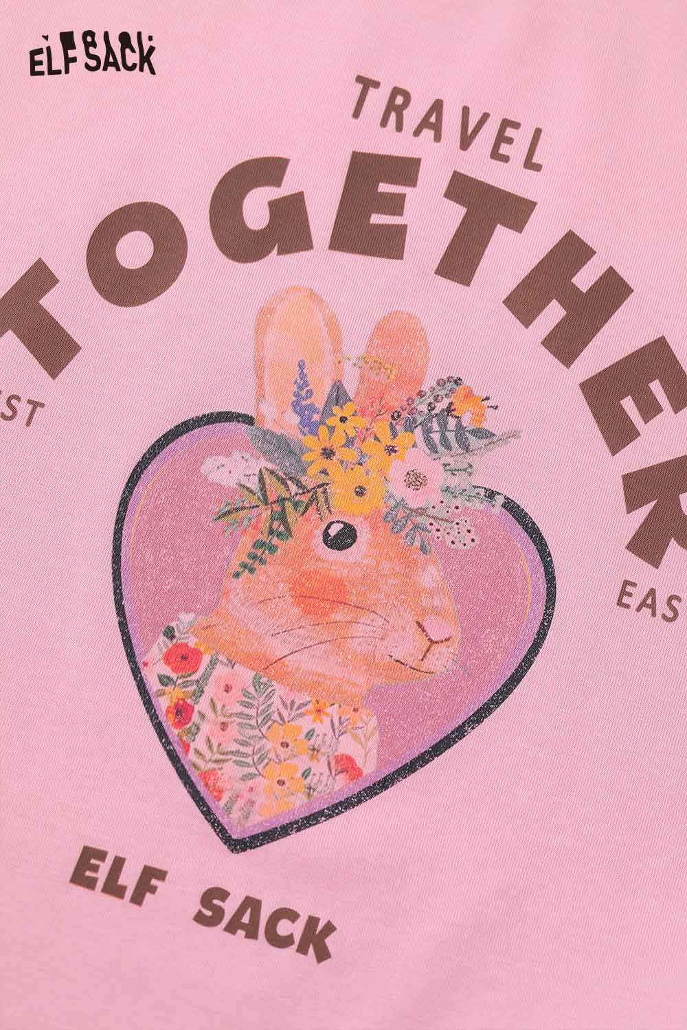 Soft Cute Solid Letter Cartoon Rabbit Graphic Short Sleeve Tshirt