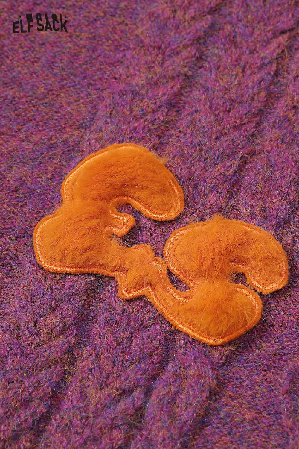Soft Patchwork Animal Letter Graphic Stripe Cuff Round Neck Sweater