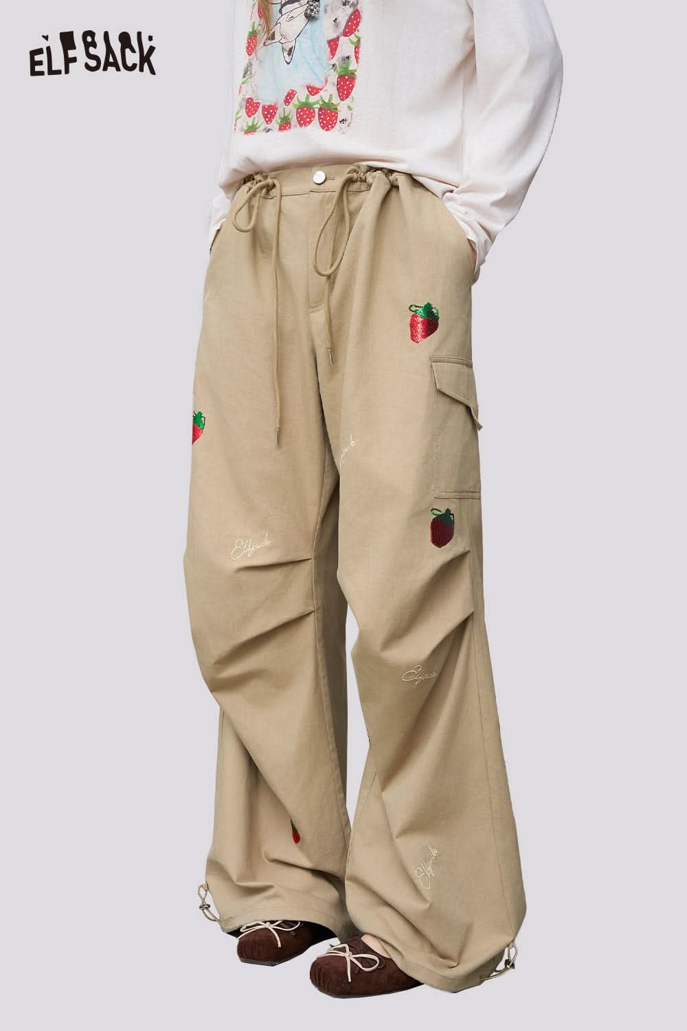 Soft Strawberry Stitch Detail Adjustable Drawcord Utility Pants