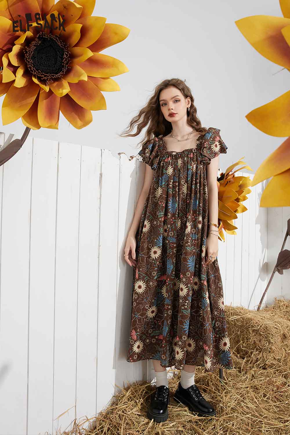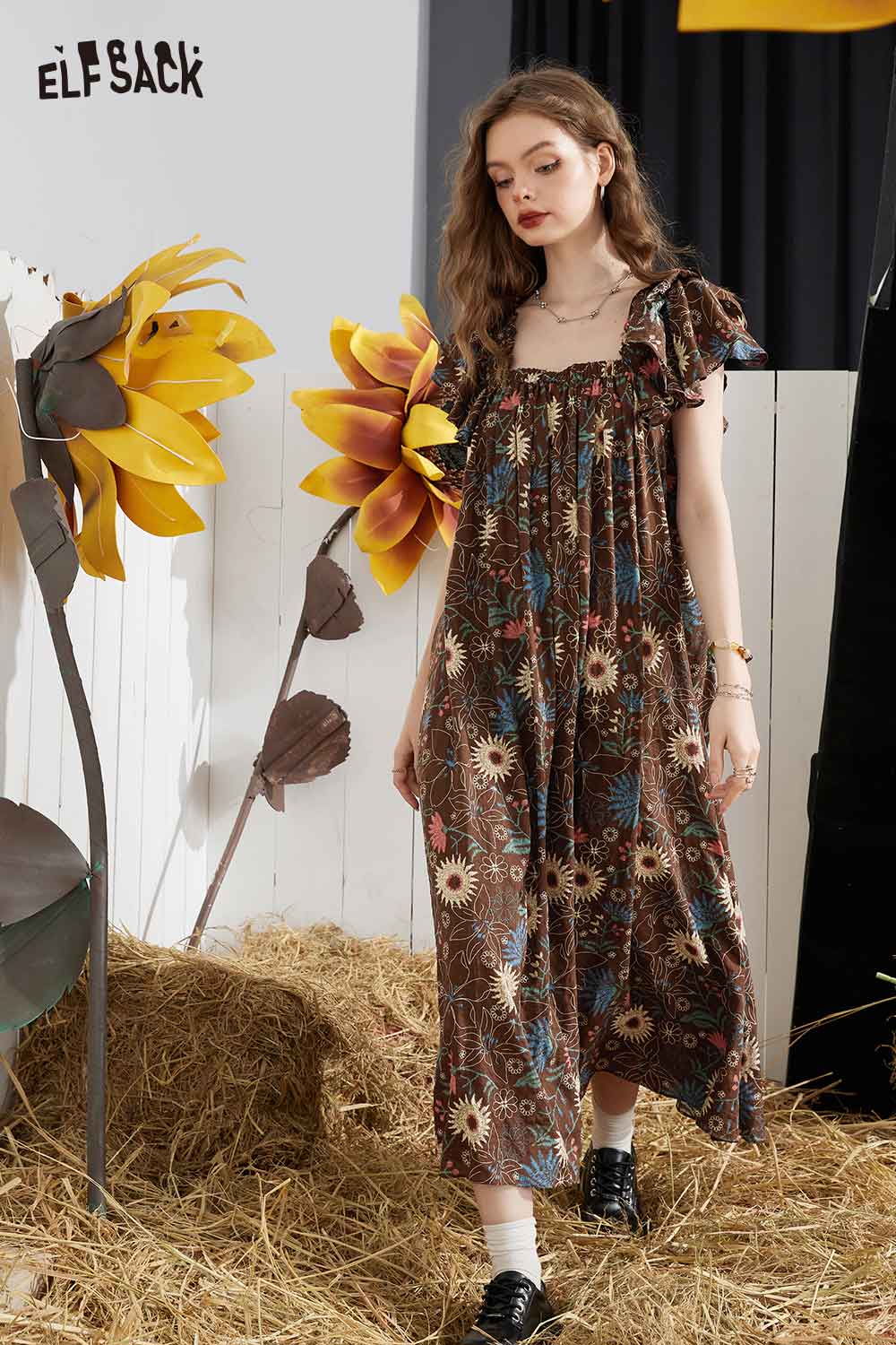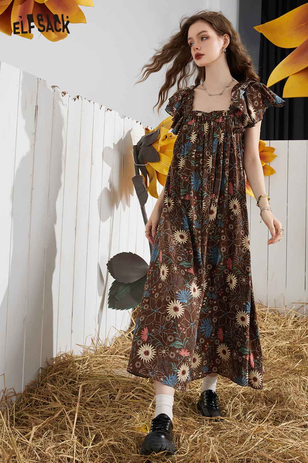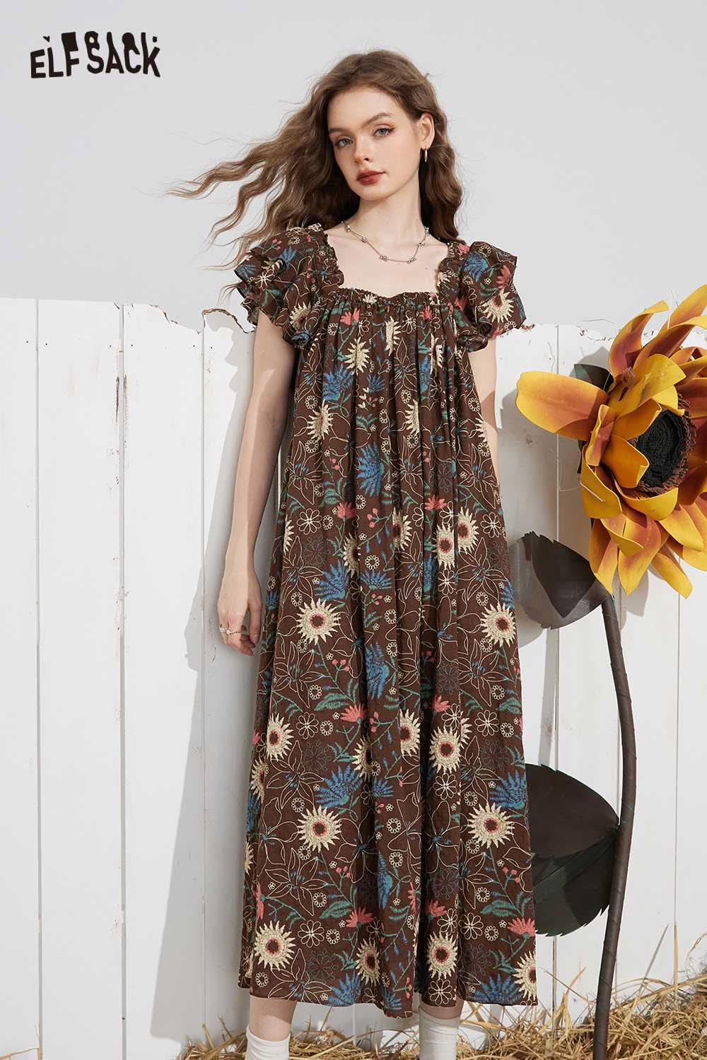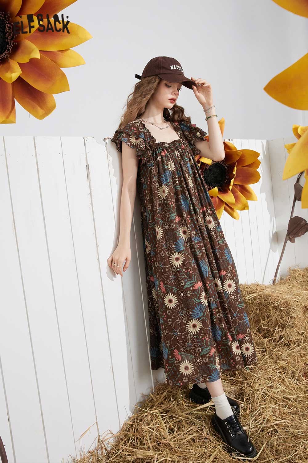 Soft French Floral Ruffle Sleeve Loose A-Line Dress