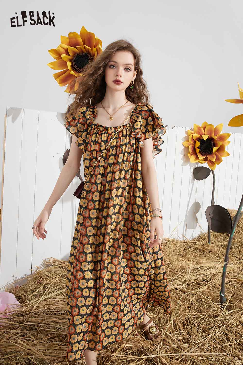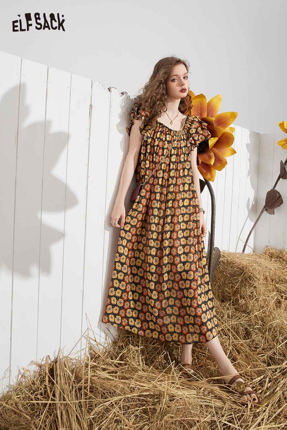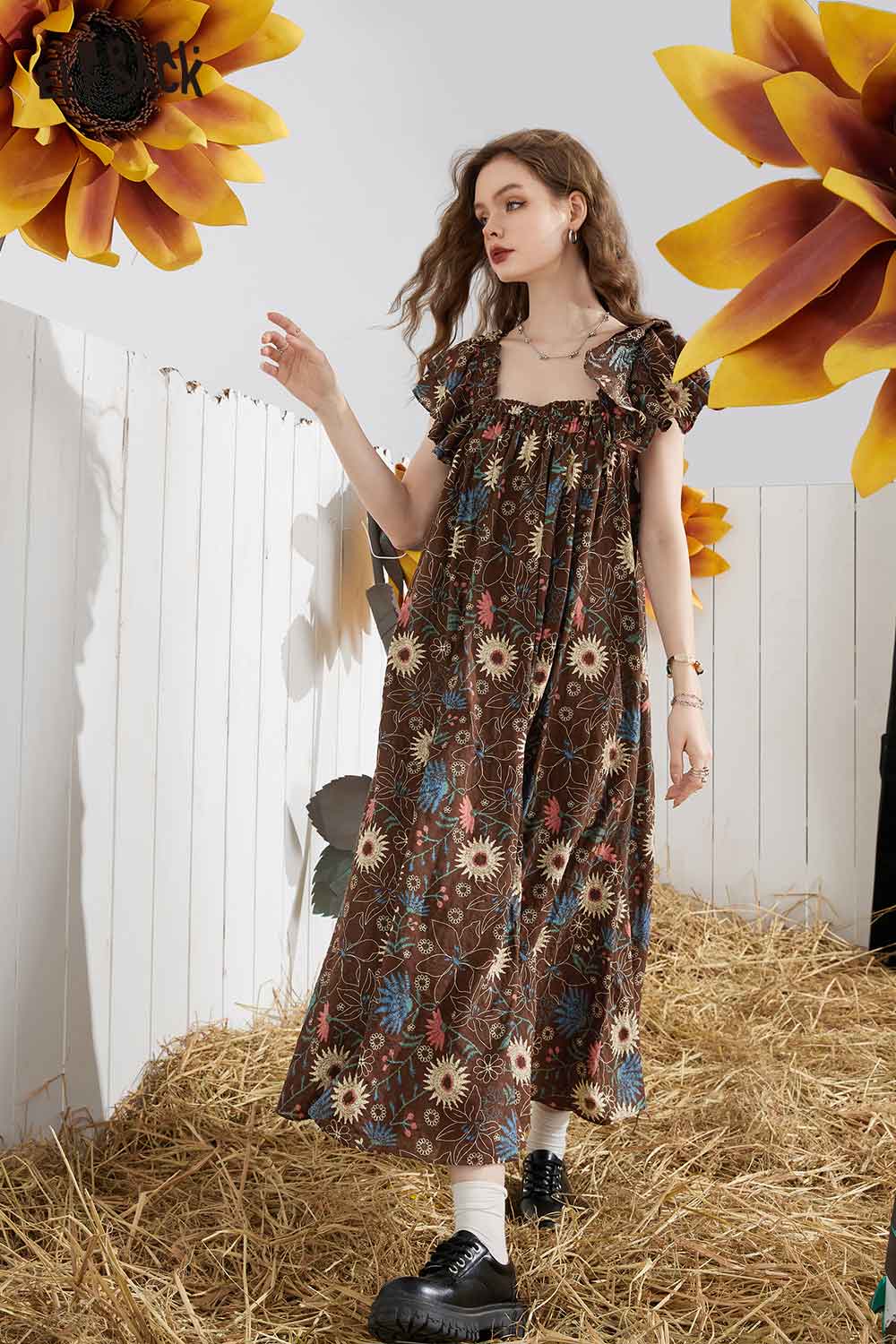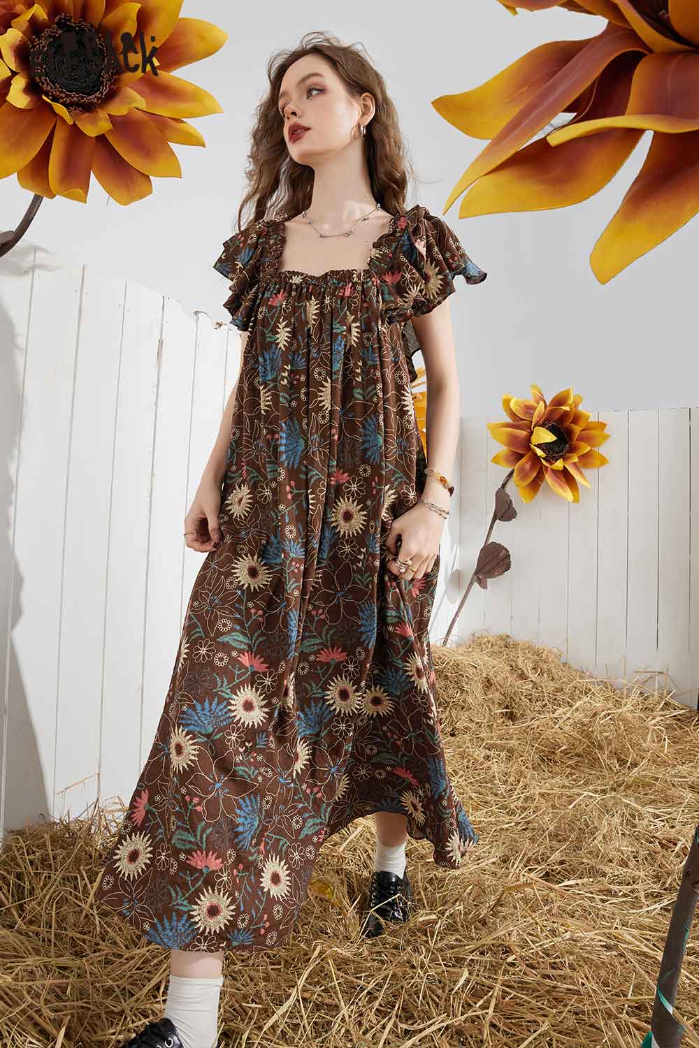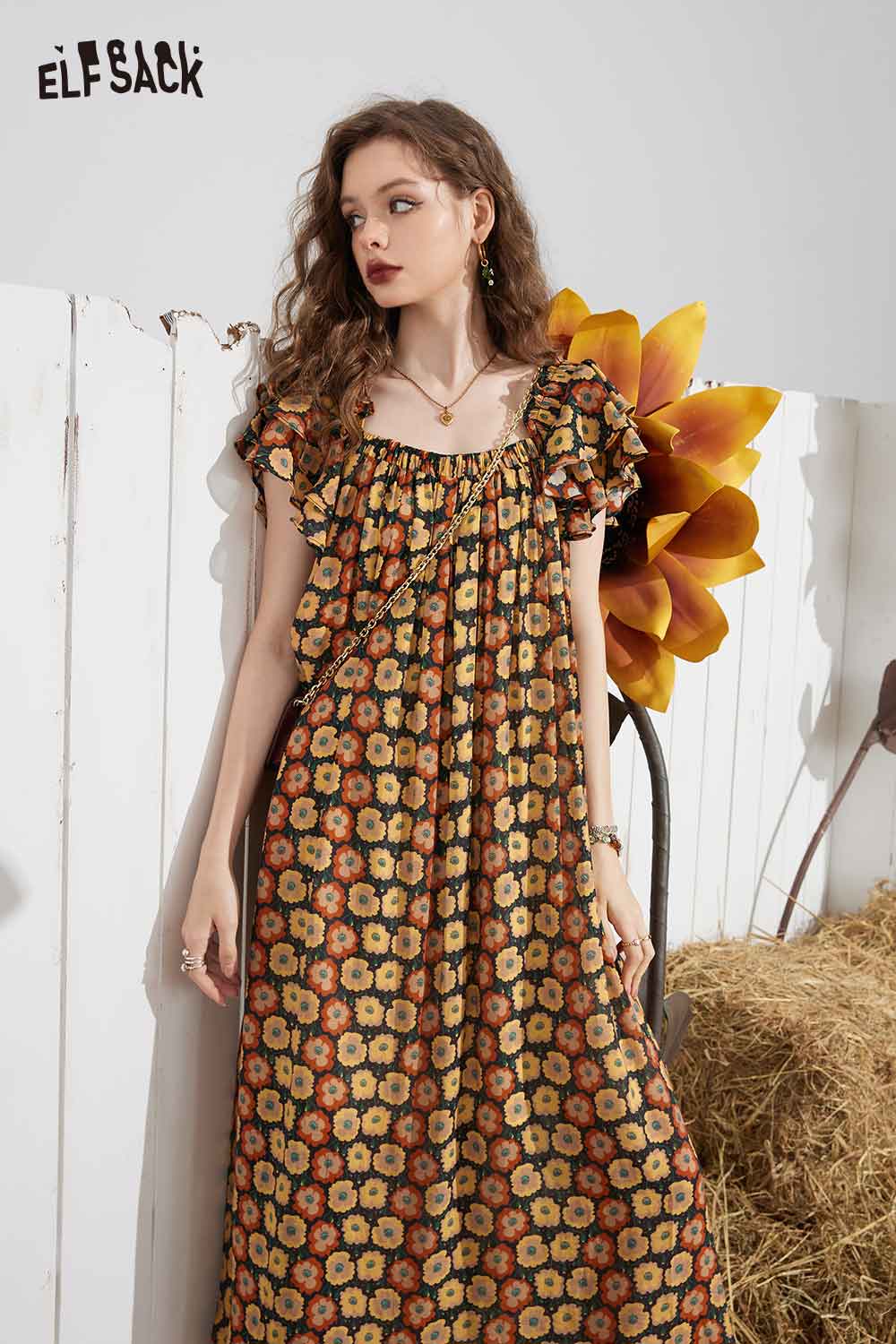 Soft French Floral Ruffle Sleeve Loose A-Line Dress