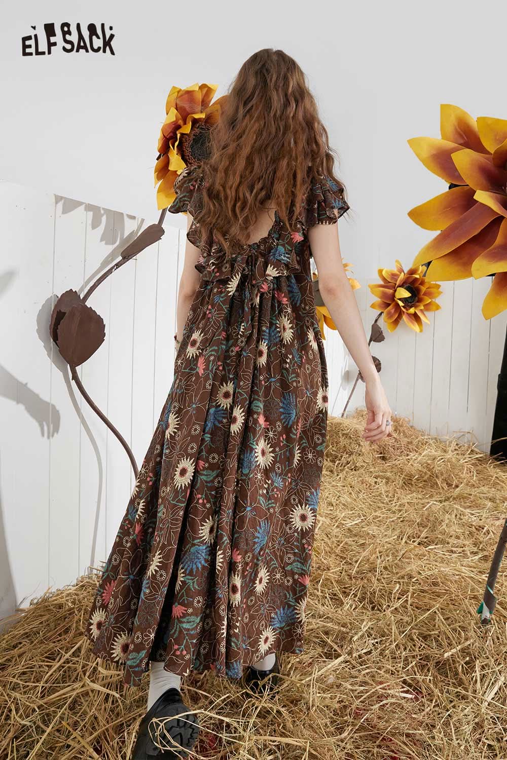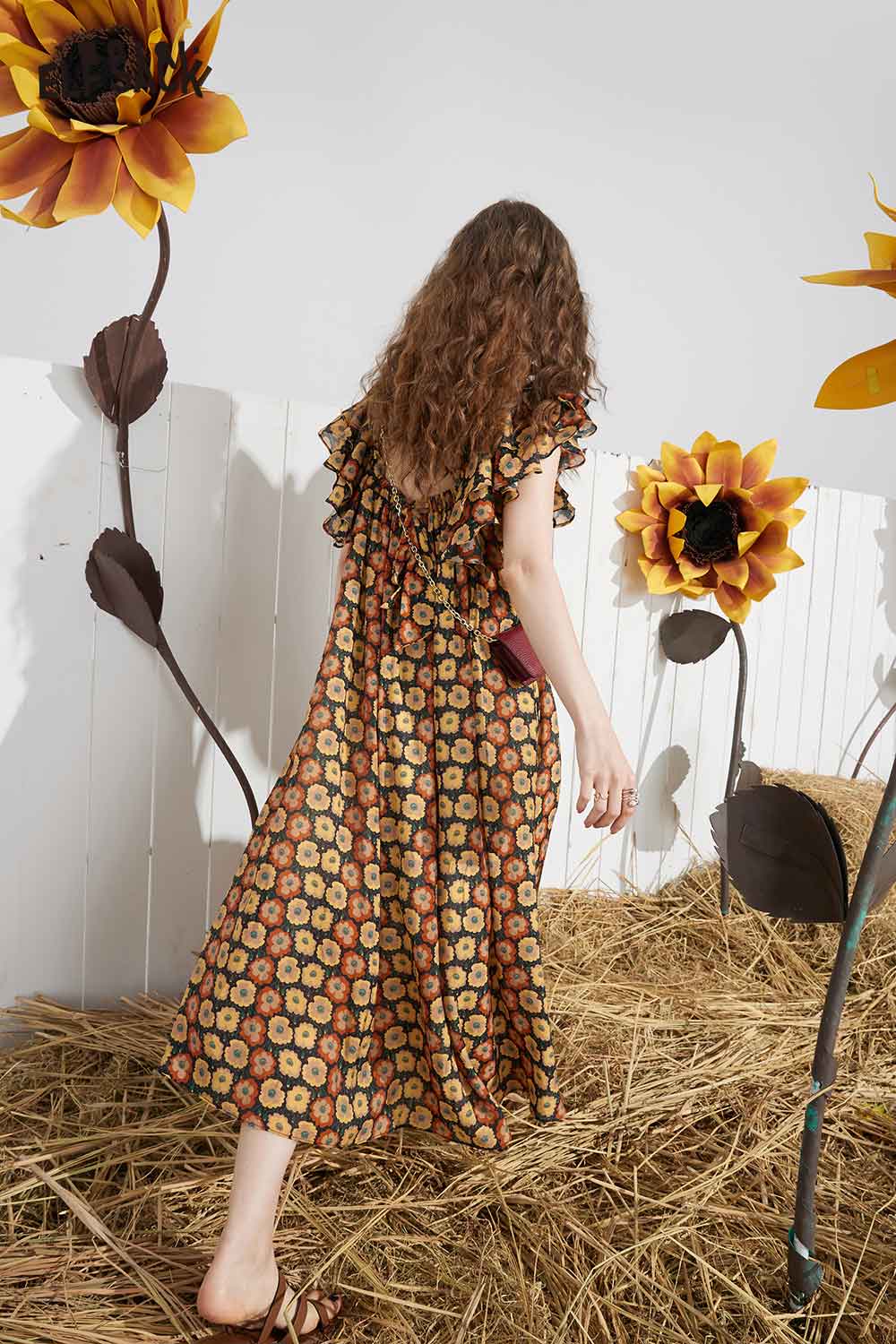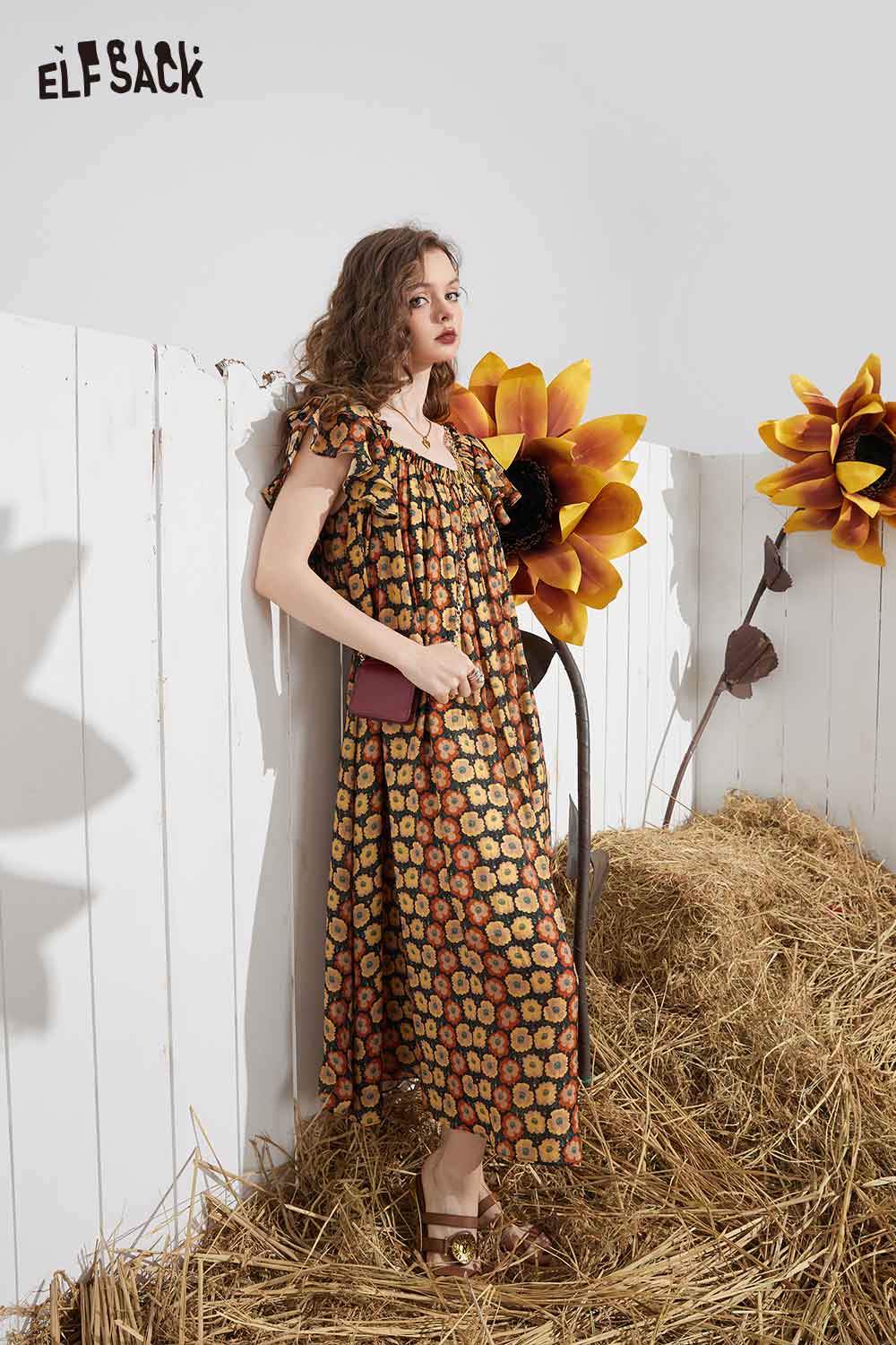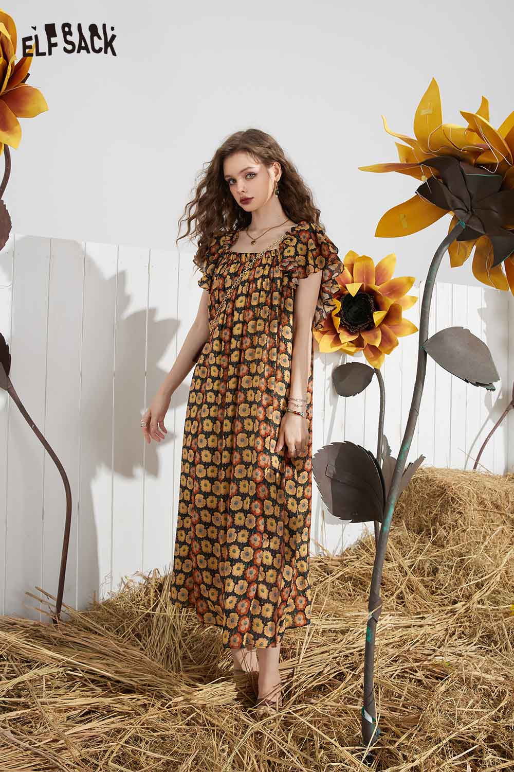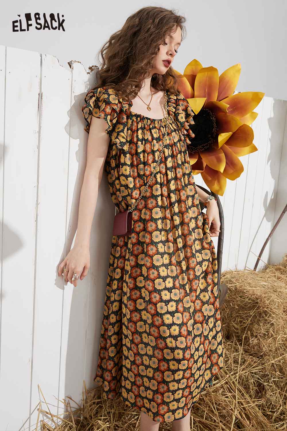 Soft French Floral Ruffle Sleeve Loose A-Line Dress