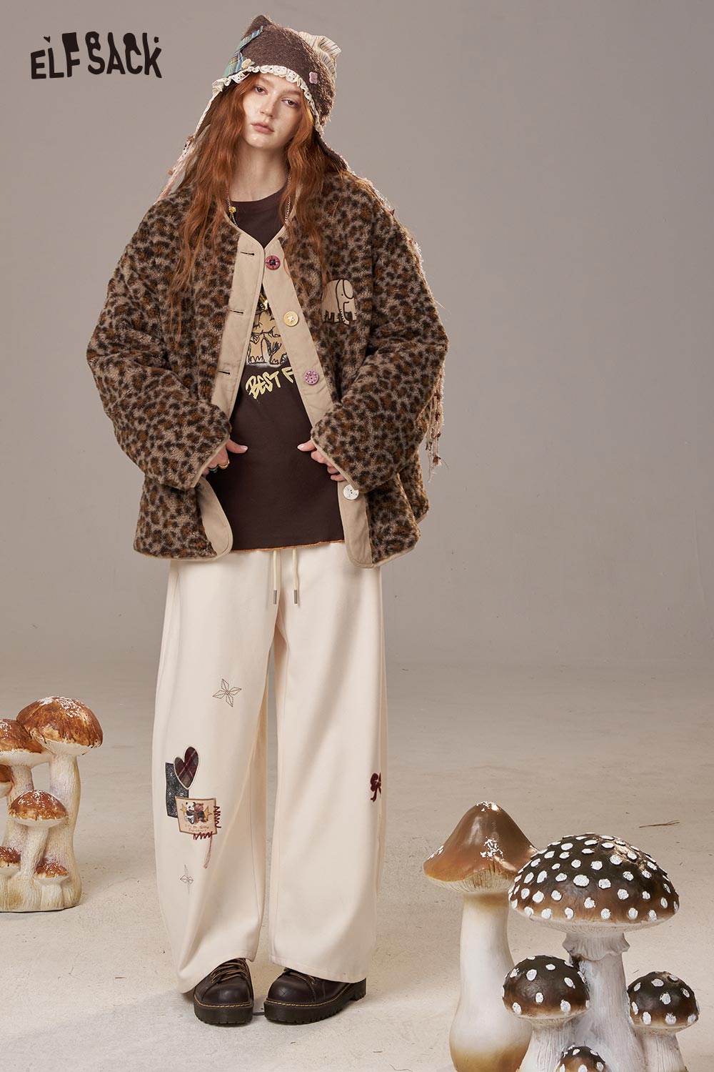ELFSACK women's cotton printed long sleeve shirt styled with plaid wide-leg pants for a trendy look