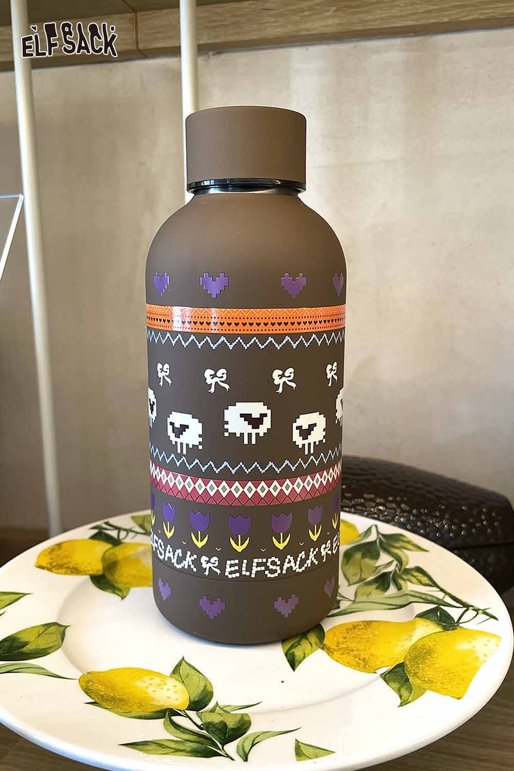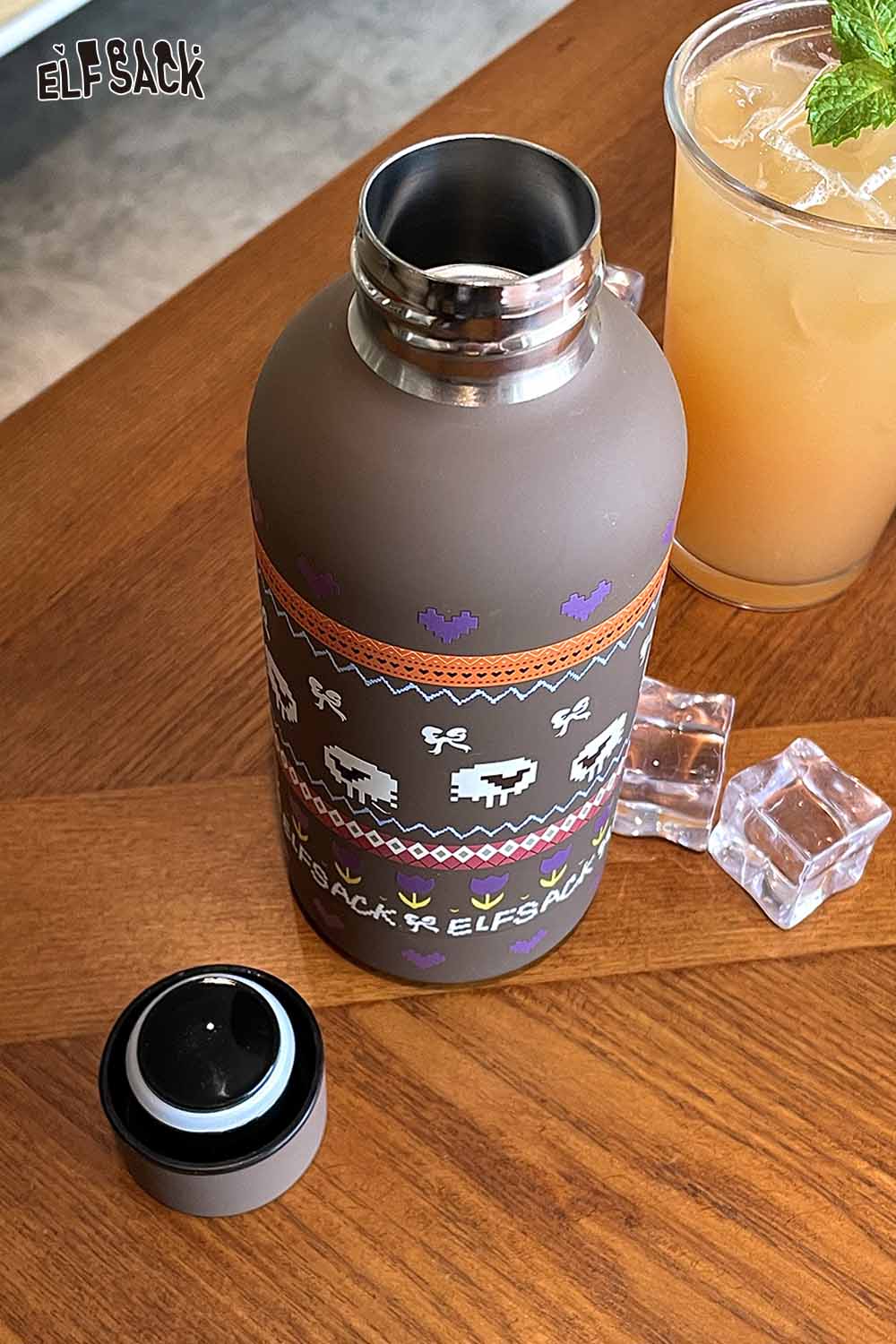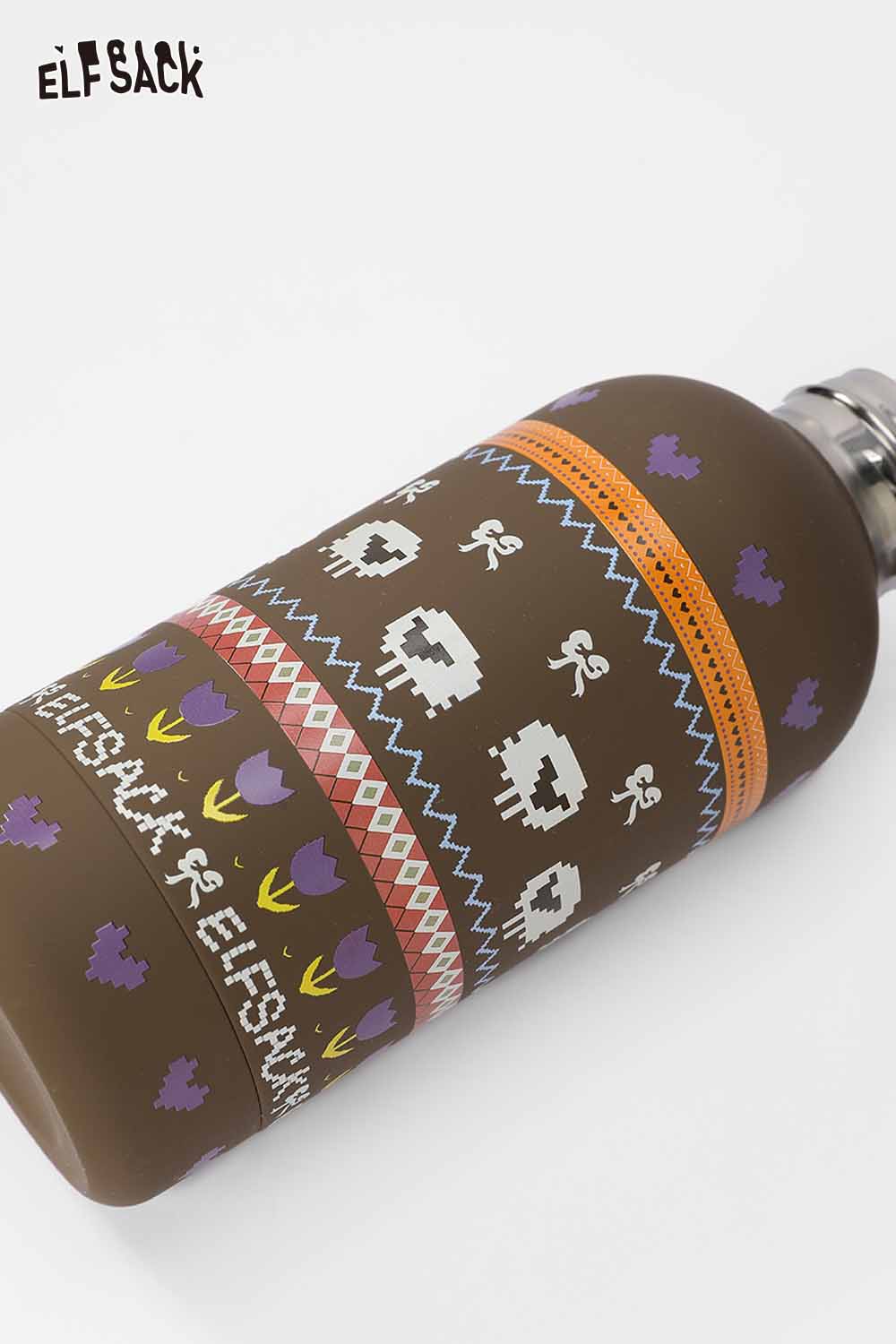 Floral Frosted Print Vacuum Flask Stainless Steel Matte Finish