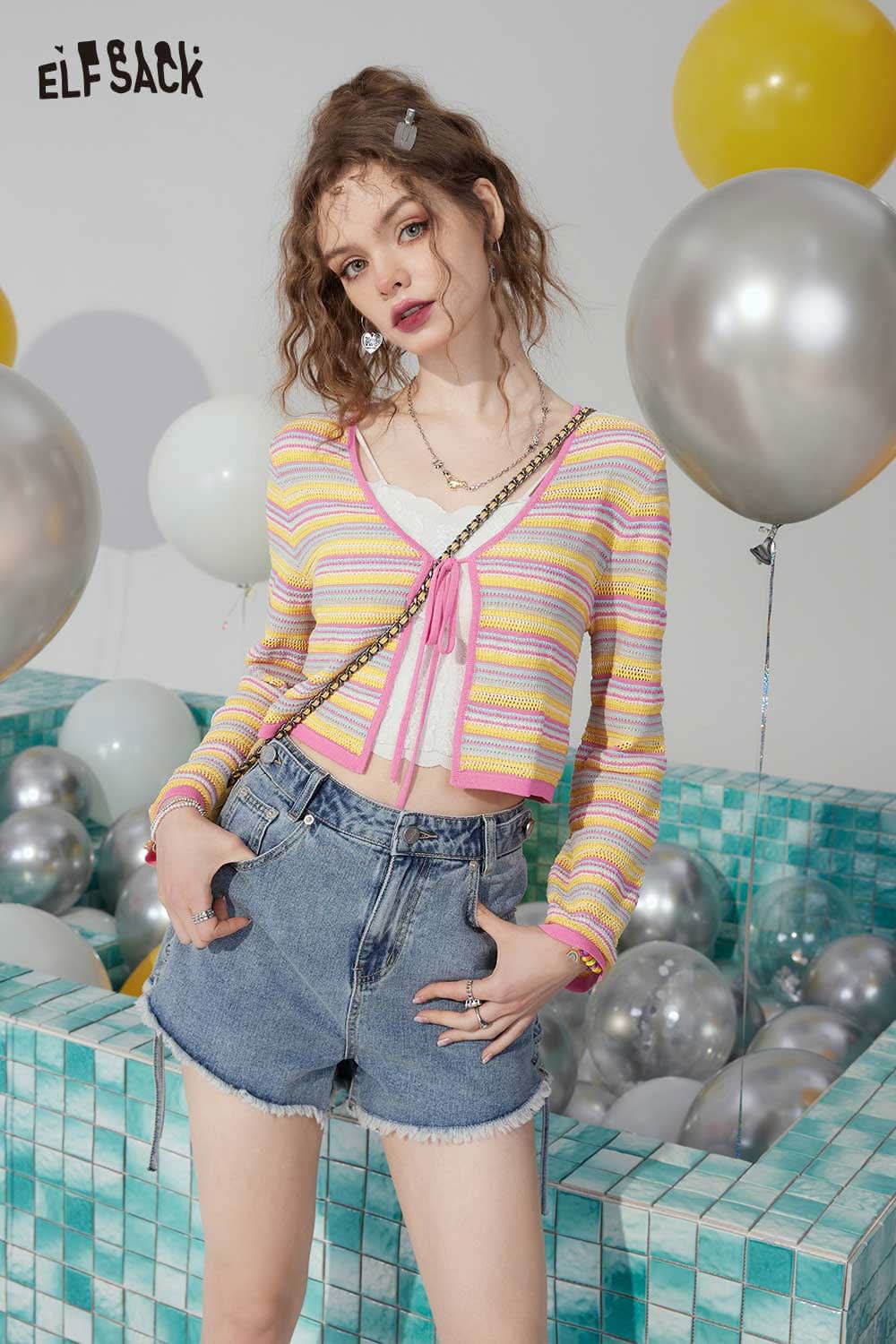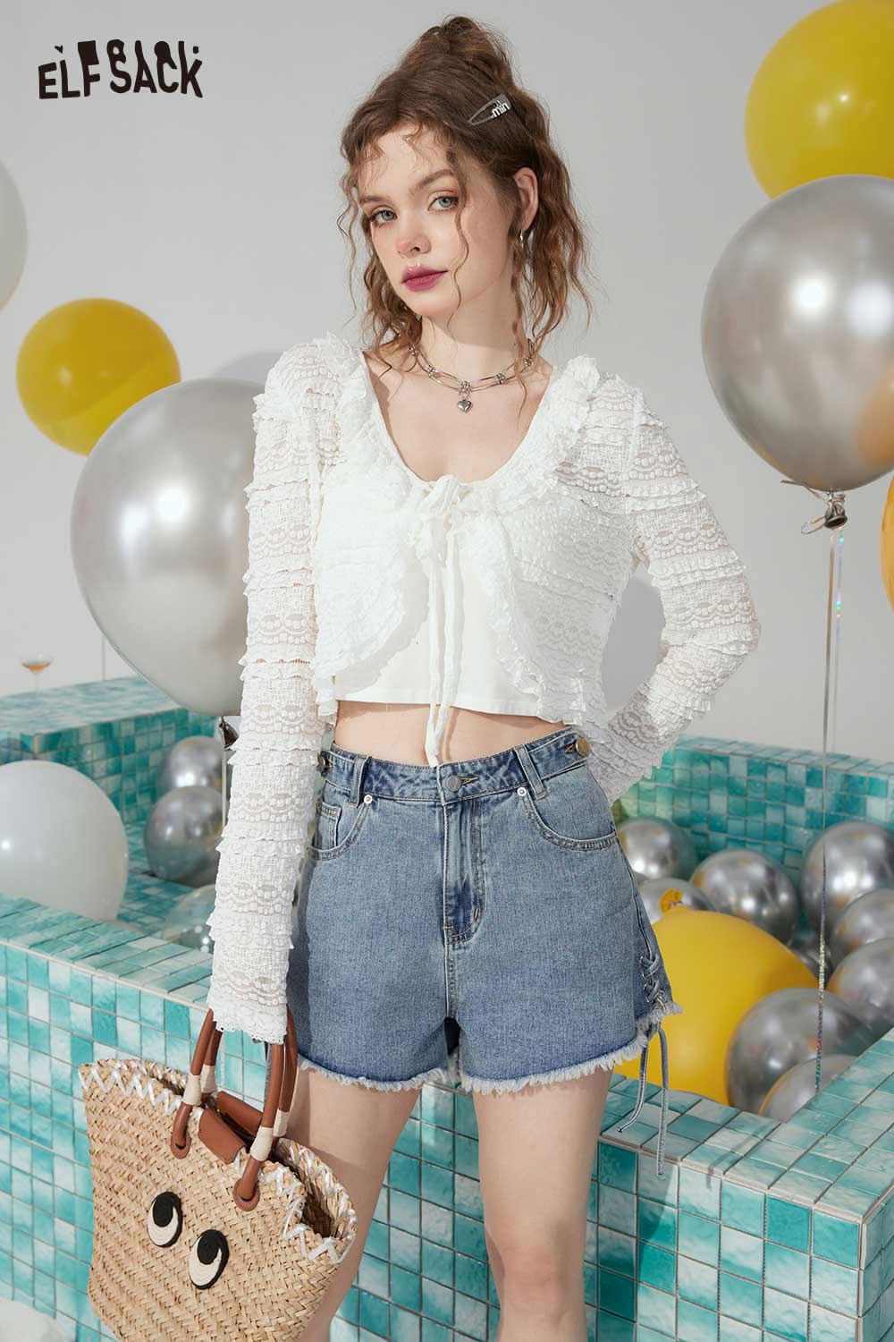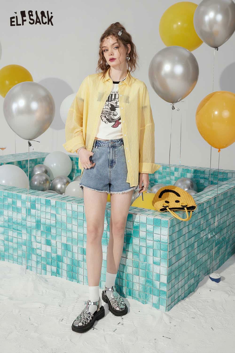 Light Casual Drawstring Tie Denim Design Raw Edge Shorts